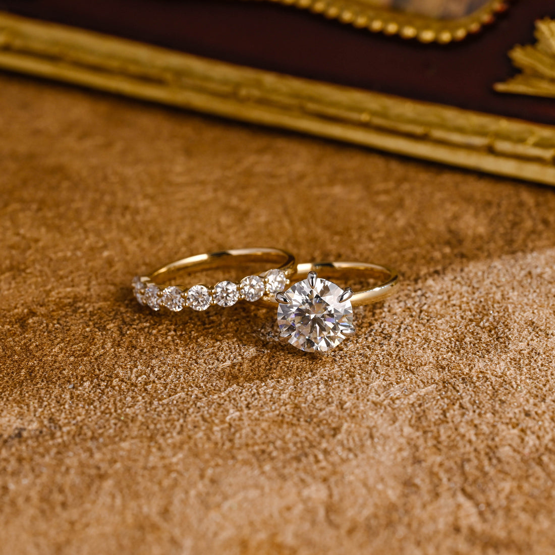 Round Moissanite Engagement Ring Set Women, Vintage Moissanite Ring, 9K/14K/18K Solid Gold Moissanite Bridal Set,...