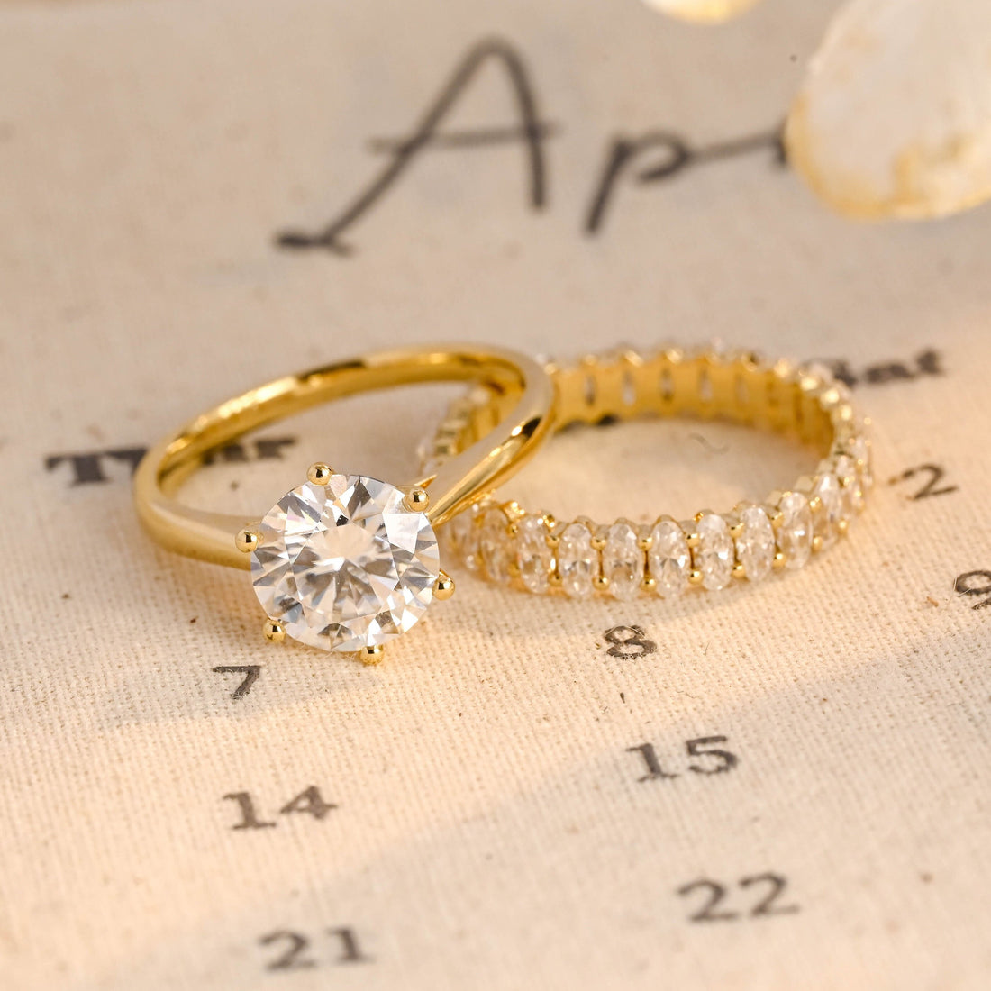 Round Moissanite Engagement Ring Set, Solid Gold Wedding Set, Bridal Ring Set, Birthday Gift Anniversary Gift Valentine's Day Gift for Woman