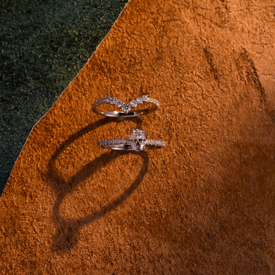 Solid Gold Oval Cut Moissanite Engagement Ring and Wedding Ring Set, Art Deco Ring Set, Vintage Bridal Ring Set, Anniversary Gift for Woman