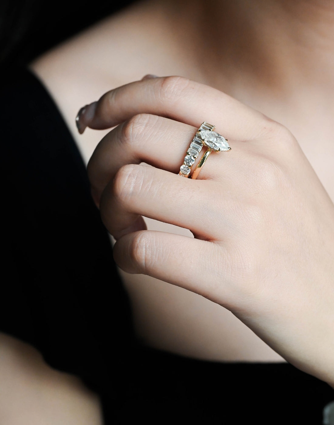 Pear Cut Moissanite Engagement Ring, Unique Gold Wedding Ring Set, Moissanite Bridal Set, Promise Ring for Women, Anniversary gift for woman