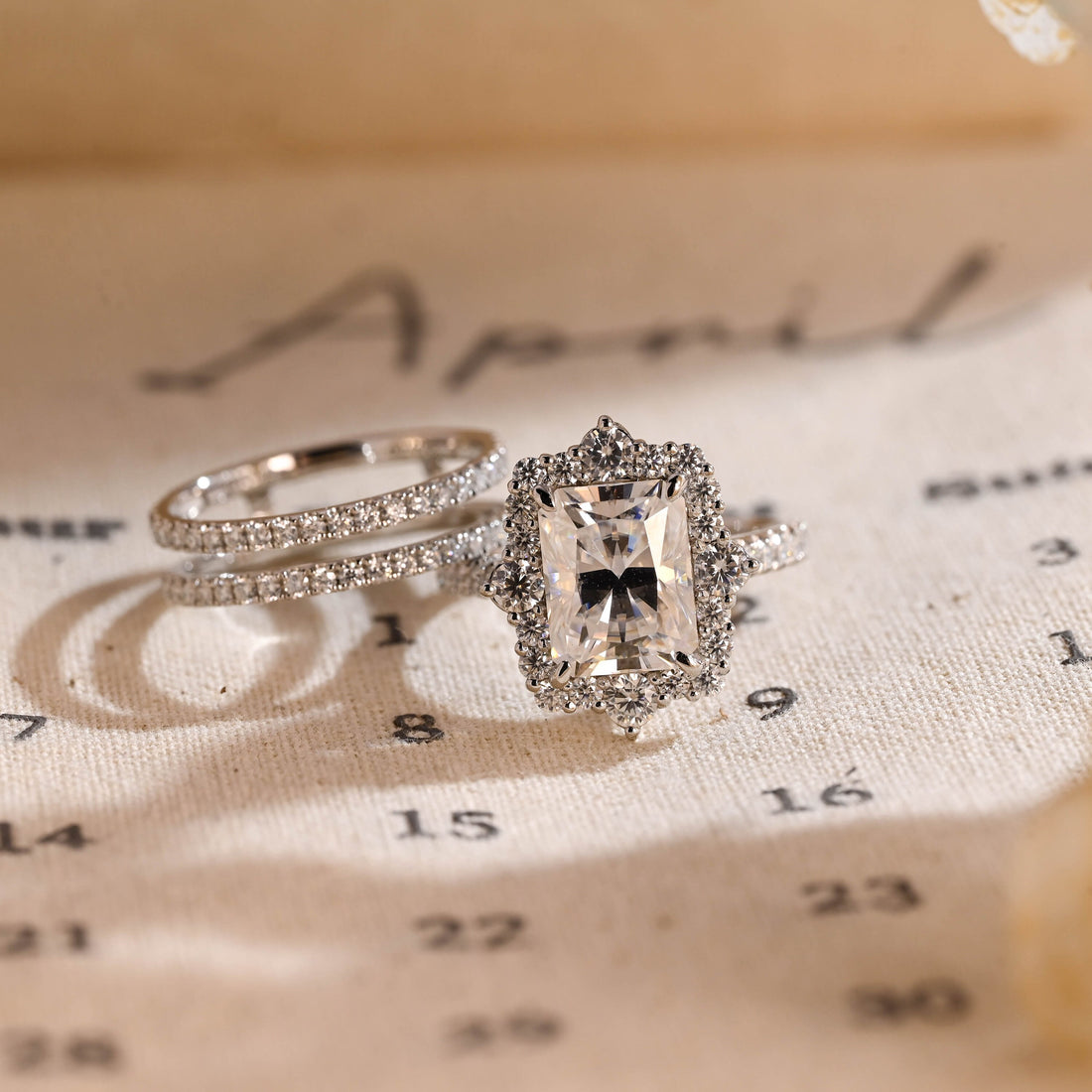 Emerald Cut Moissanite Wedding Ring Set, Moissanite Engagement Ring Set, Gold Bridal Set, Full Eternity...