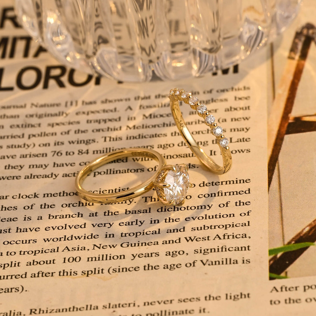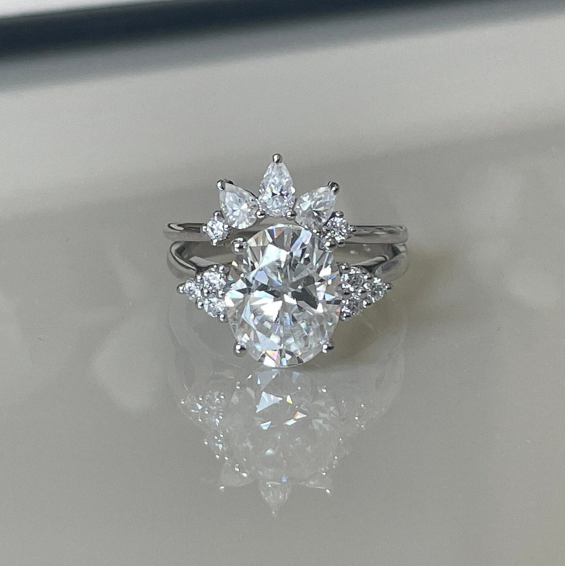 3ct Oval Moissanite Engagement Ring Set, Vintage Moissanite Bridal Set, Unique Pear Cut Curved Ring Set Gold Women,Vintage 2PCS Wedding Sets