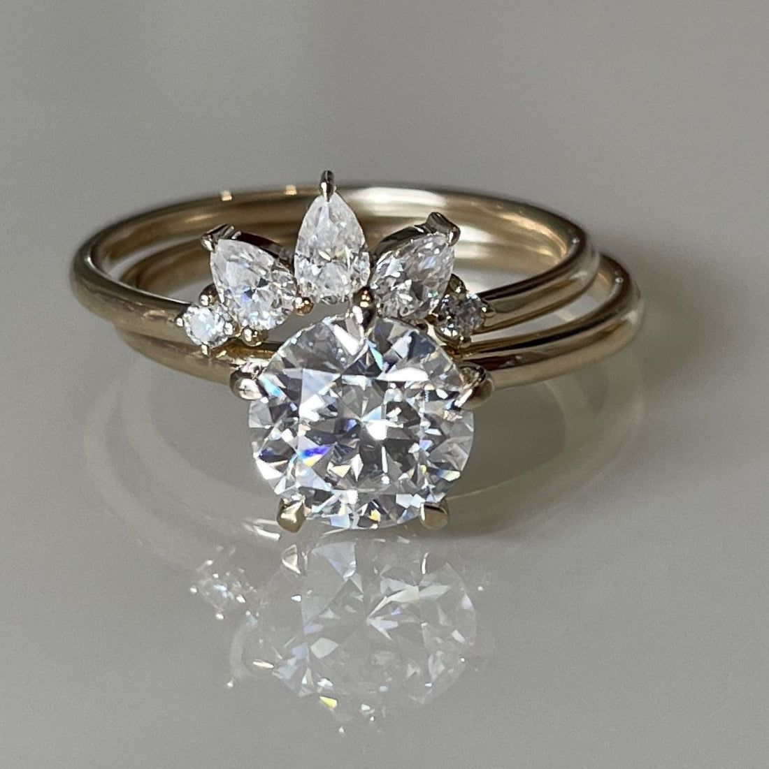 Unique Round Cut Engagement Ring Set, Vintage Round Moissanite Ring, Moissanite Bridal Set, Pear Cut Wedding Band, 14K gold ring gift