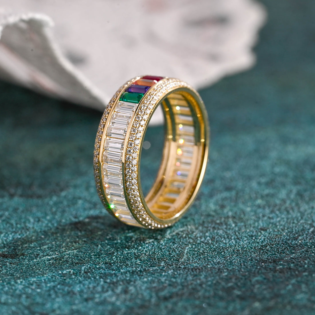 Solid Gold Baguette Full Eternity Moissanite Stacking Band