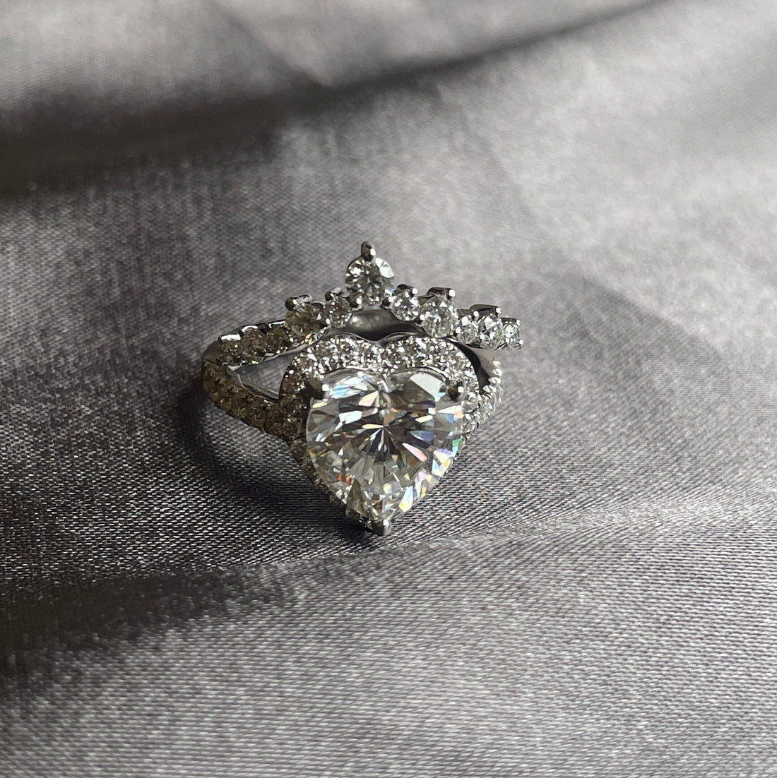 Solid Gold Heart Shape Moissanite Full-Eternity Wedding Ring Anniversary Gift for Woman