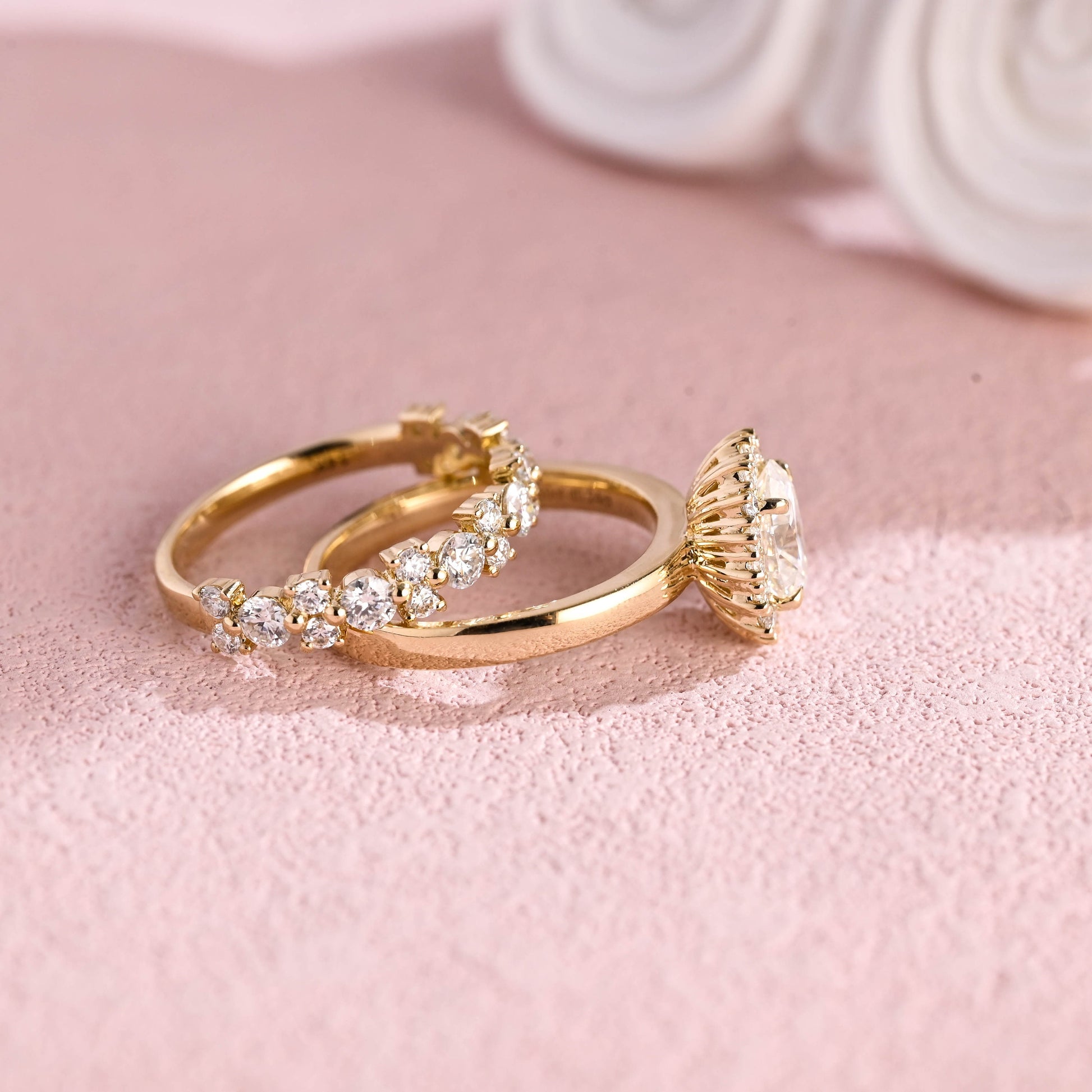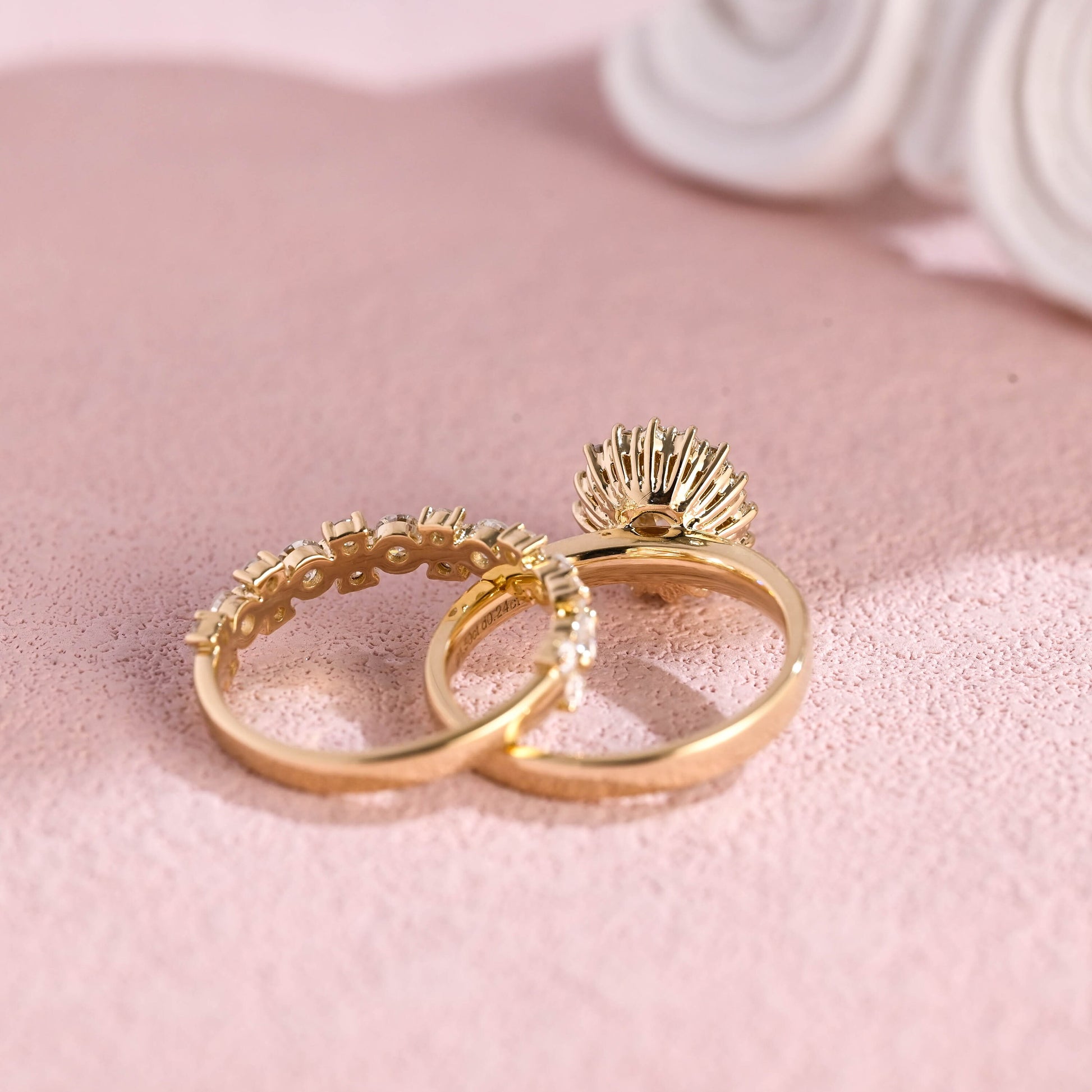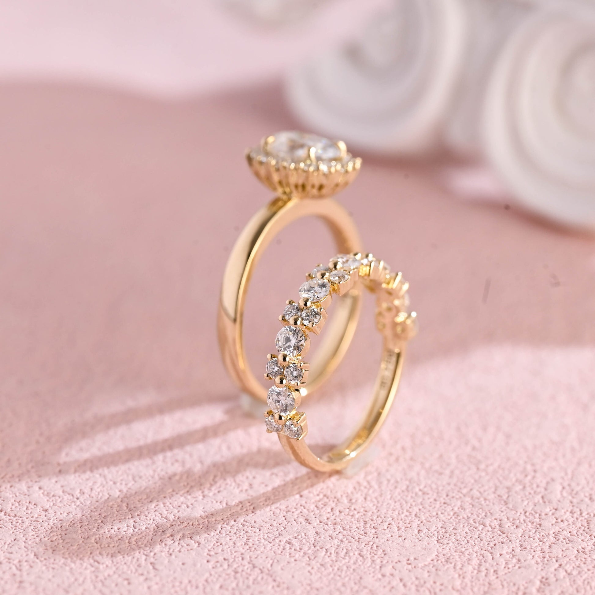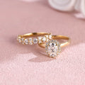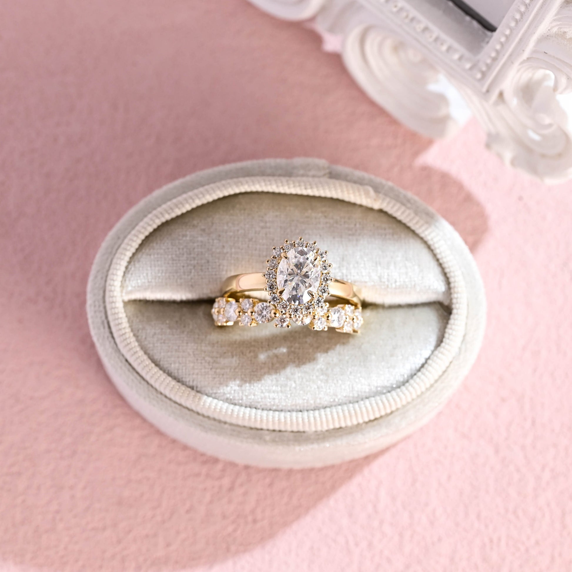 1.5ct Oval Moissanite Engagement Ring Set, Solid Gold Moissanite Bridal Set,2.4mm Width Ring Band, Half Eternity Matching Band Gift for Women