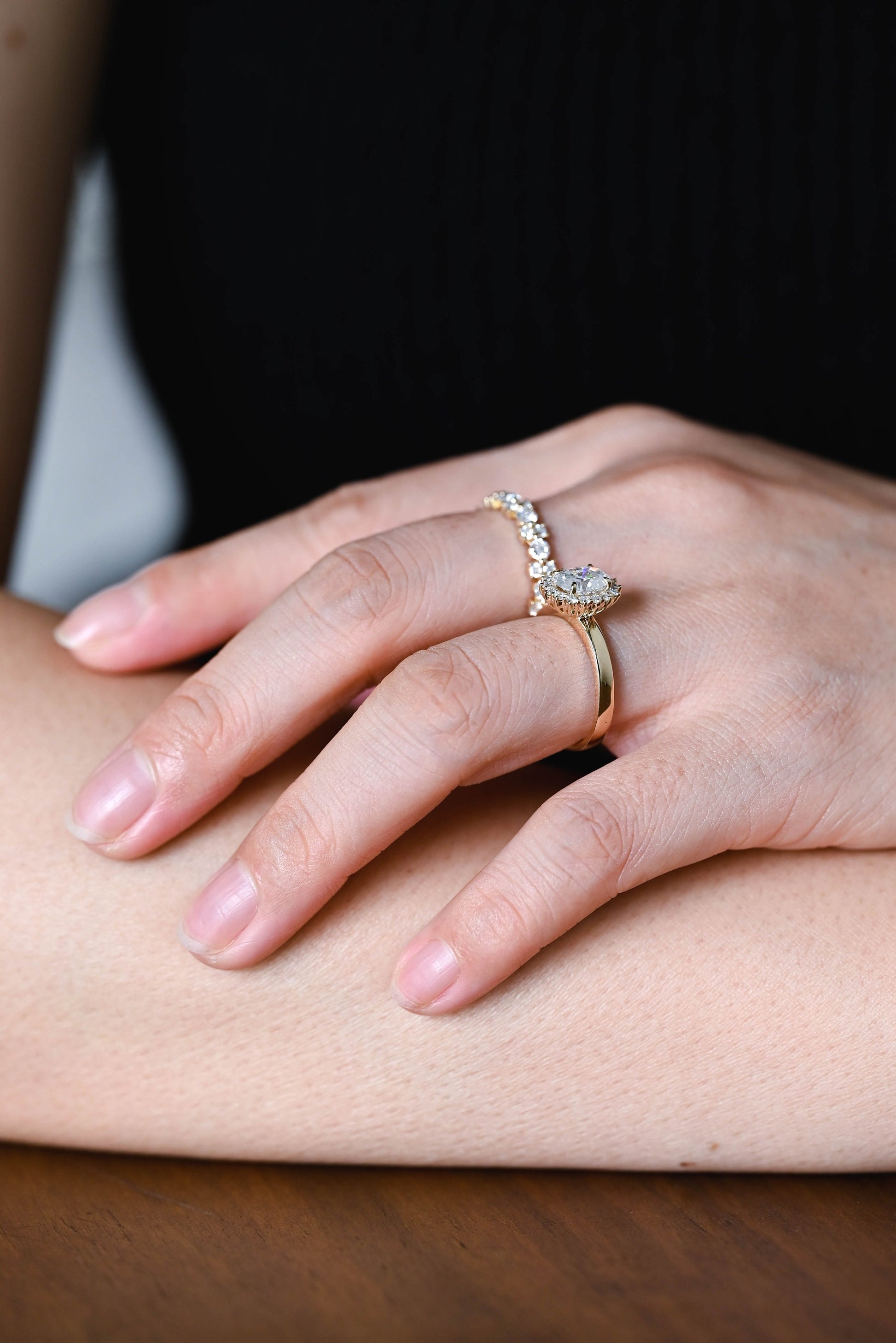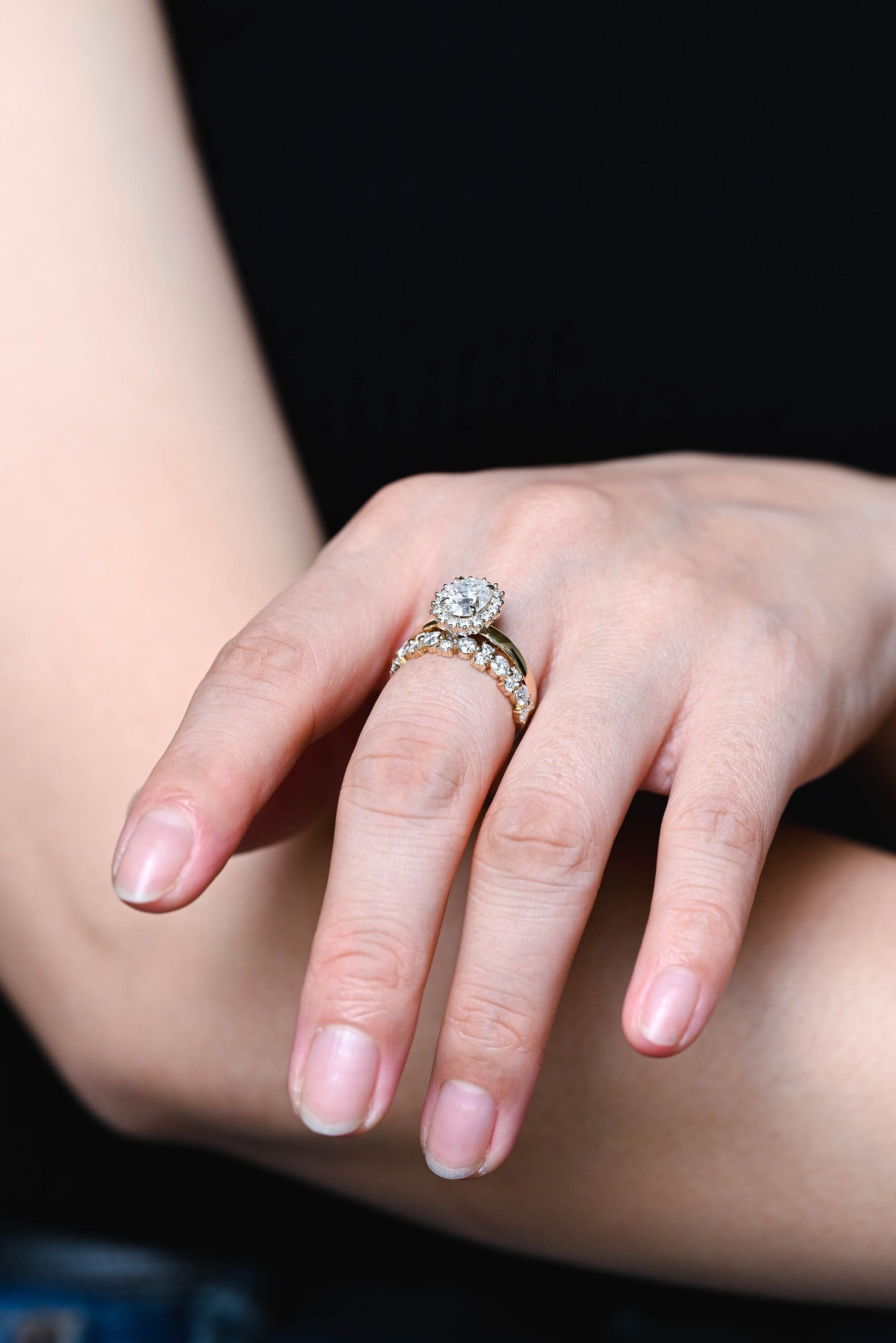 Our jewelry is crafted with simulant diamonds, moissanite, natural diamonds, lab-grown diamonds, and fine metals like 925 silver (with gold plating) and solid 10K, 14K, and 18K gold in white, yellow, and rose gold.