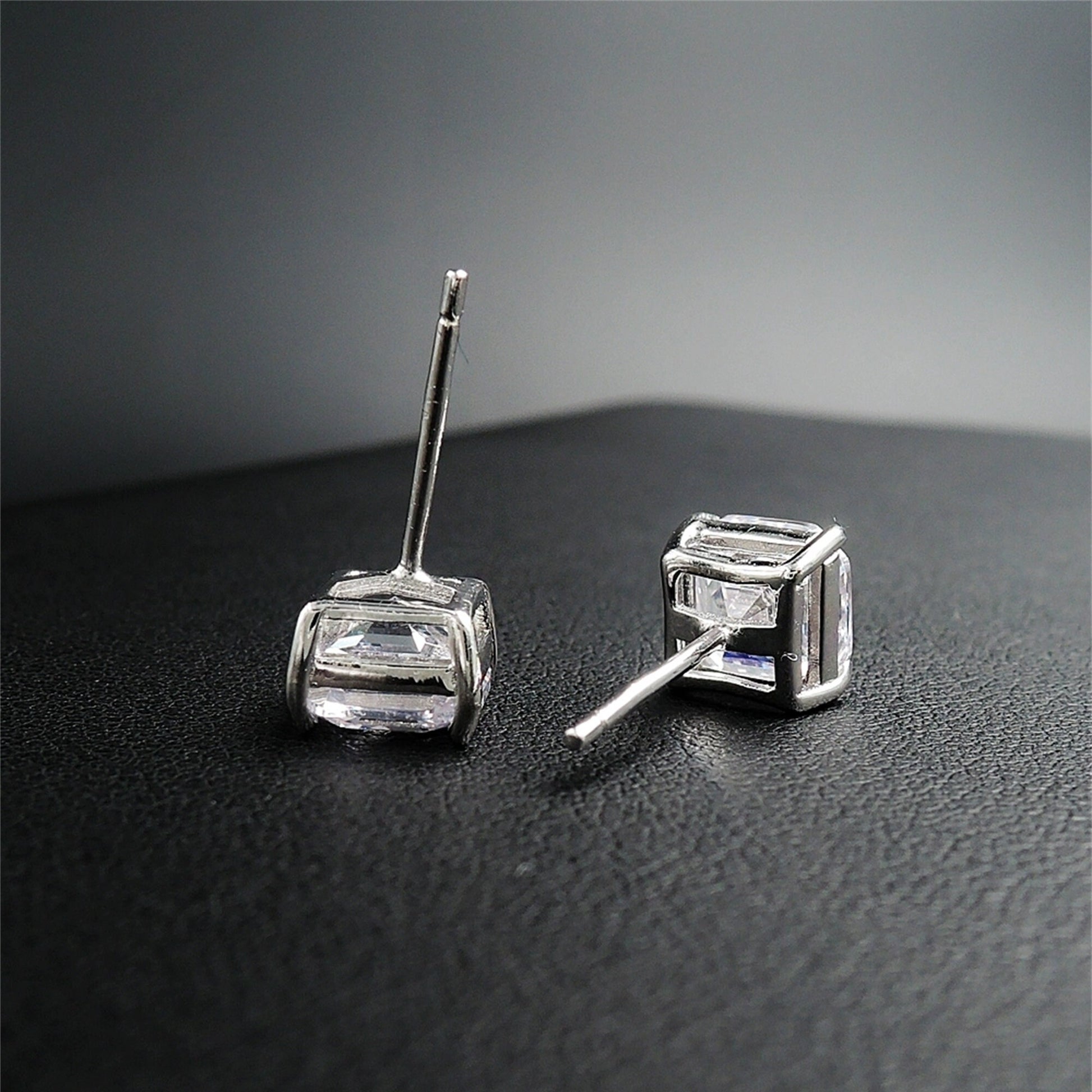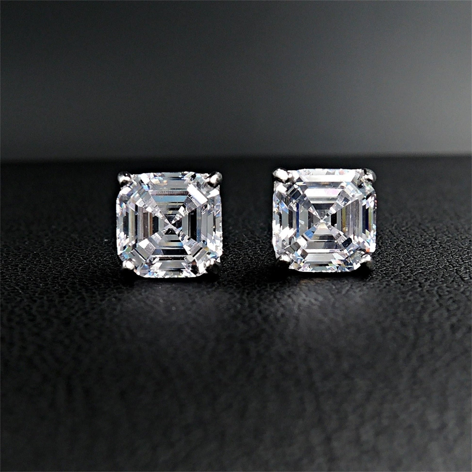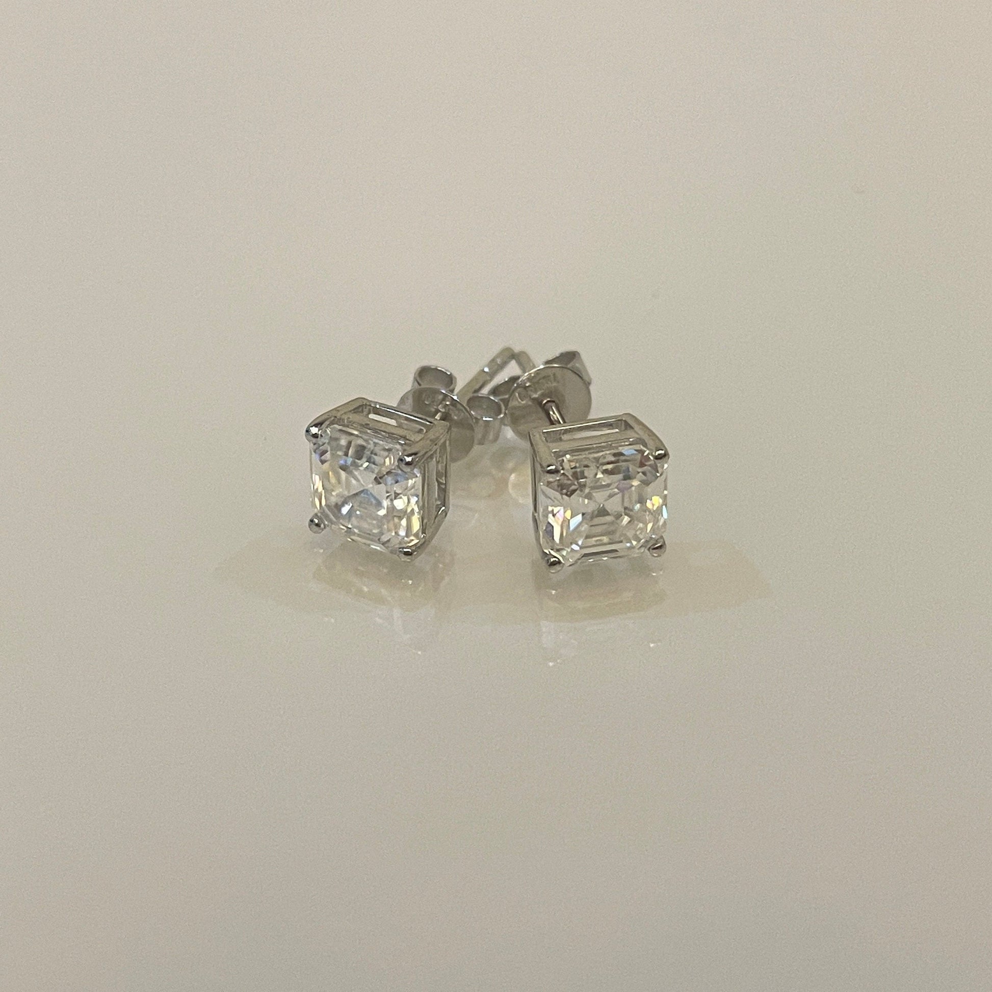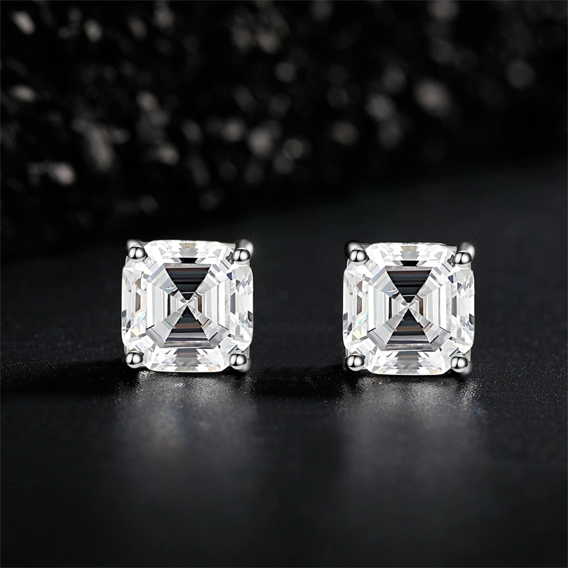 1ct+1ct Asscher Cut Moissanite Earring Studs Push Back Screw Back, Solid Gold Moissanite Earring Studs, Anniversary Earrings, Gift for Women