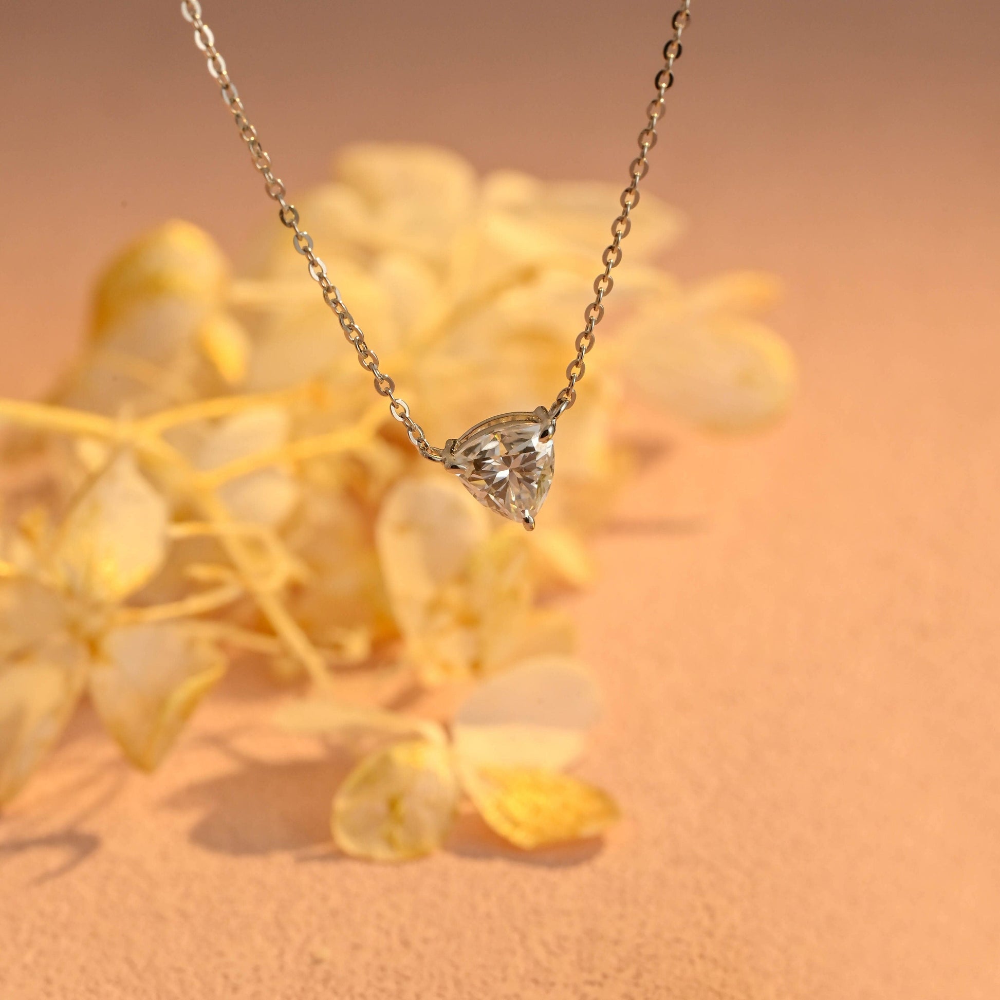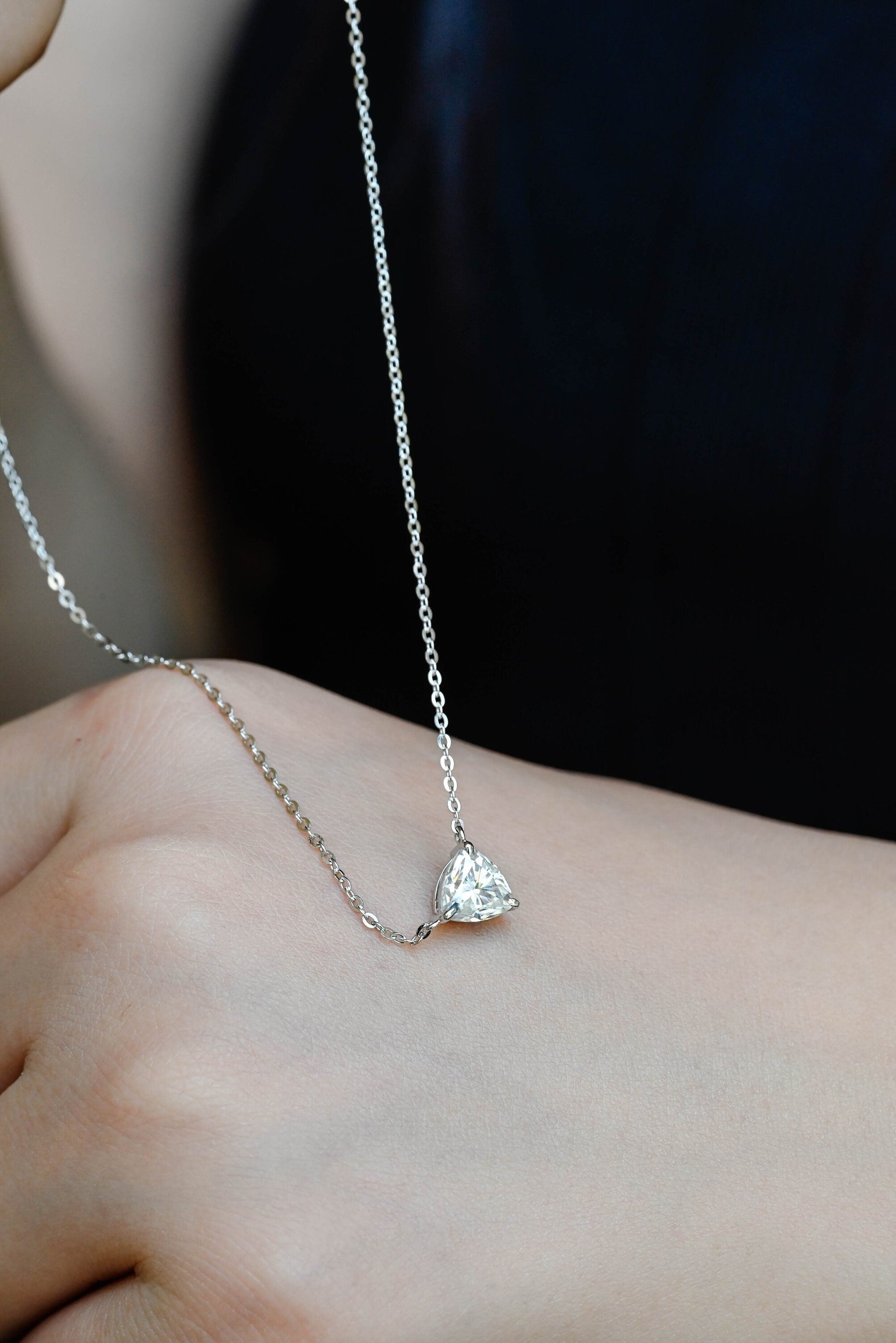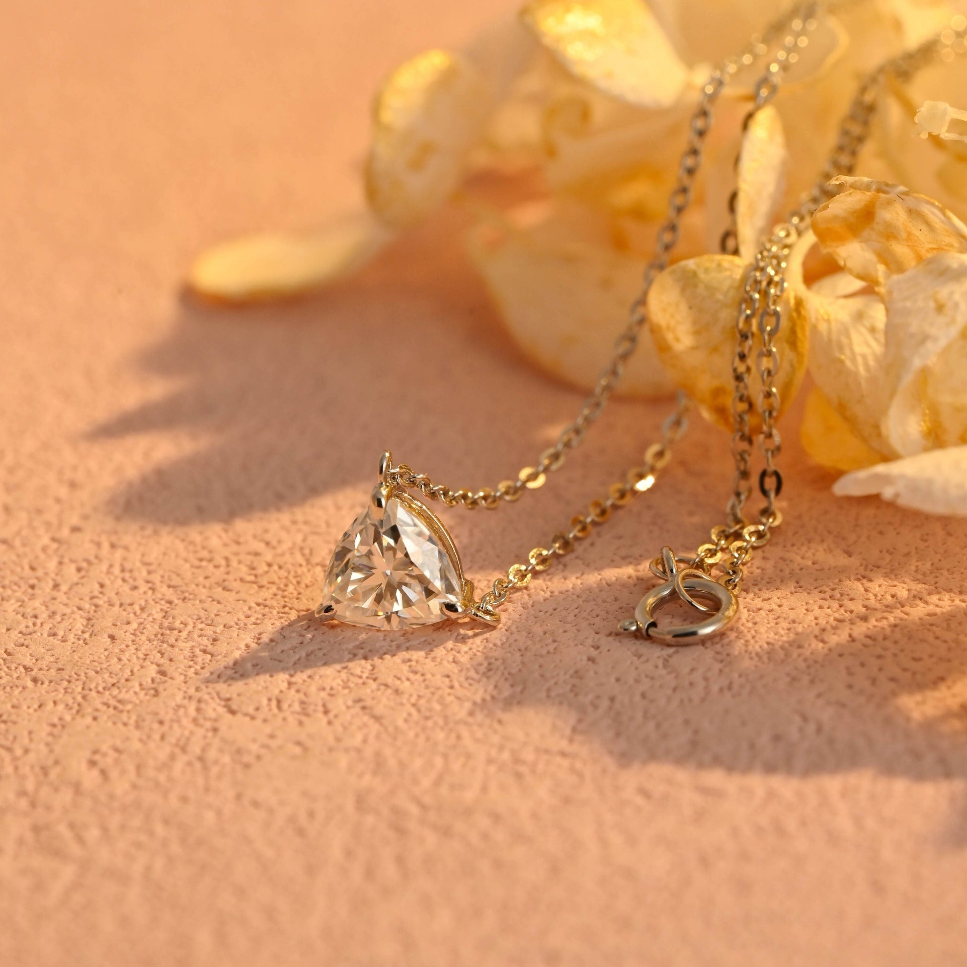 1ct 6.5mm Trillion Cut Solitaire Moissanite Necklace Pendant/9K/14K/18K Real Gold Triangle Pendant Necklace/Necklace for Wedding Gift