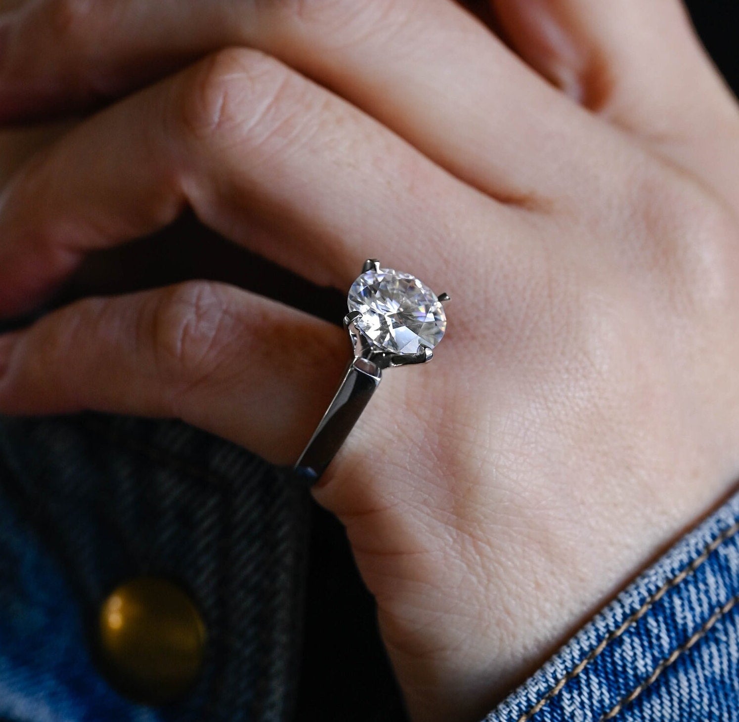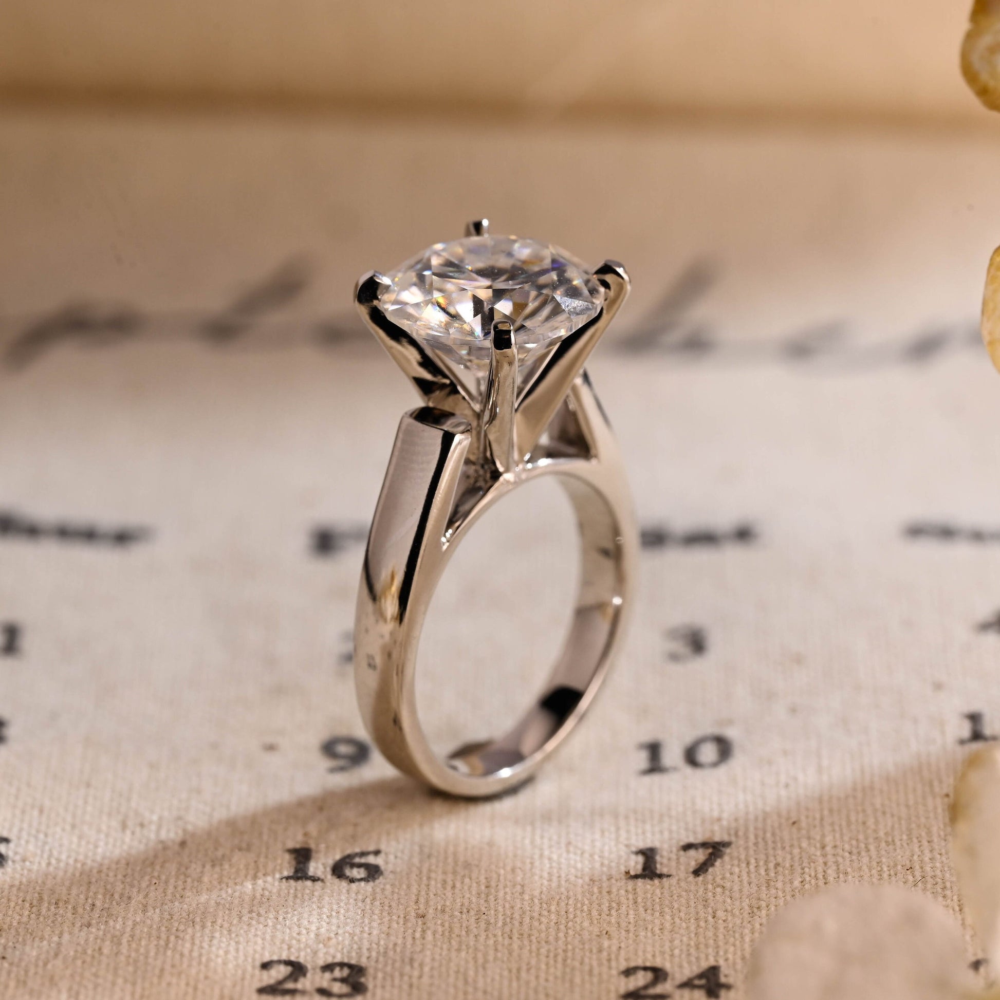 4 Prong Solitaire 5.00ct Round Diamond Engagement Ring, High Profile 5ct Round Wedding Ring for Women, Anniversary Ring Gift