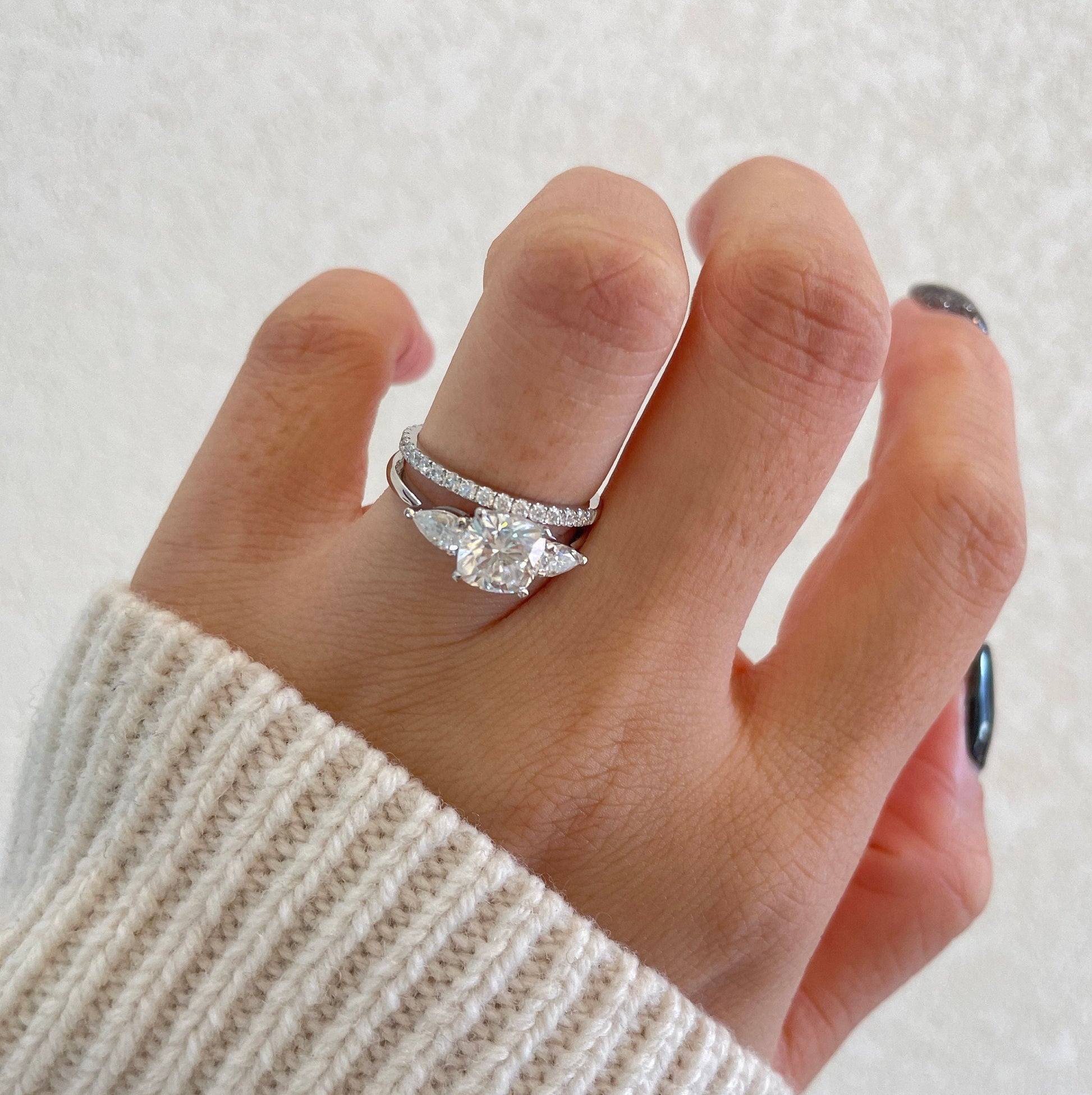 Our jewelry is crafted with simulant diamonds, moissanite, natural diamonds, lab-grown diamonds, and fine metals like 925 silver (with gold plating) and solid 10K, 14K, and 18K gold in white, yellow, and rose gold.