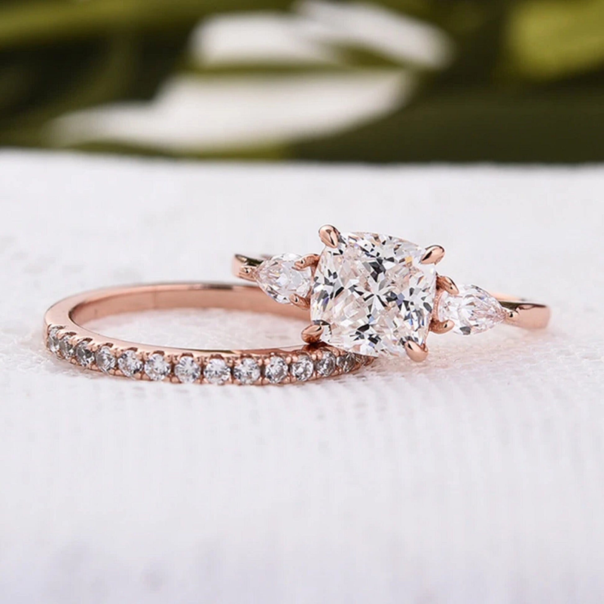 2ct Cushion Cut Moissanite Engagement Ring Set/Classic Three Stones Ring Set/14K Gold Ring/Vintage Bridal Set/Unique Wedding Set for Women