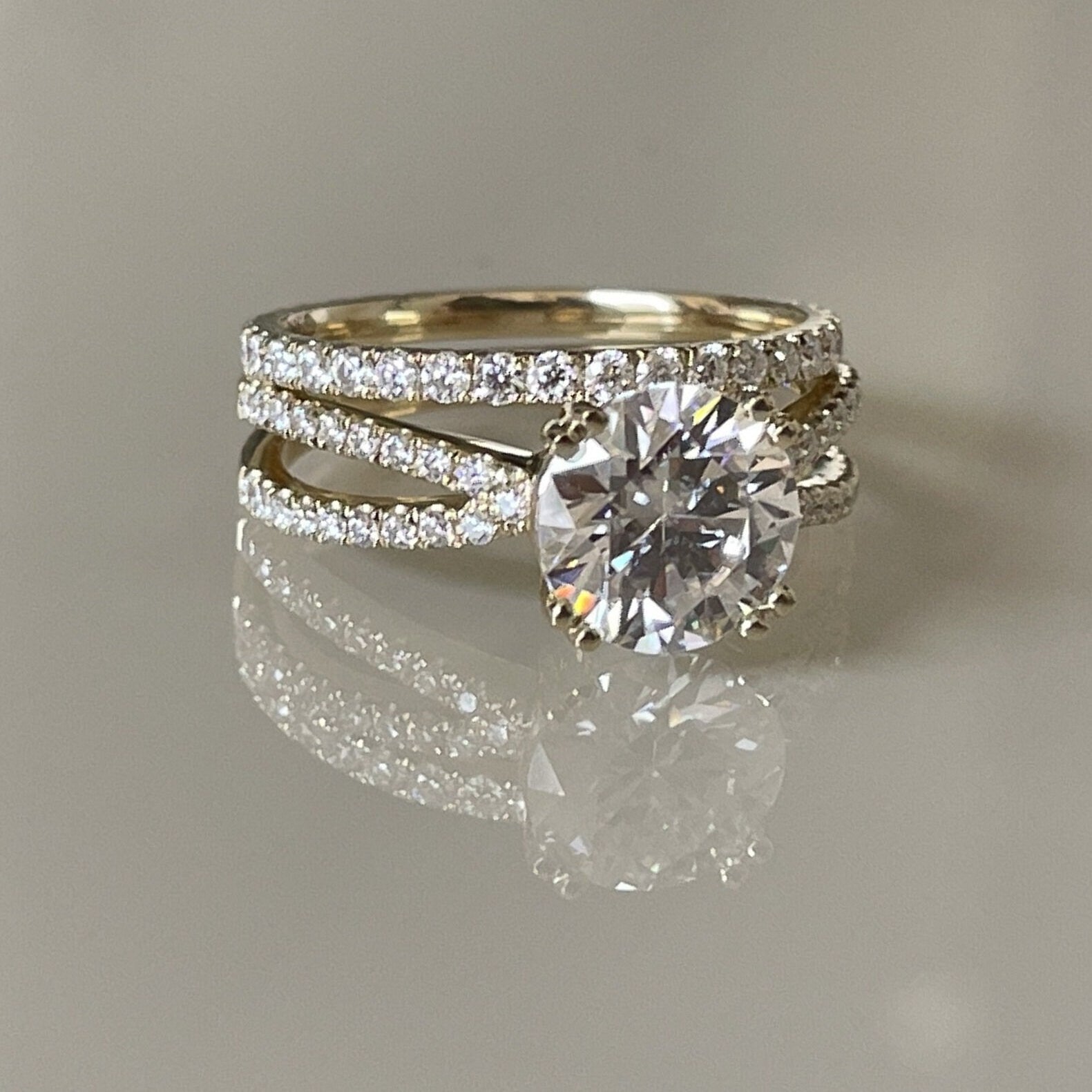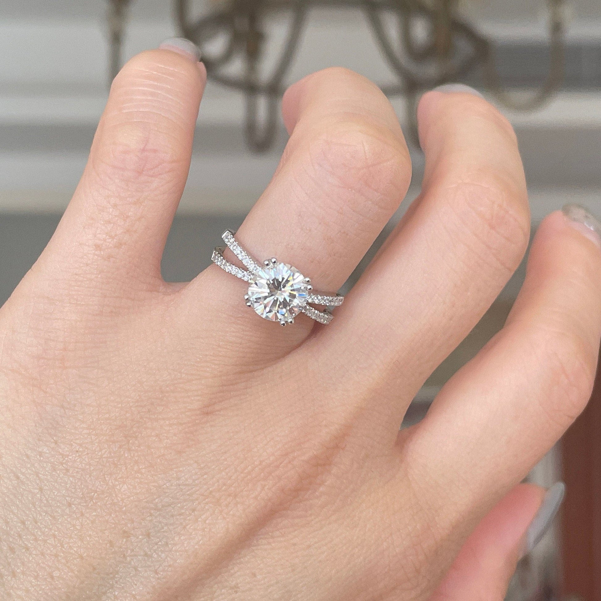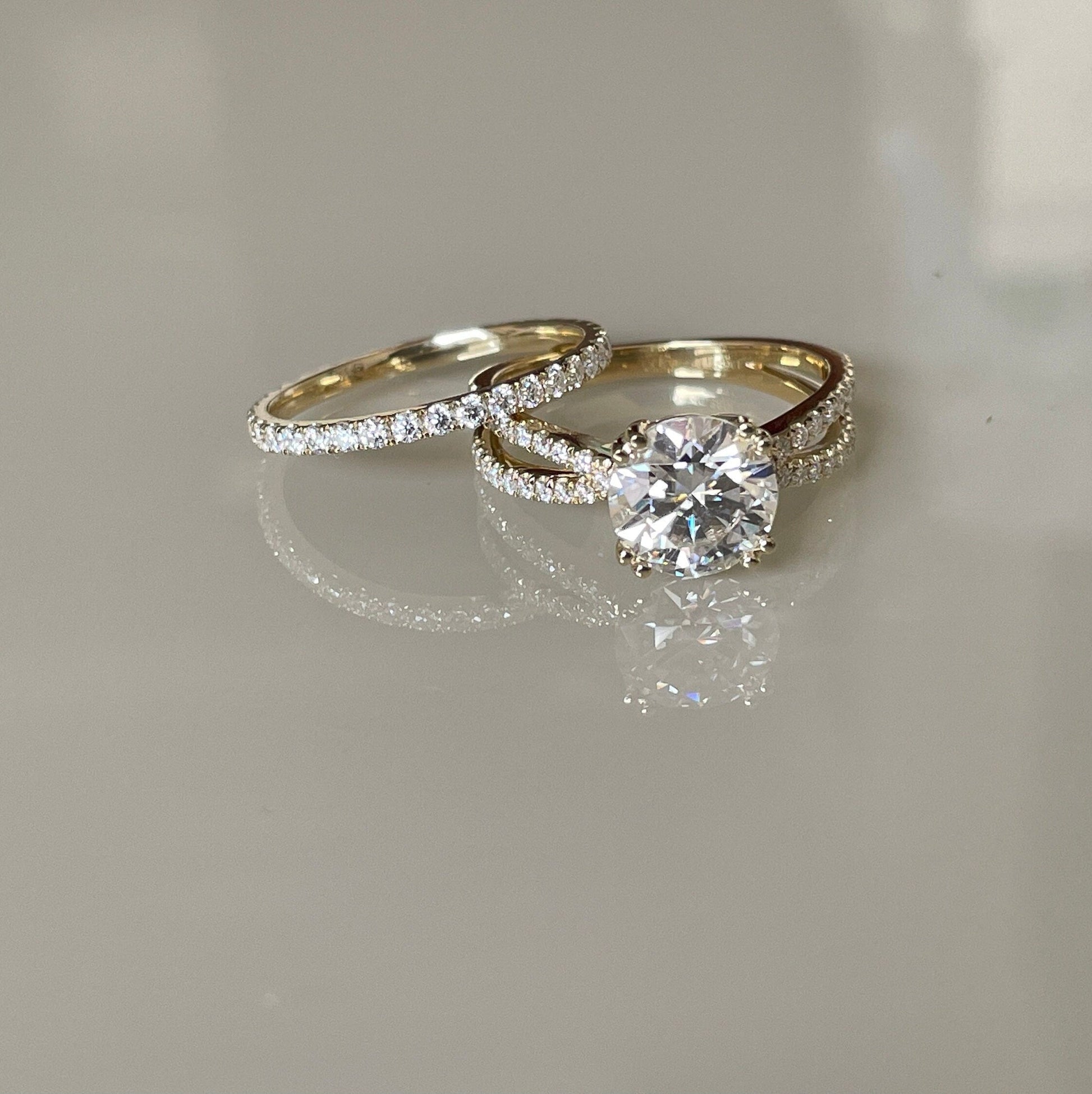 2ct Gold Round Cross Band Moissanite Engagement Ring Set,Vintage Twisted Moissanite Ring, Infinity Criss Cross Moissanite Ring,Wedding Ring
