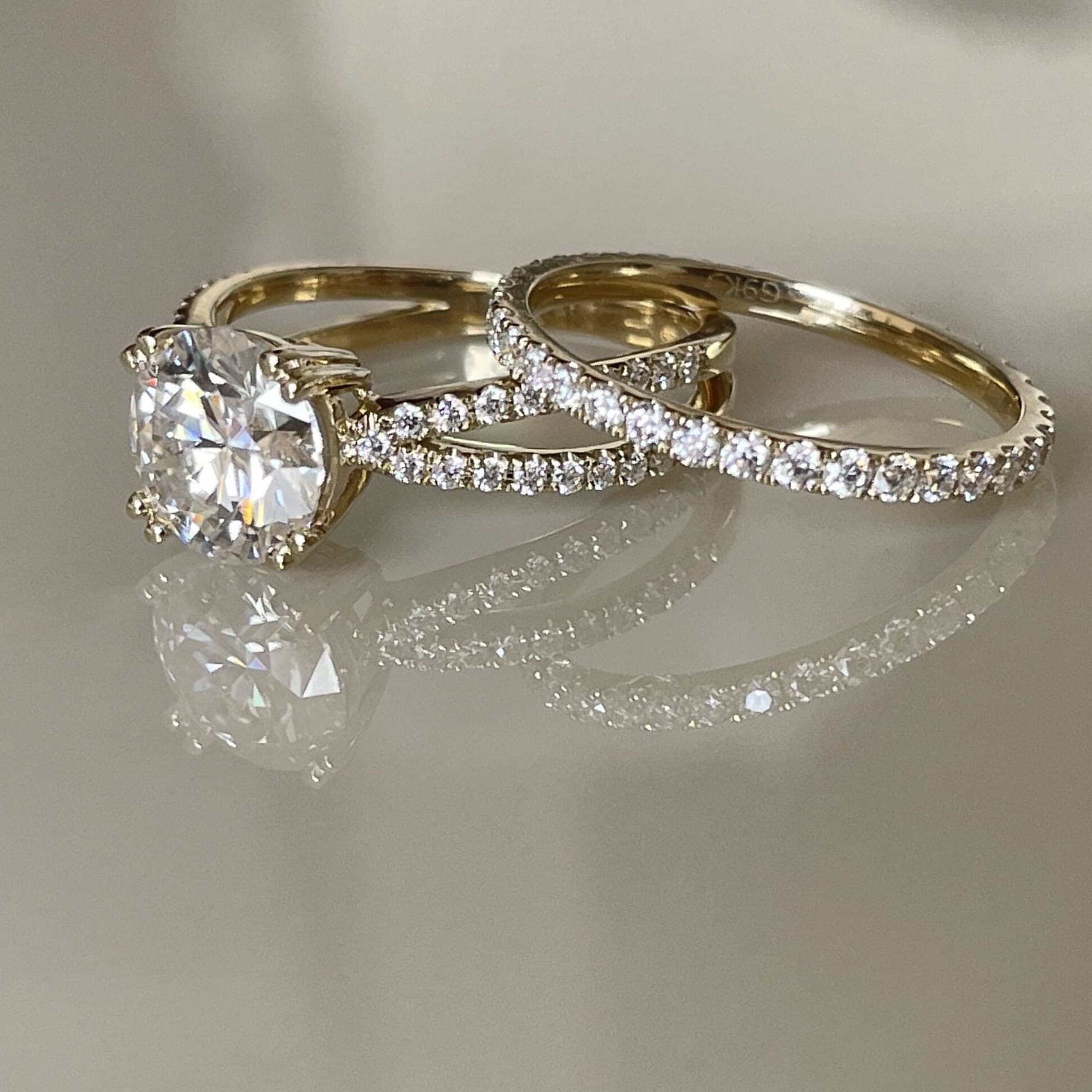 Our jewelry is crafted with simulant diamonds, moissanite, natural diamonds, lab-grown diamonds, and fine metals like 925 silver (with gold plating) and solid 10K, 14K, and 18K gold in white, yellow, and rose gold.