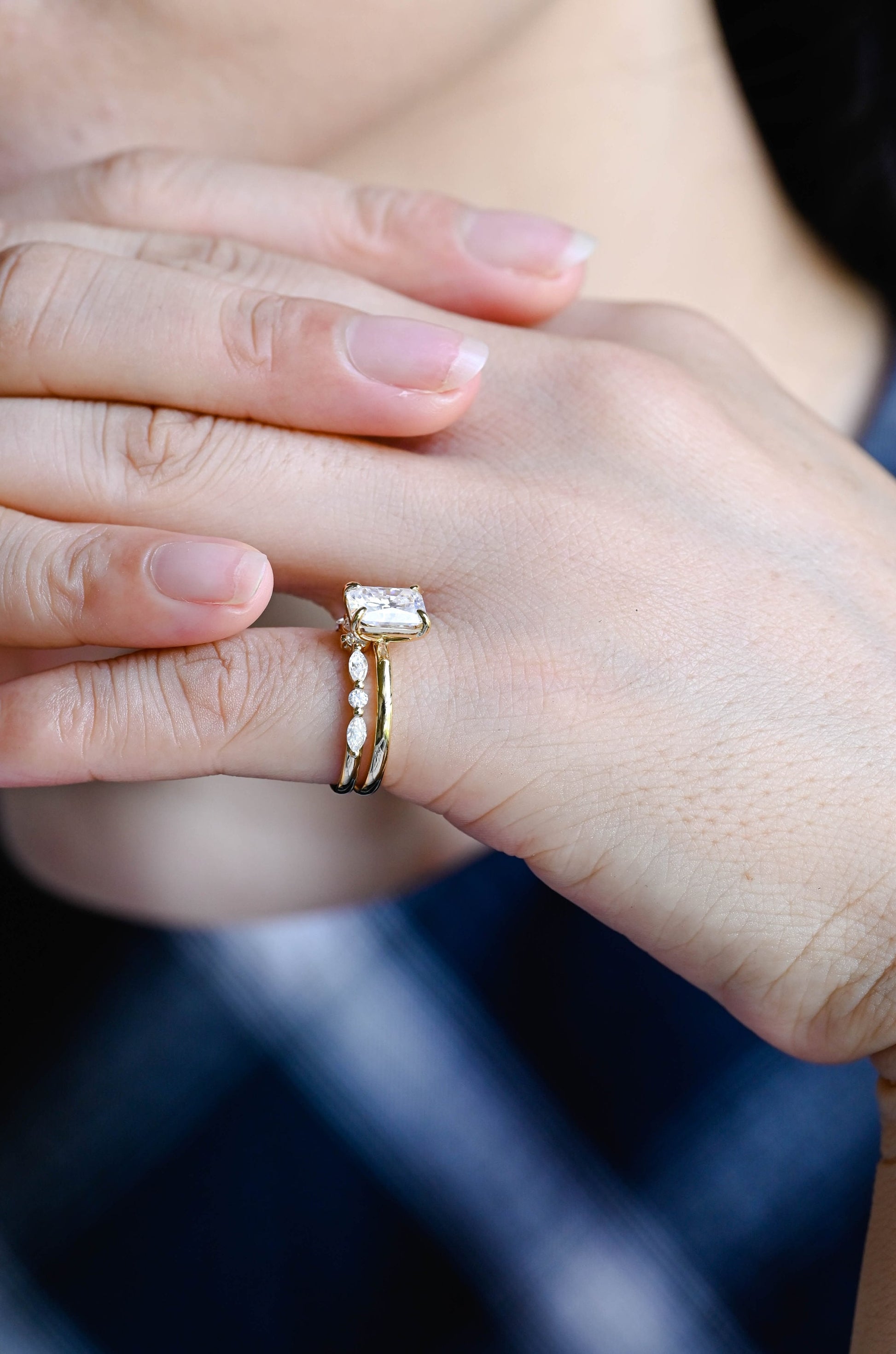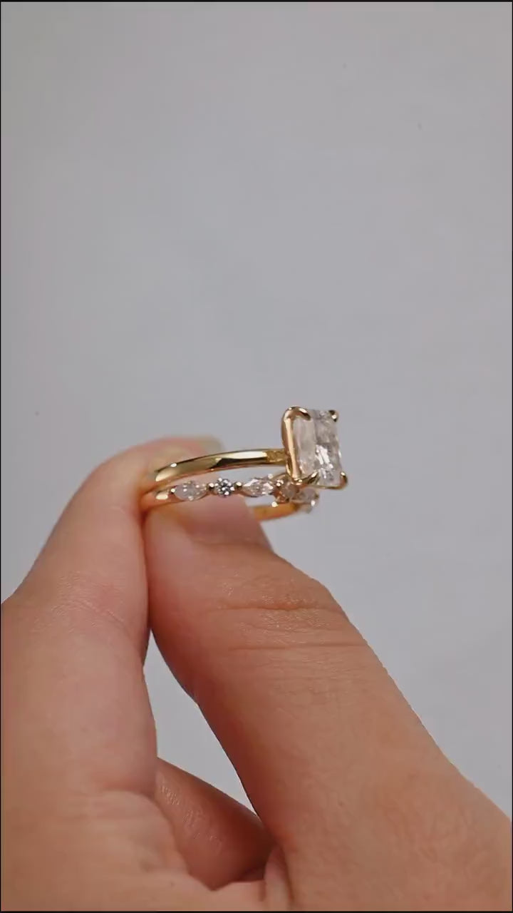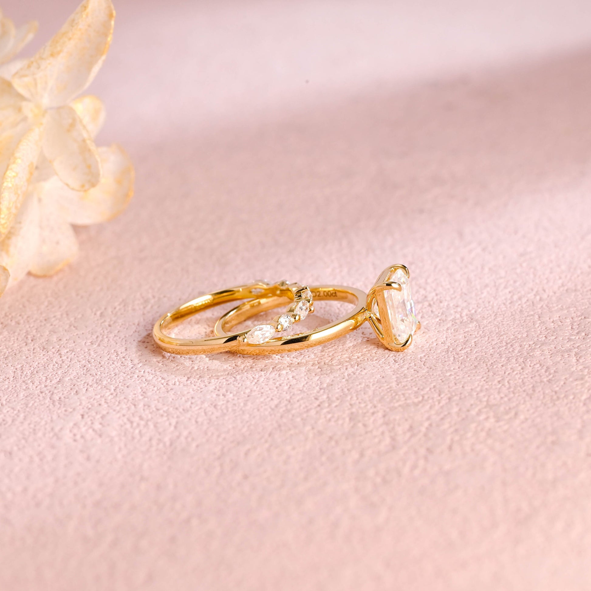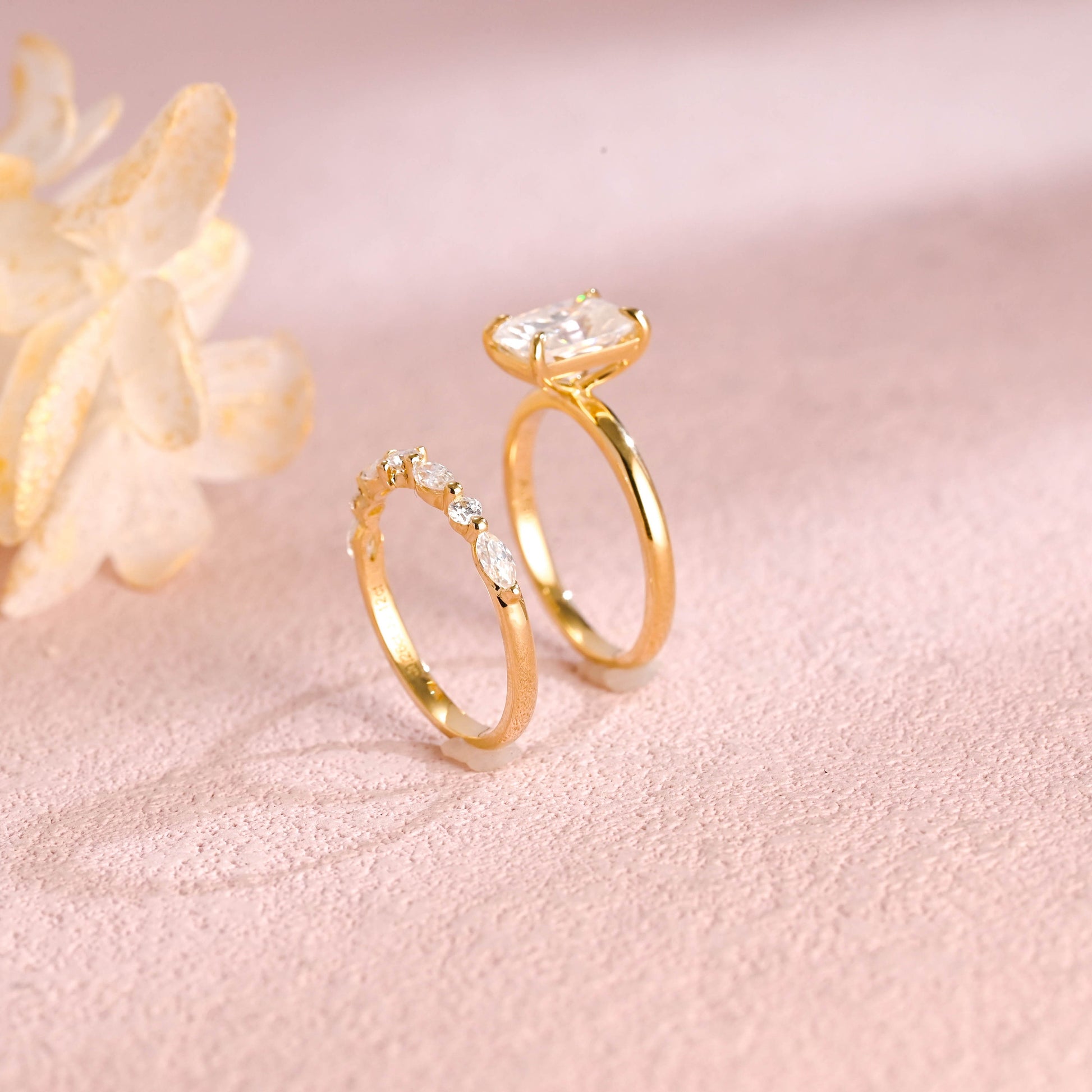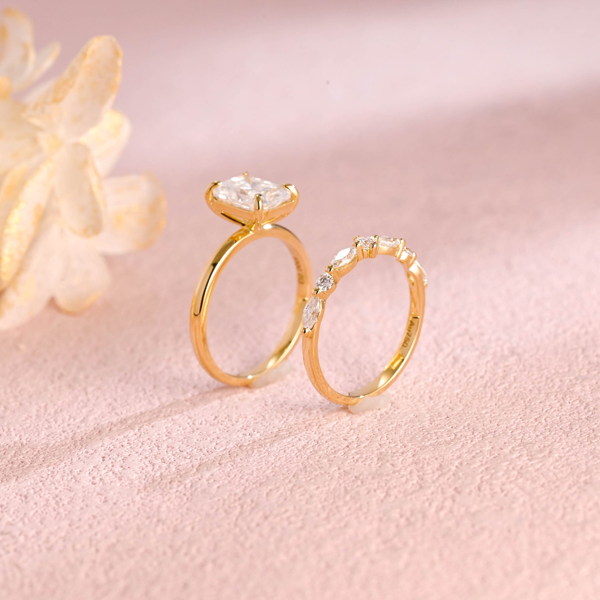 2ct Radiant Cut Moissanite Engagement Ring Set,18K Yellow Gold Moissanite Ring Set, Half Eternity Marquise Round Wedding Band Gift for Women