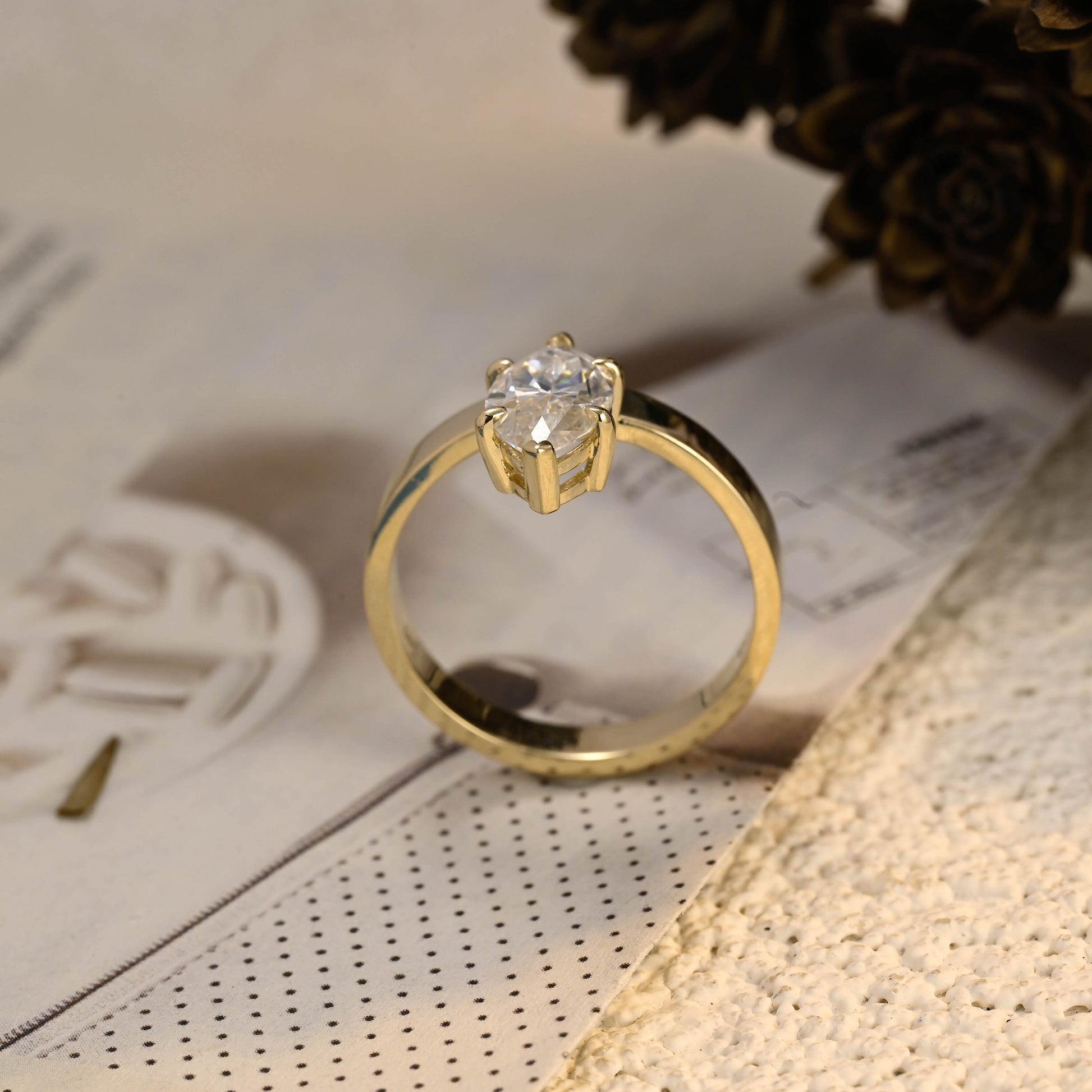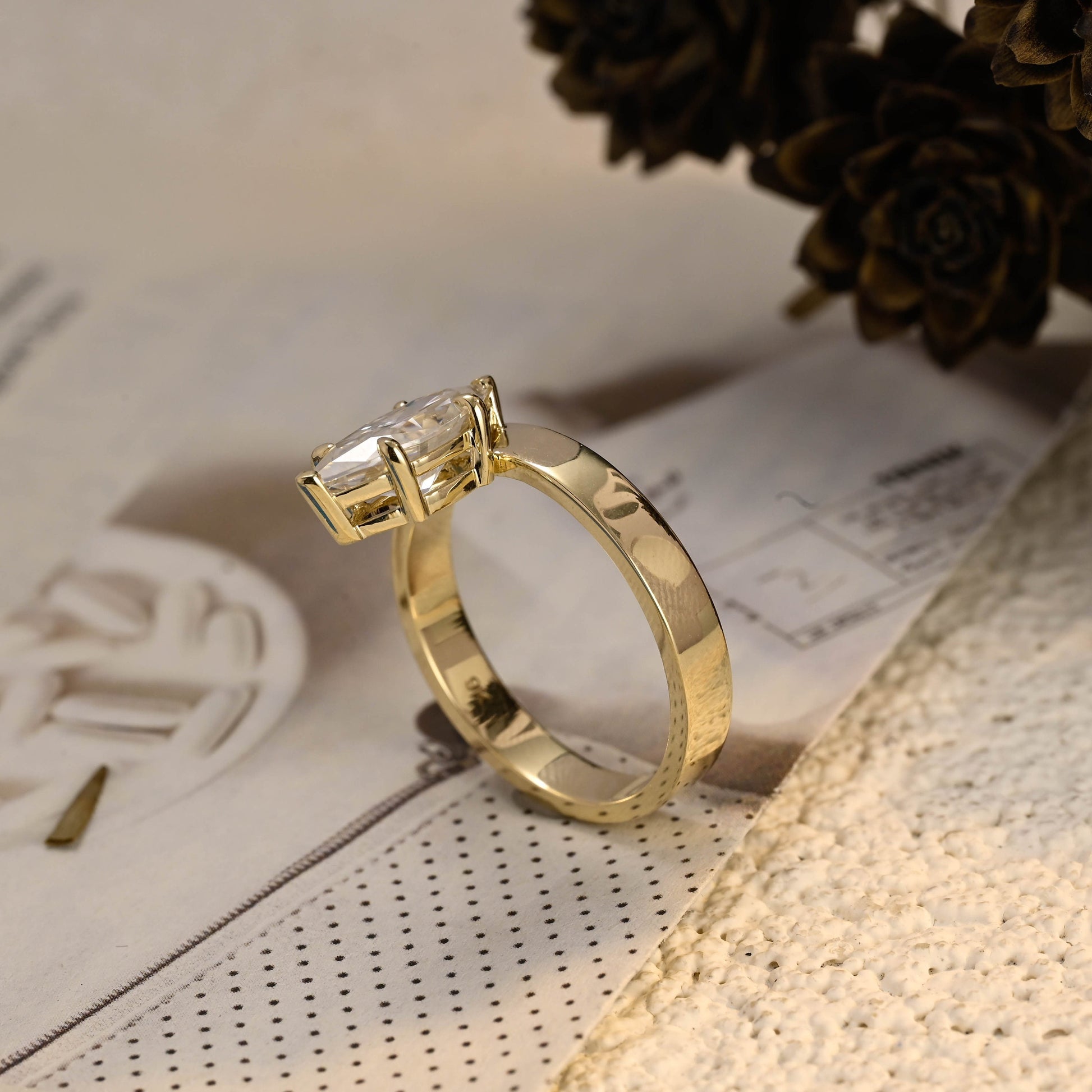 3.5mm Marquise Cut Moissanite Engagement Ring, 9K/14K/18K Solid Gold Off Center Handmade Moissanite Wedding Band, Classy Ring for Women/Men