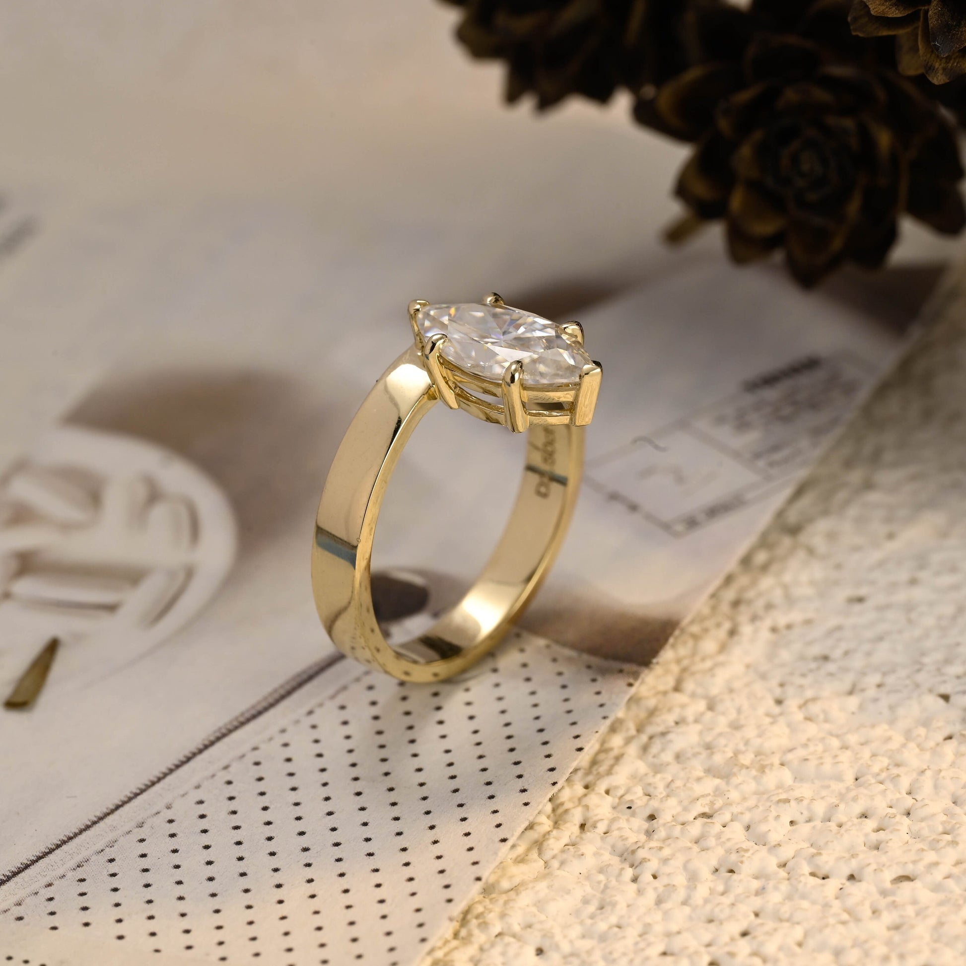 3.5mm Marquise Cut Solid Gold Off Center Handmade Moissanite Wedding Band