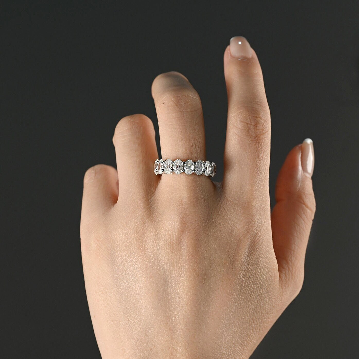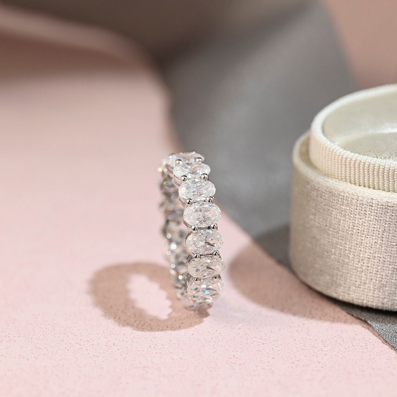 3Γ5mm Oval Cut Moissanite Ring Full-Eternity Wedding Band