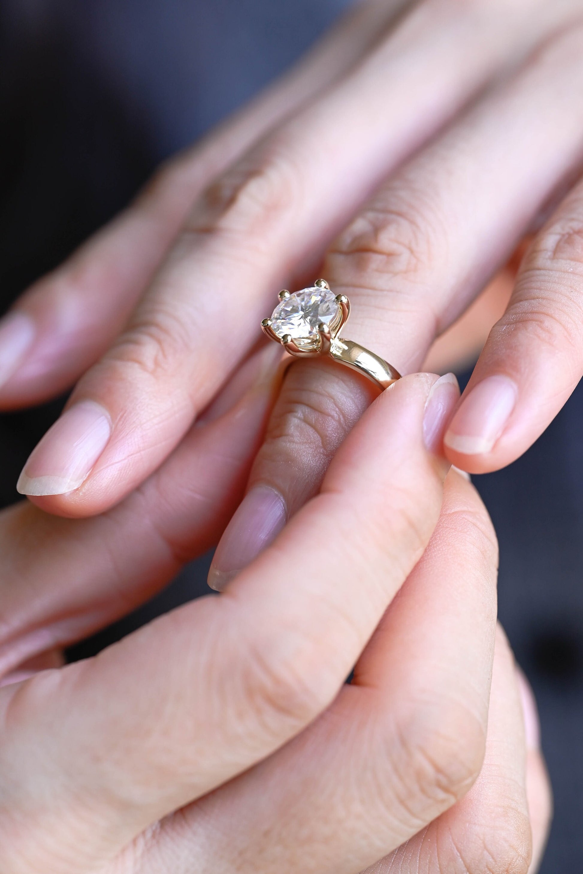 3.5mm Round Cut Diamond Solitaire Engagement Ring 6 Prong