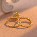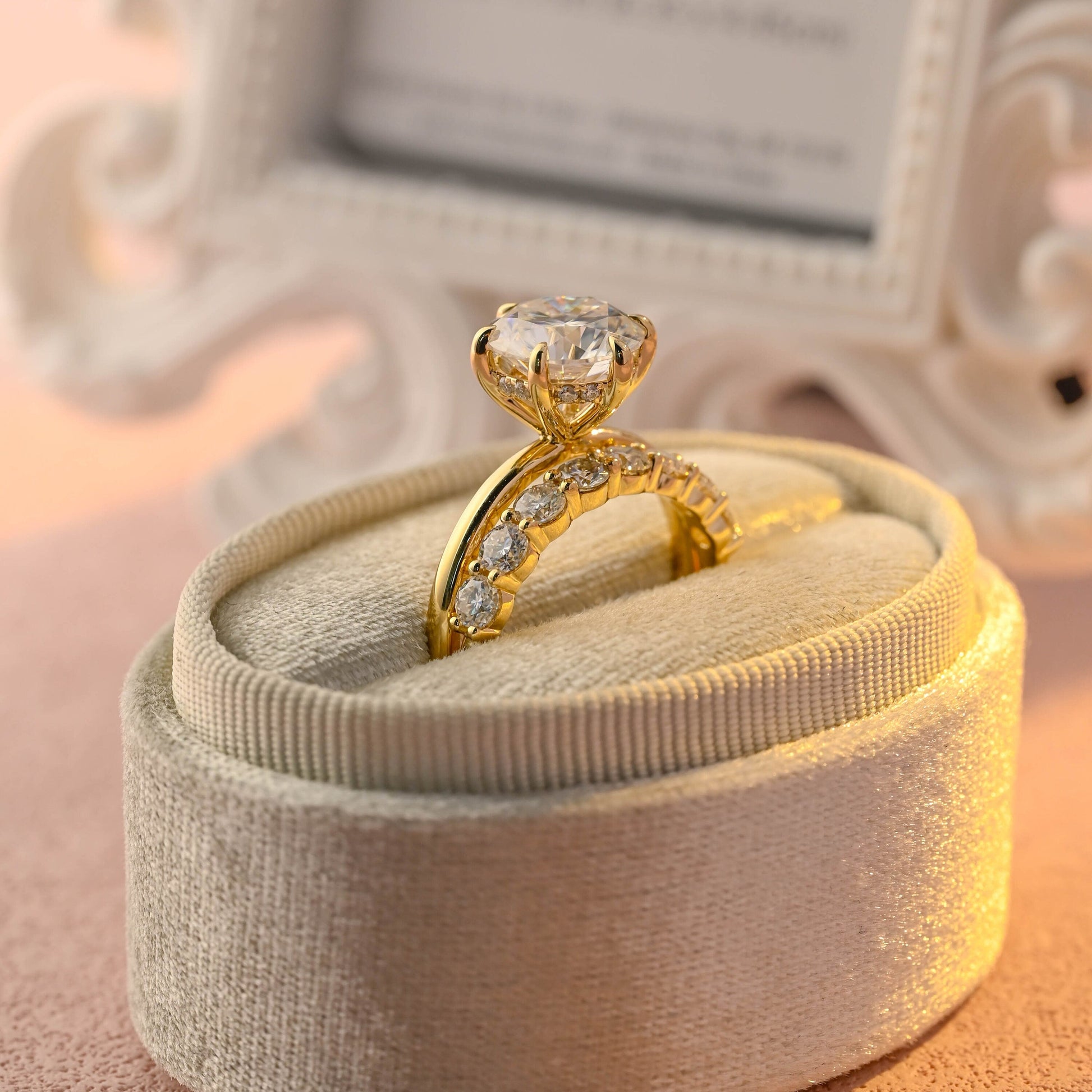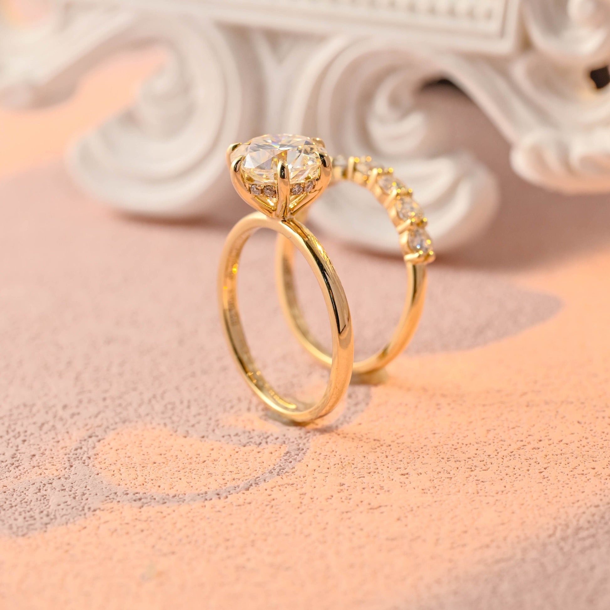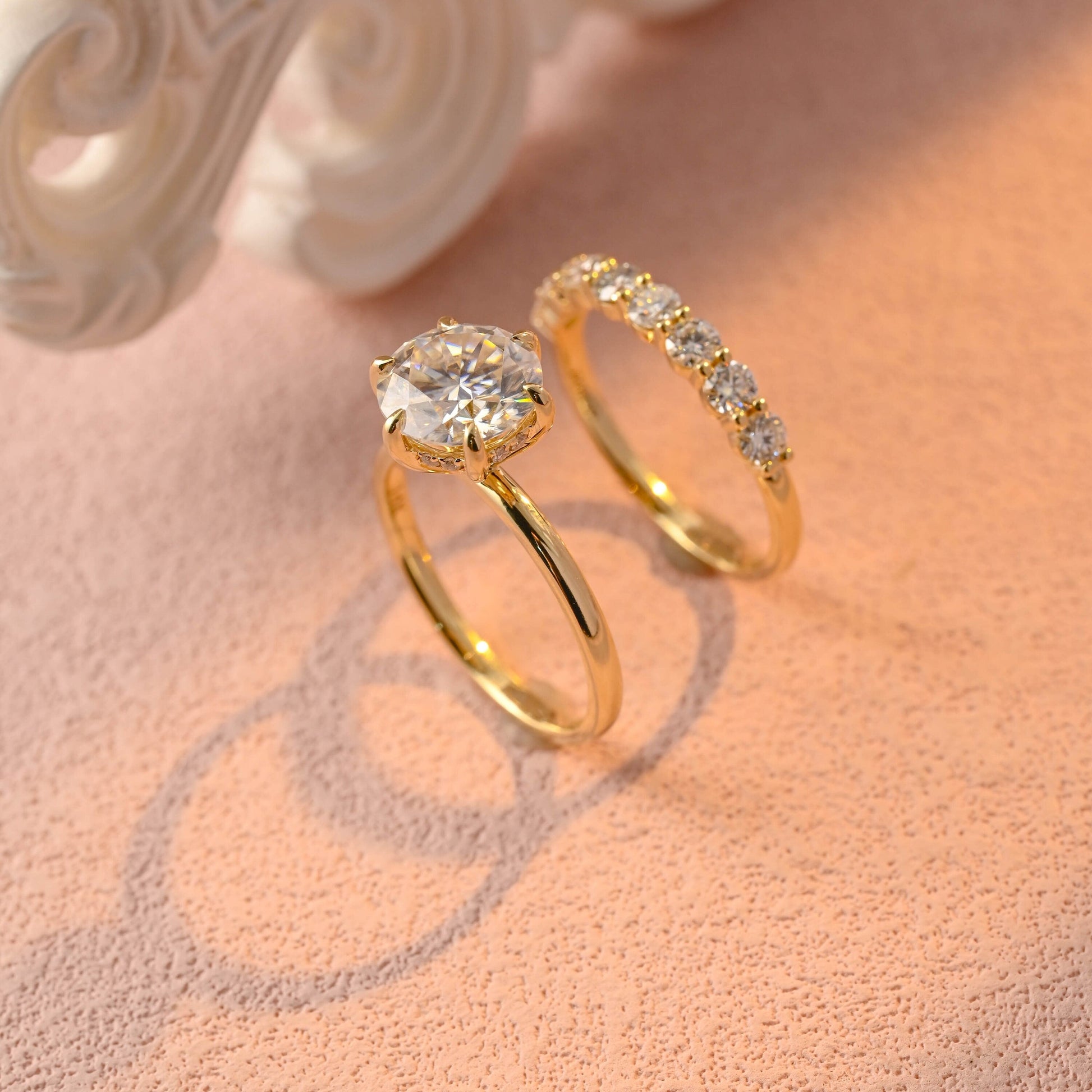 3ct Brilliant Round Cut Moissanite Engagement Ring Set for Women/Yellow Gold Round Bridal Set/Hidden Halo 6 Prongs Classic Wedding Ring Set
