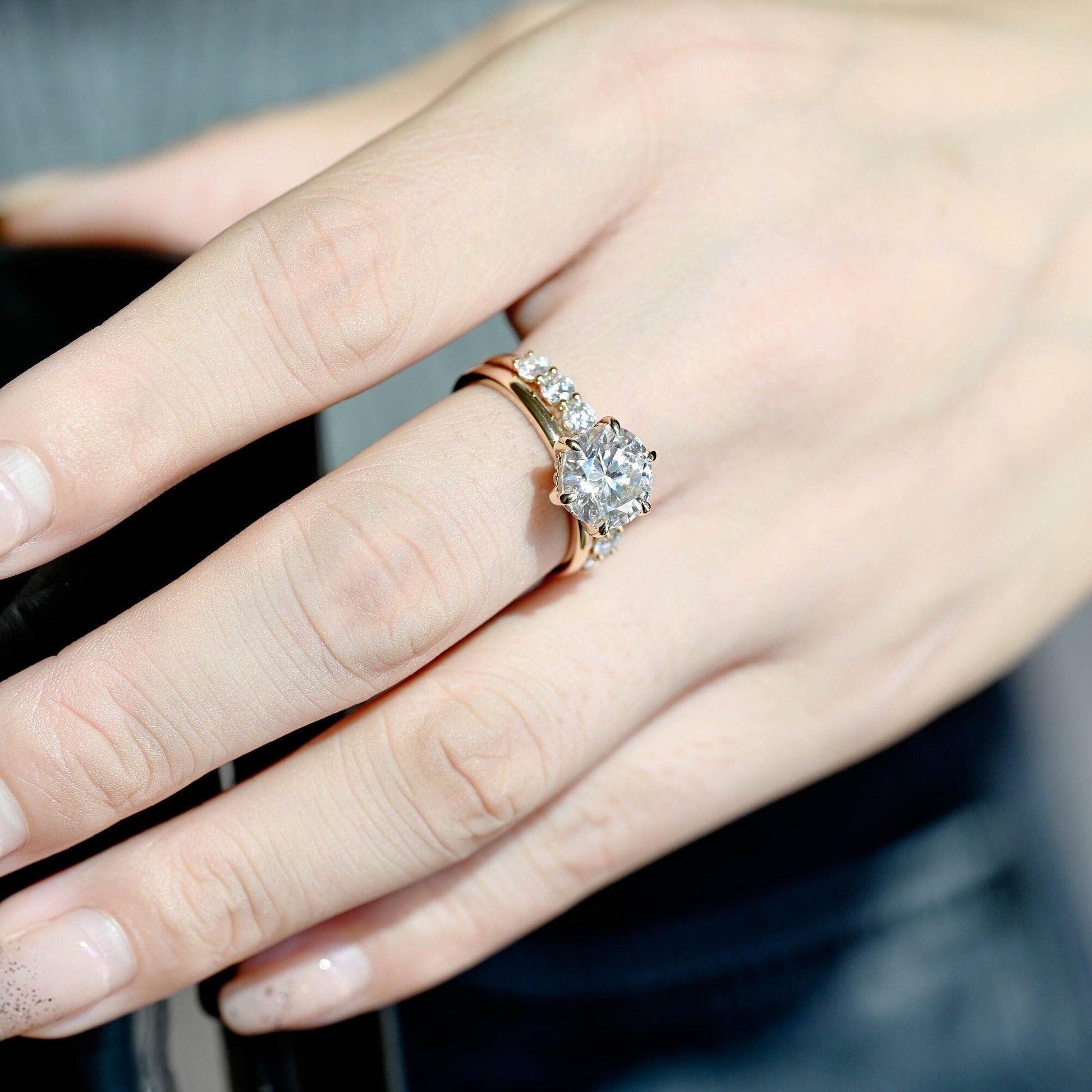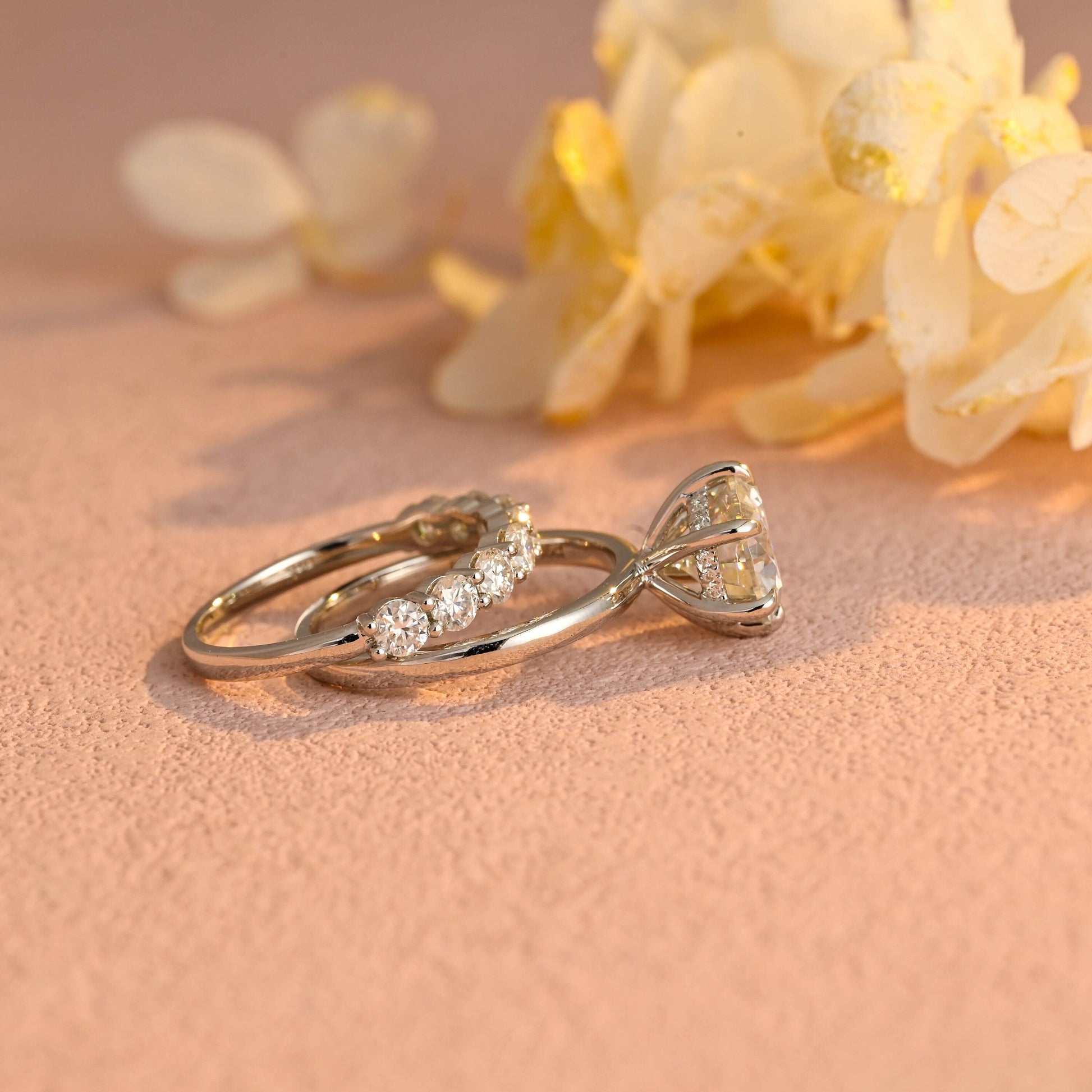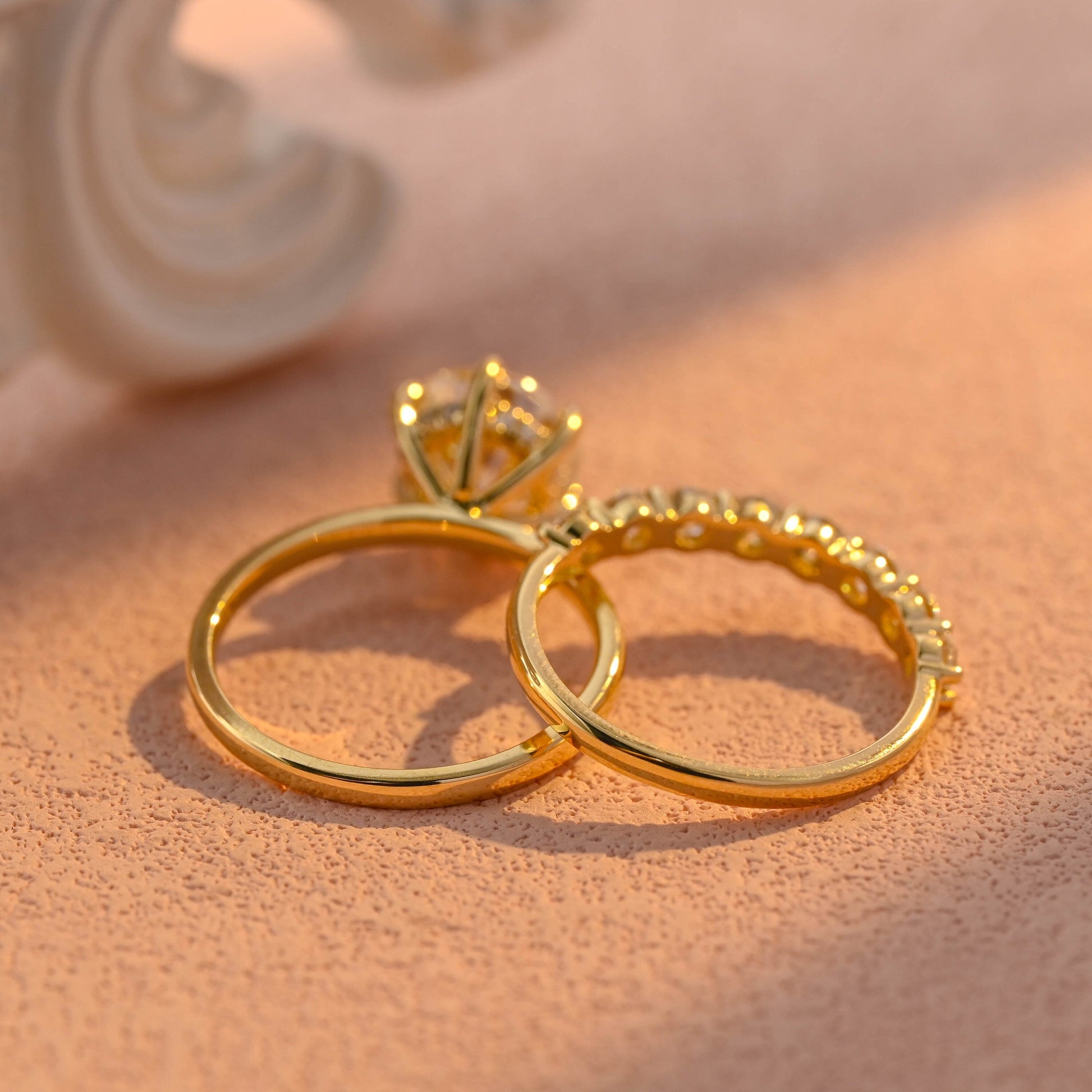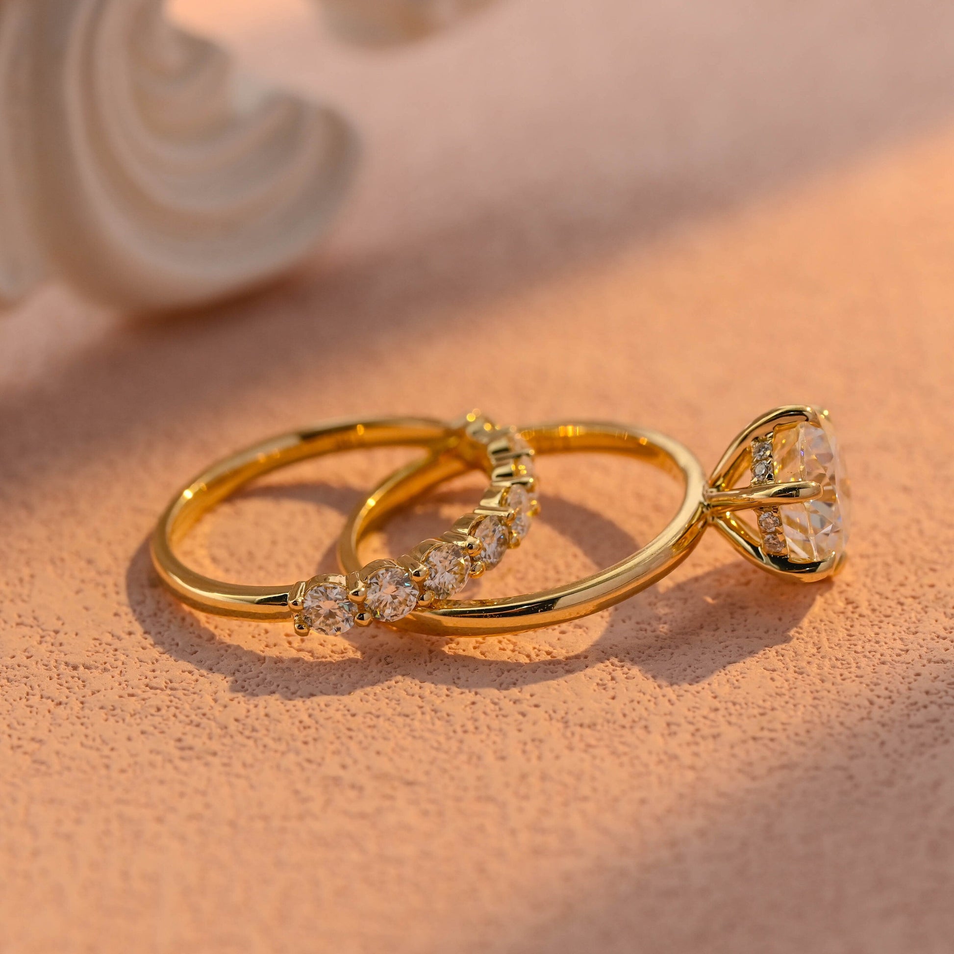 3ct Brilliant Round Cut Moissanite Engagement Ring Set for Women/Yellow Gold Round Bridal Set/Hidden Halo 6 Prongs Classic Wedding Ring Set