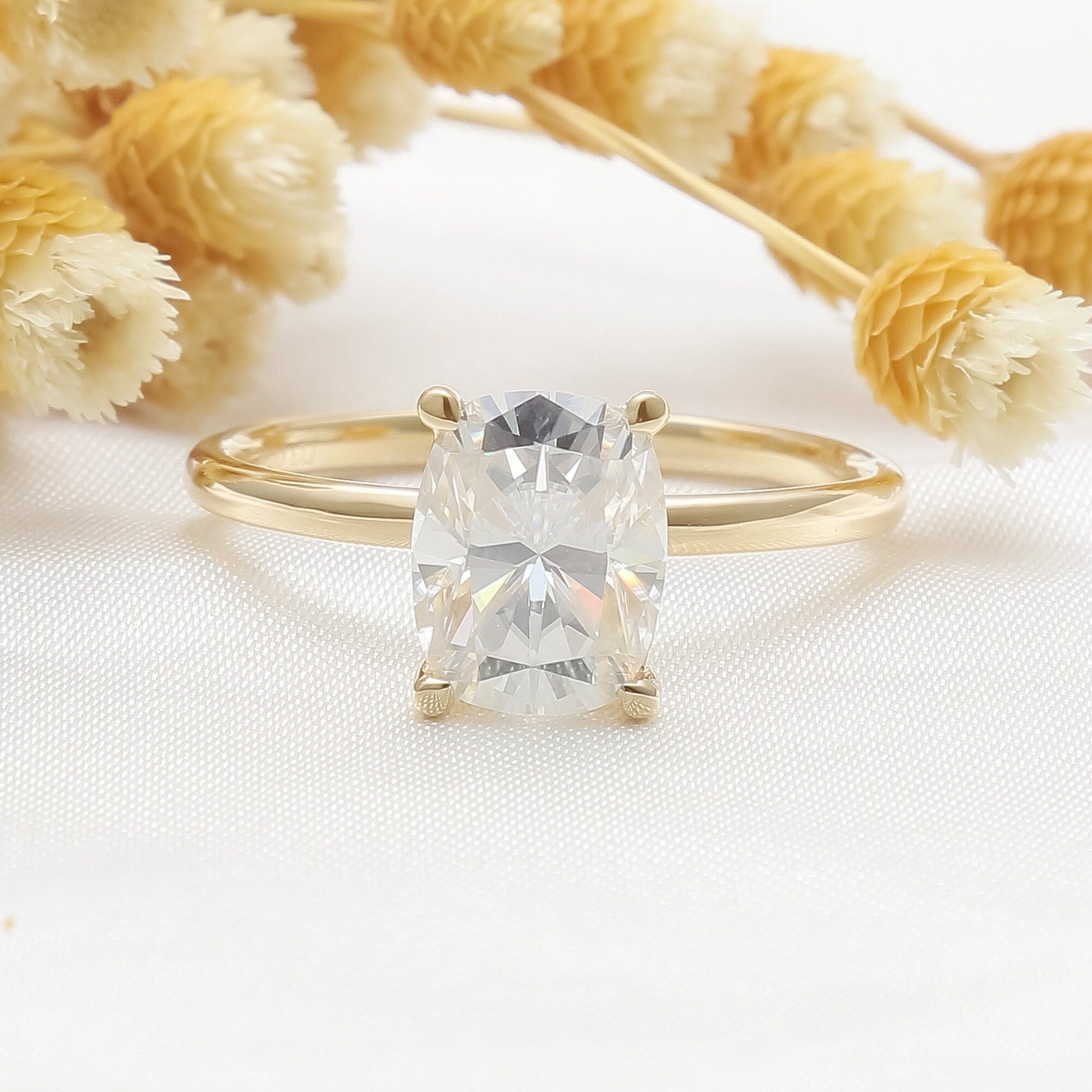 3ct Cushion Moissanite Wedding Set, Elongated Cushion Engagement Ring Set, Cushion Bridal Set, 9K 14K 18K Gold Half Eternity Wedding Band