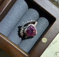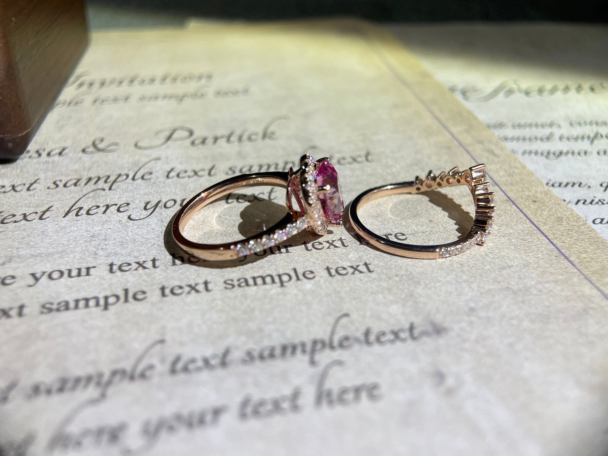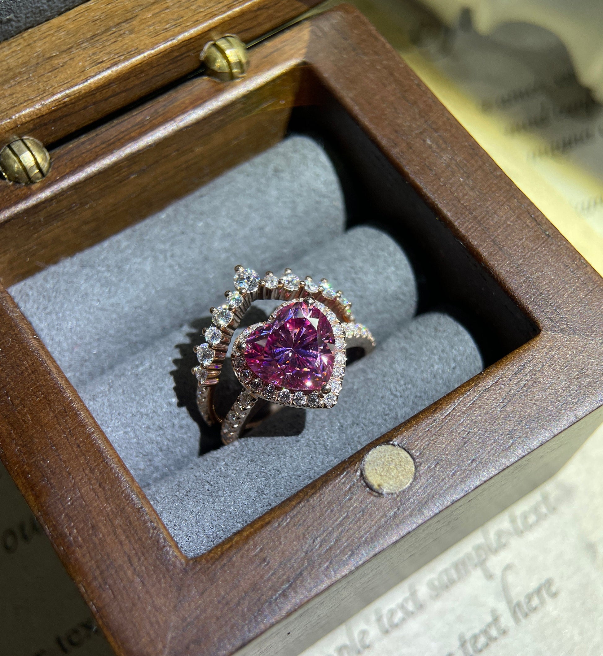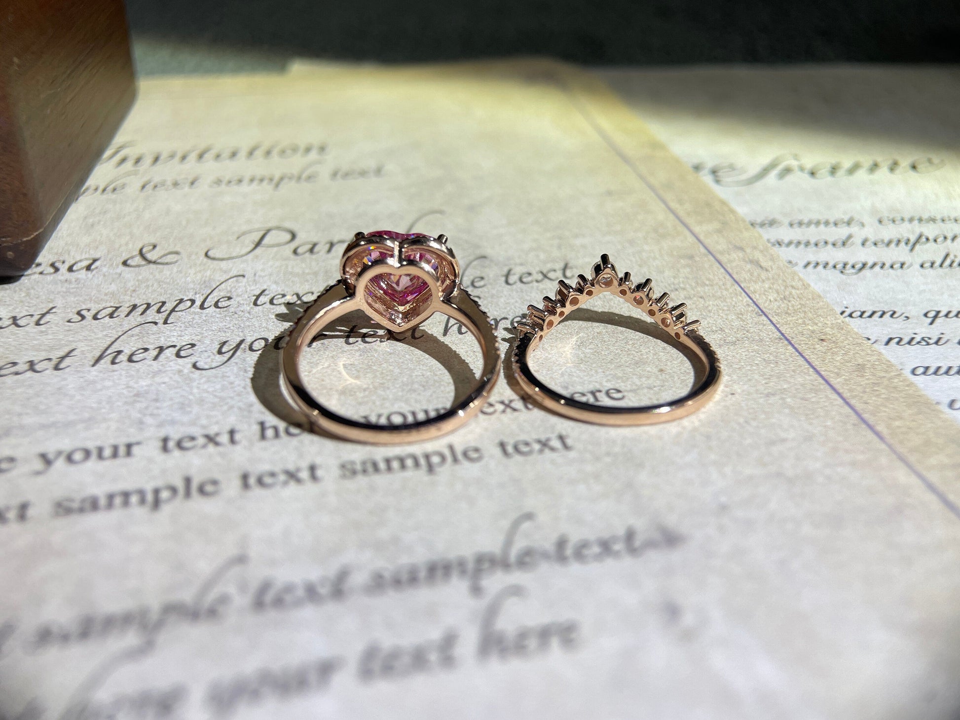 3ct Pink Heart Cut Halo Pave Moissanite Engagement Ring Set/14K Rose Gold Pave Promise Ring Halo Ring/Anniversary Gift/Vintage Jewelry