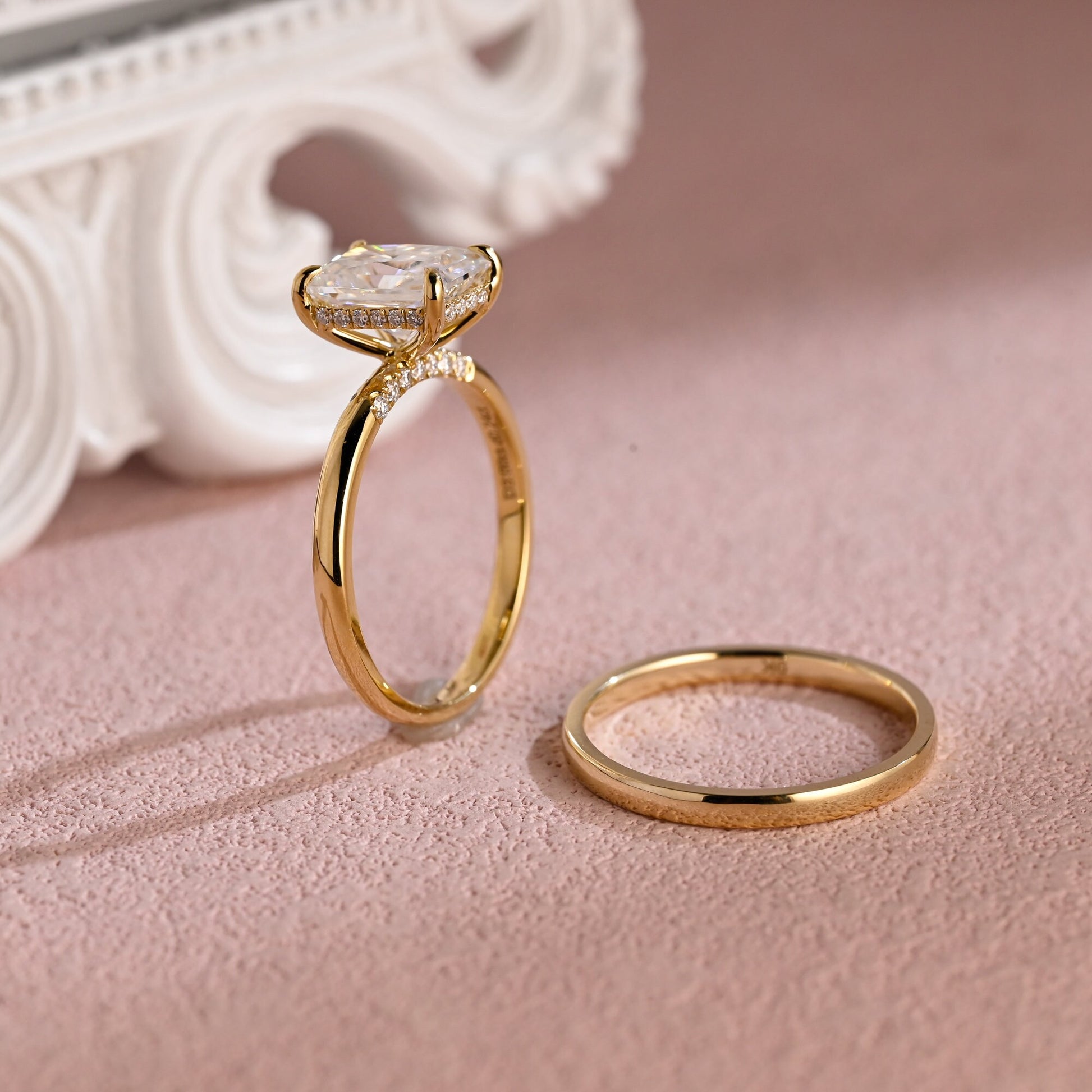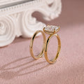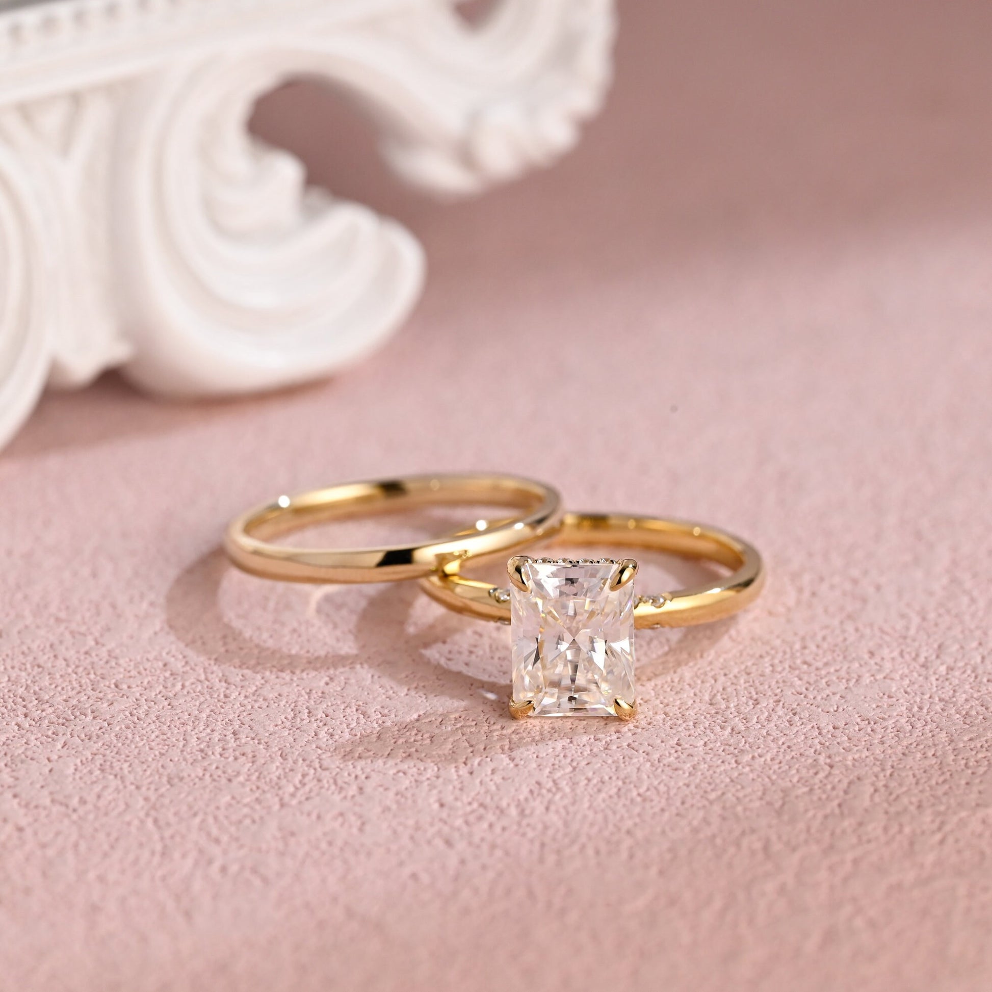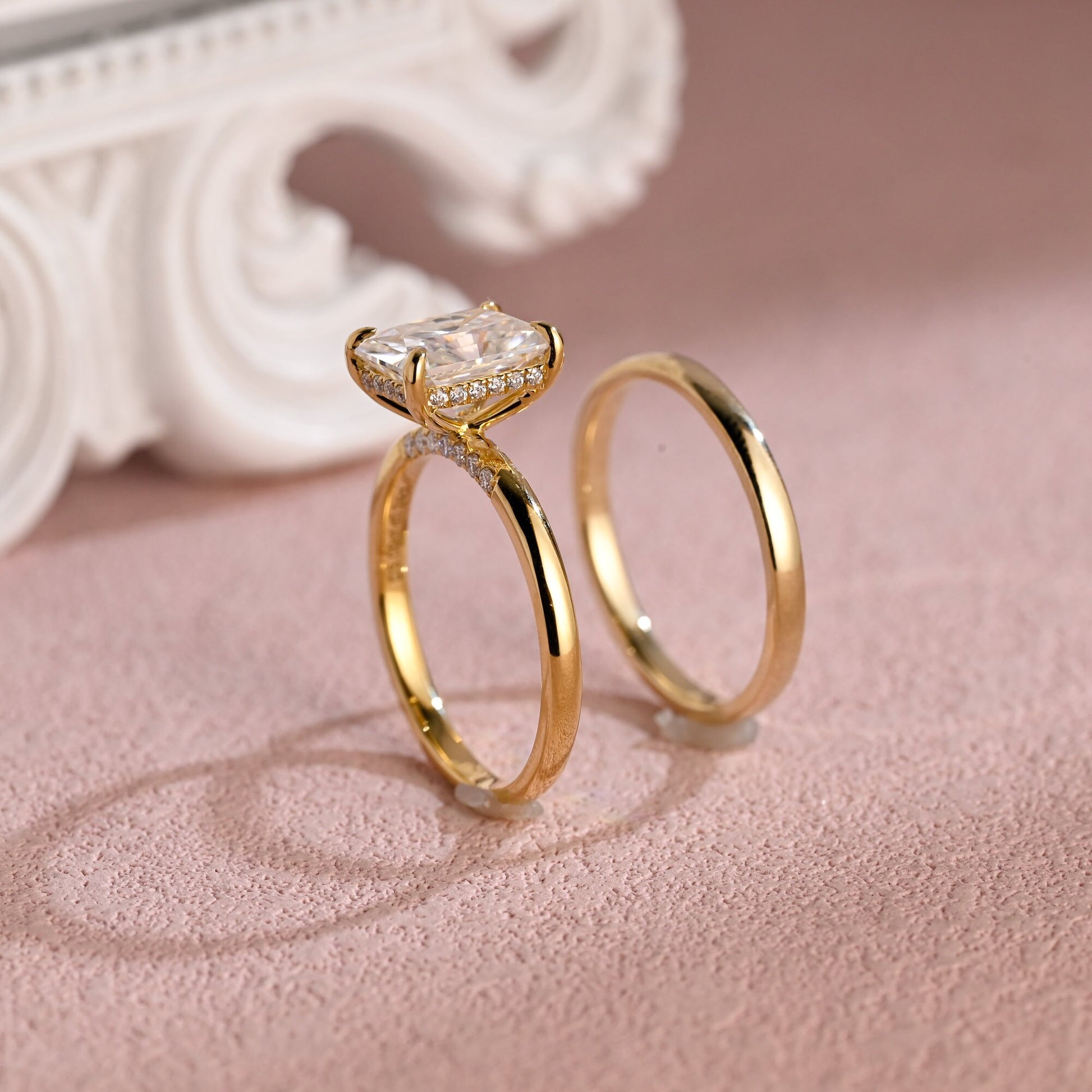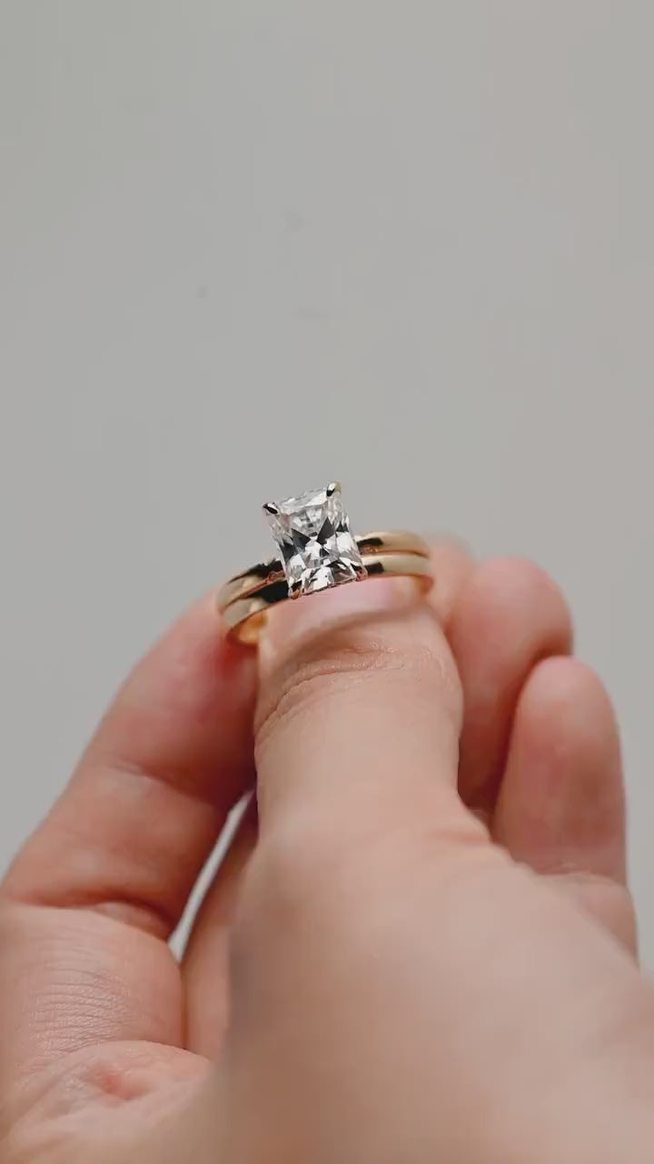 3ct Radiant Cut Moissanite Engagement Ring Set, 14K Yellow Gold Moissanite Bridal Set, Gold Plain Wedding Band Matching Band Gift for Women