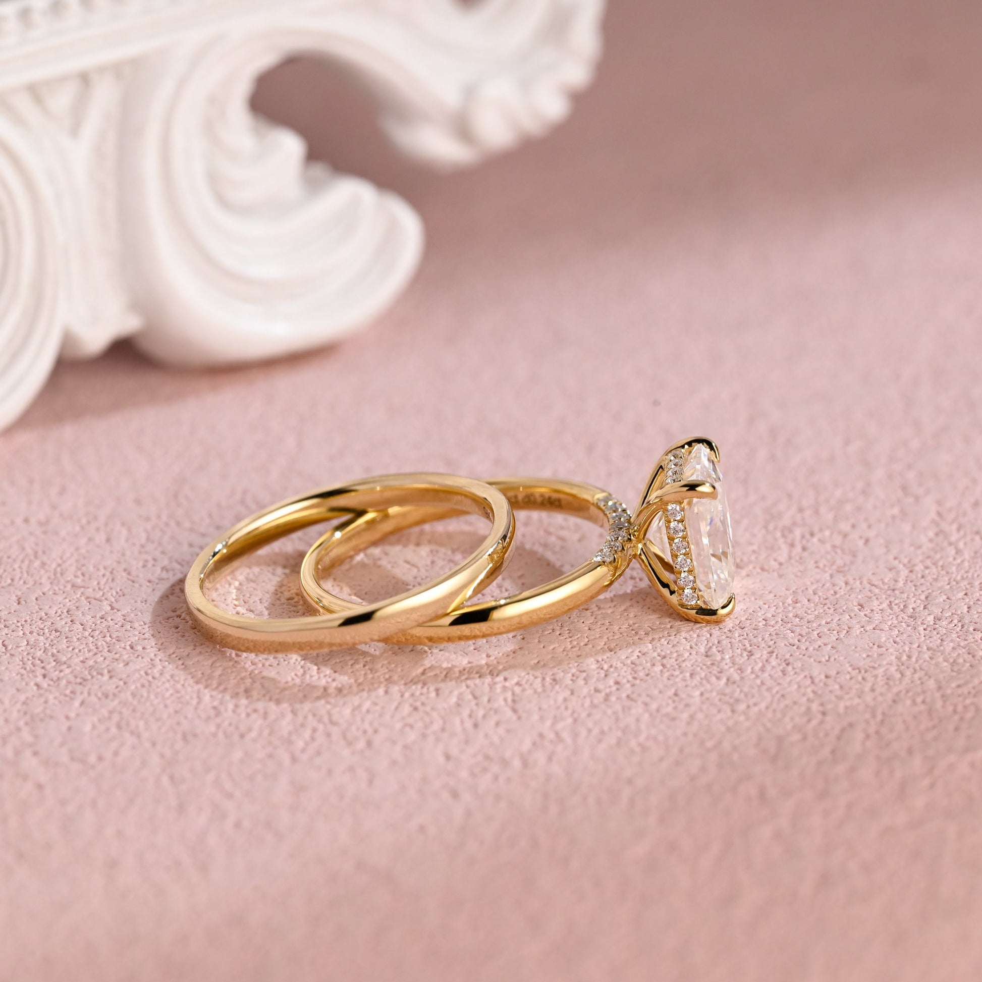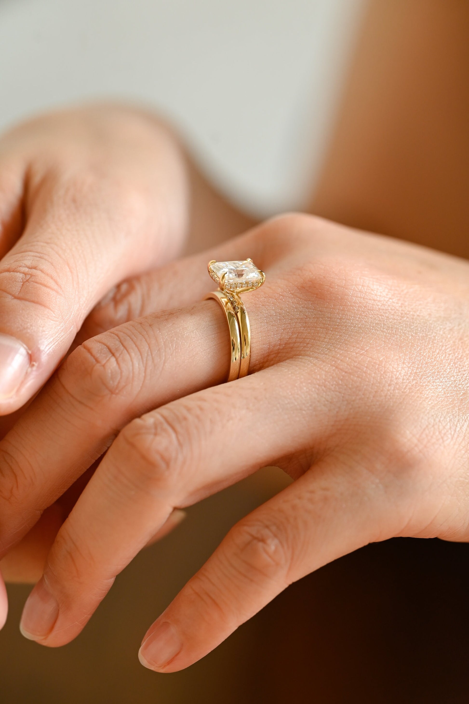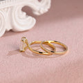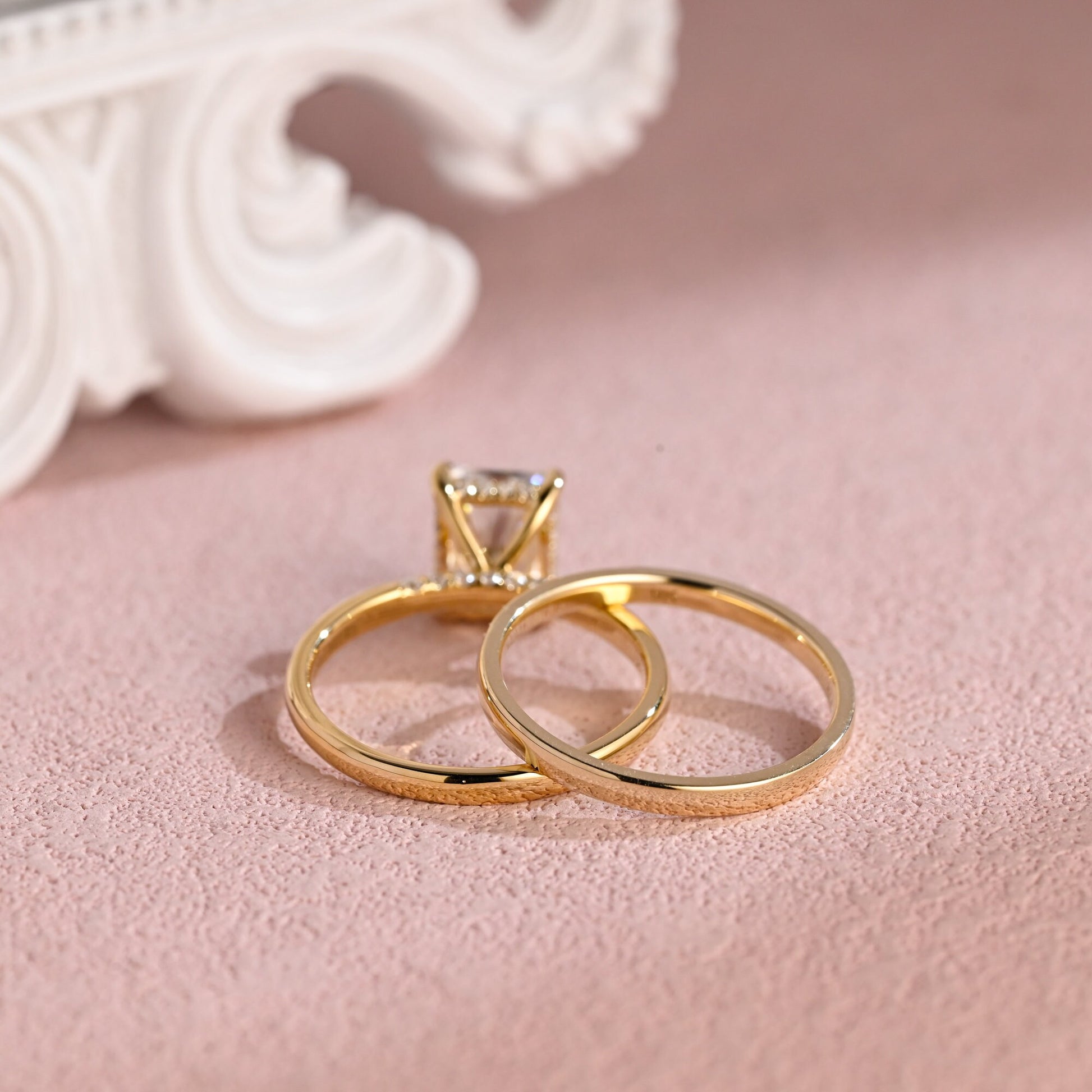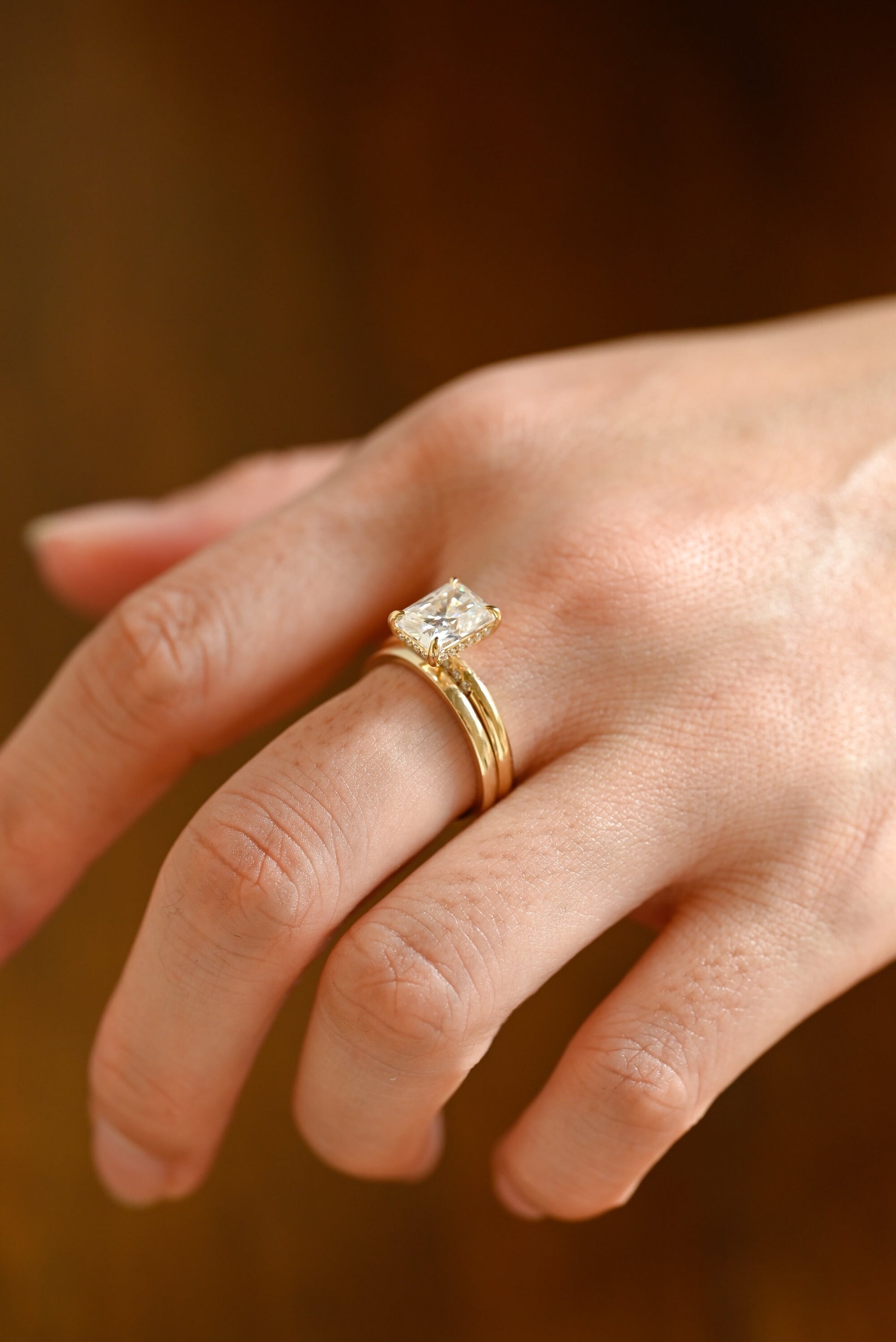 3ct Radiant Cut Moissanite Engagement Ring Set, 14K Yellow Gold Moissanite Bridal Set, Gold Plain Wedding Band Matching Band Gift for Women