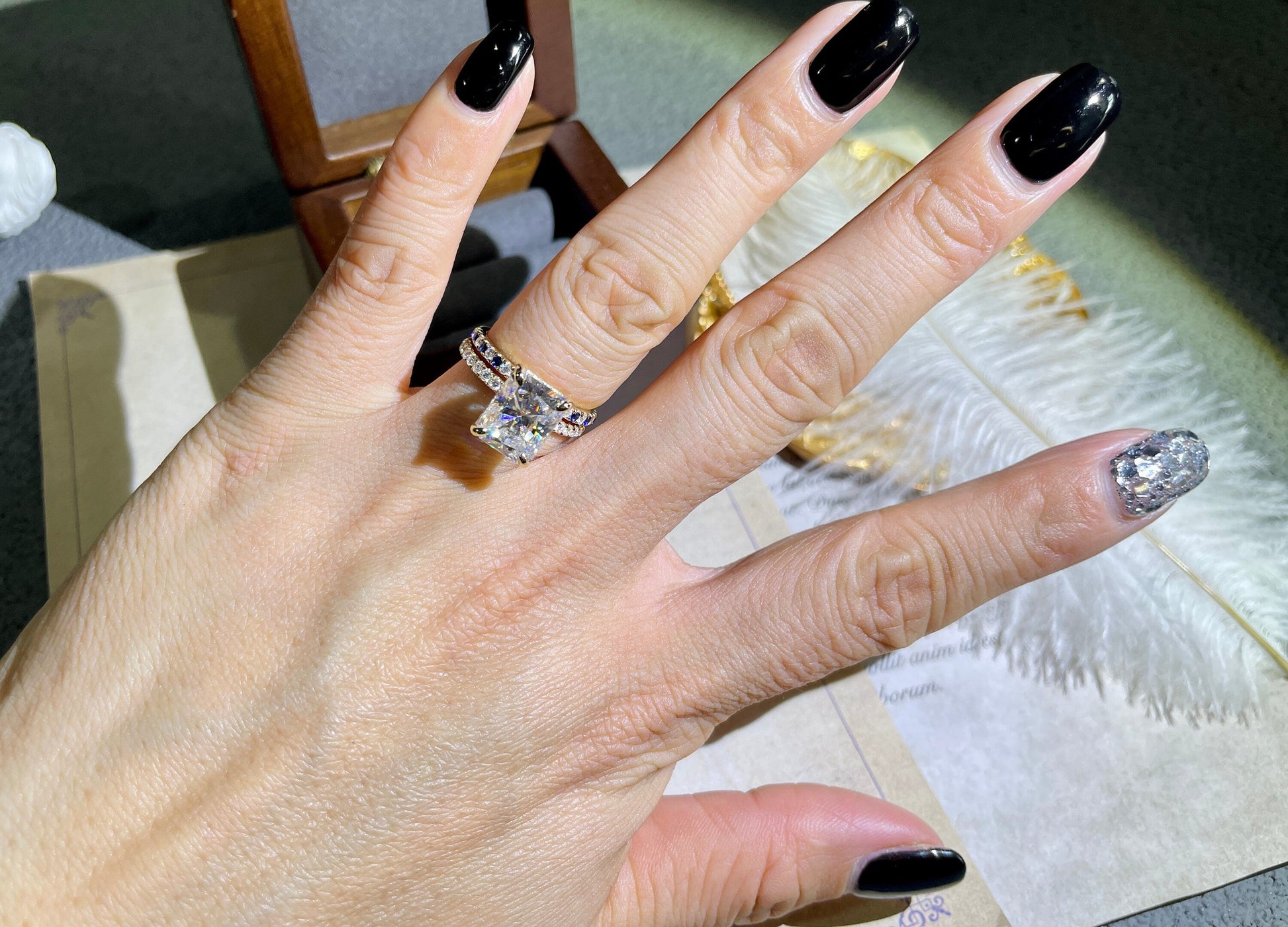 Our jewelry is crafted with simulant diamonds, moissanite, natural diamonds, lab-grown diamonds, and fine metals like 925 silver (with gold plating) and solid 10K, 14K, and 18K gold in white, yellow, and rose gold.