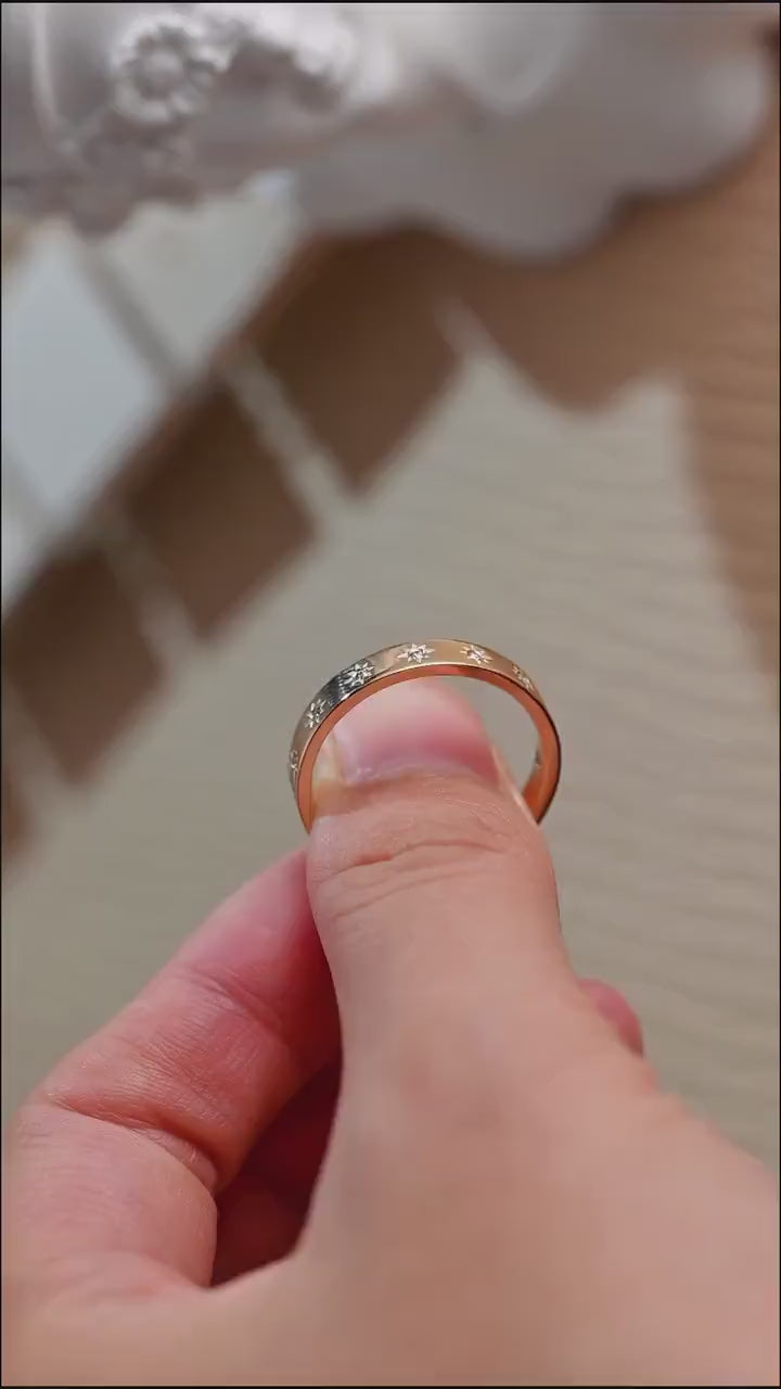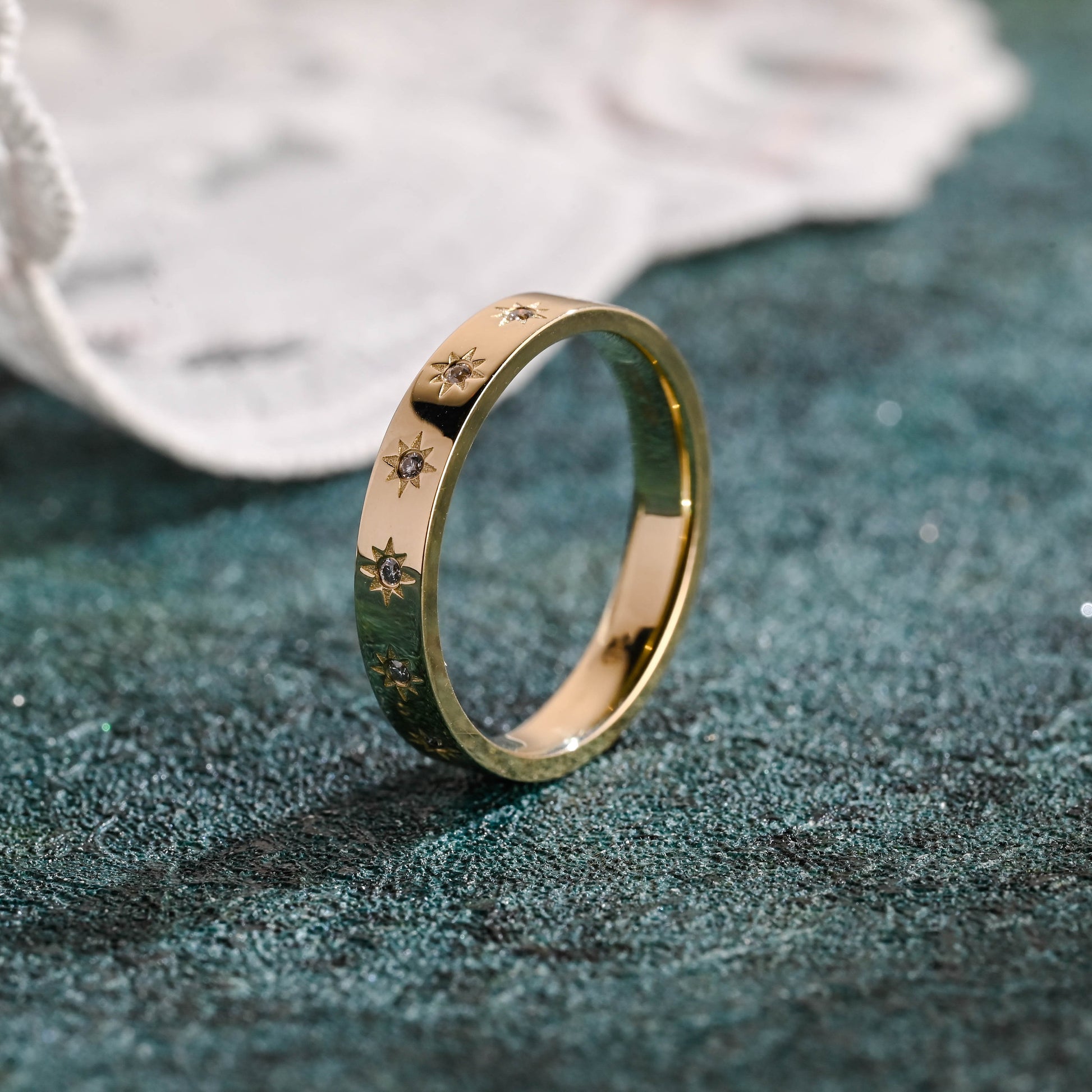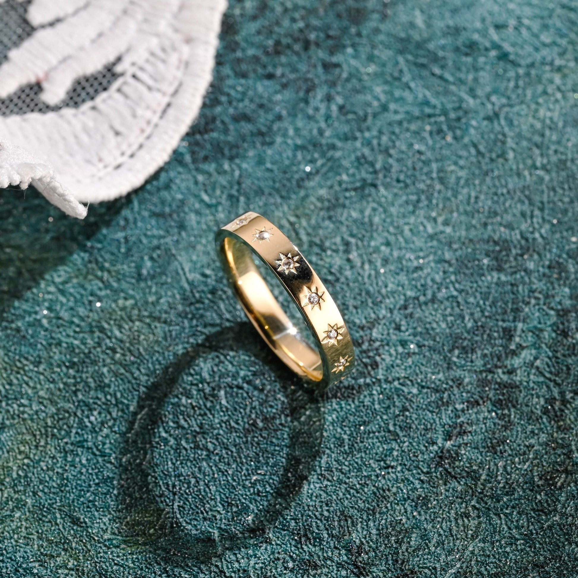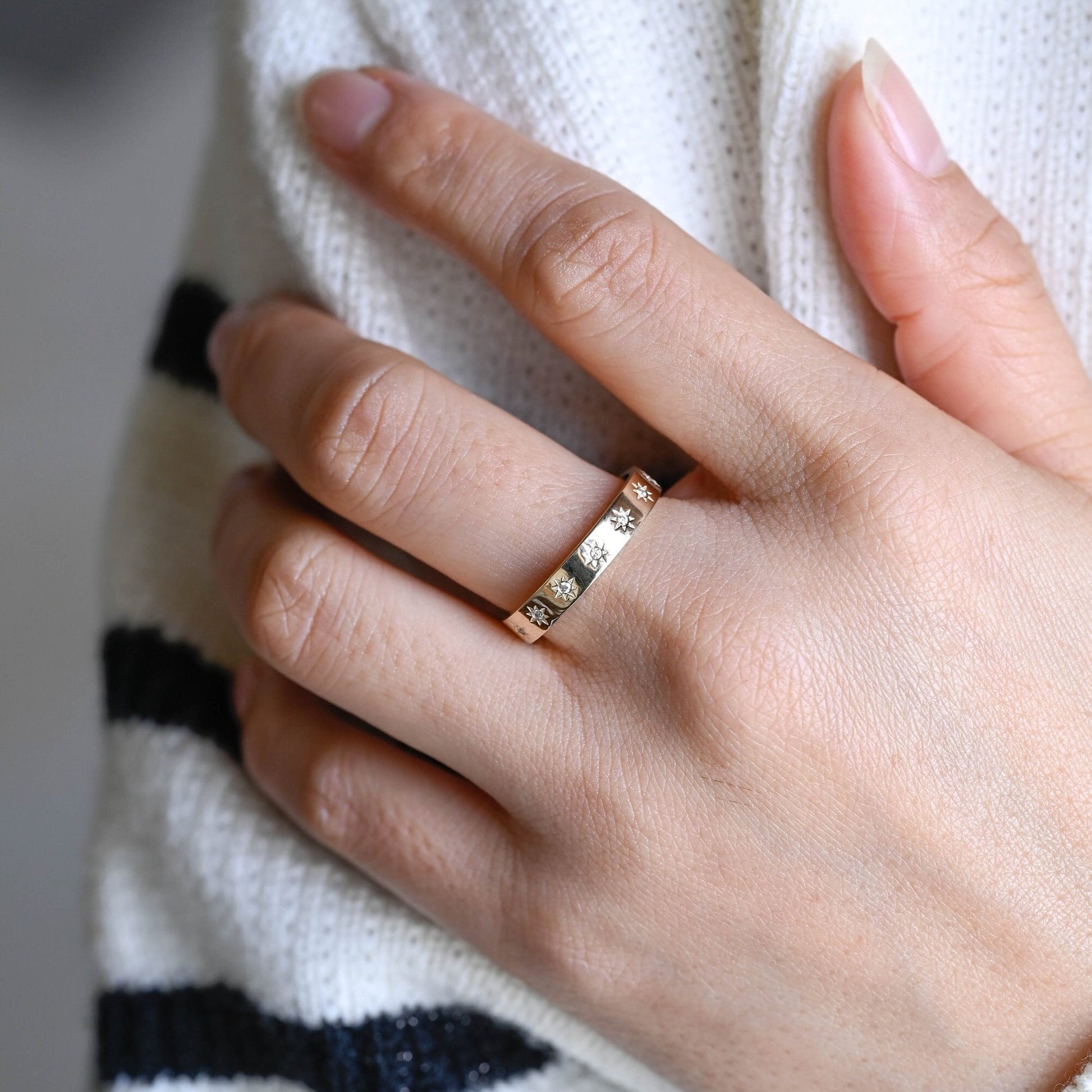 4mm Star Engraved Moissanite Solid Gold Dainty Star Setting Band