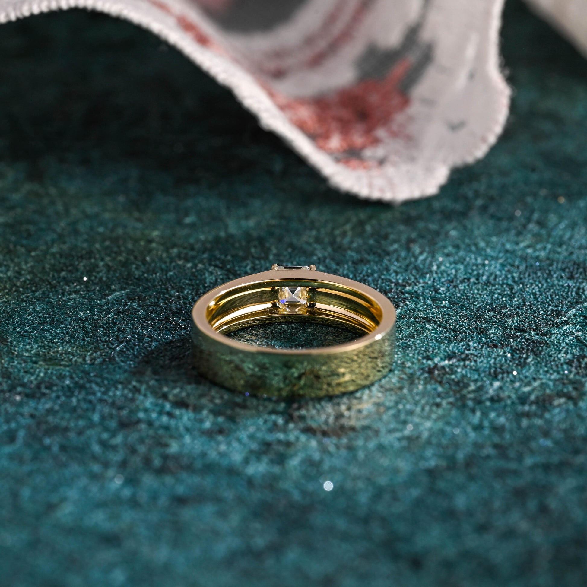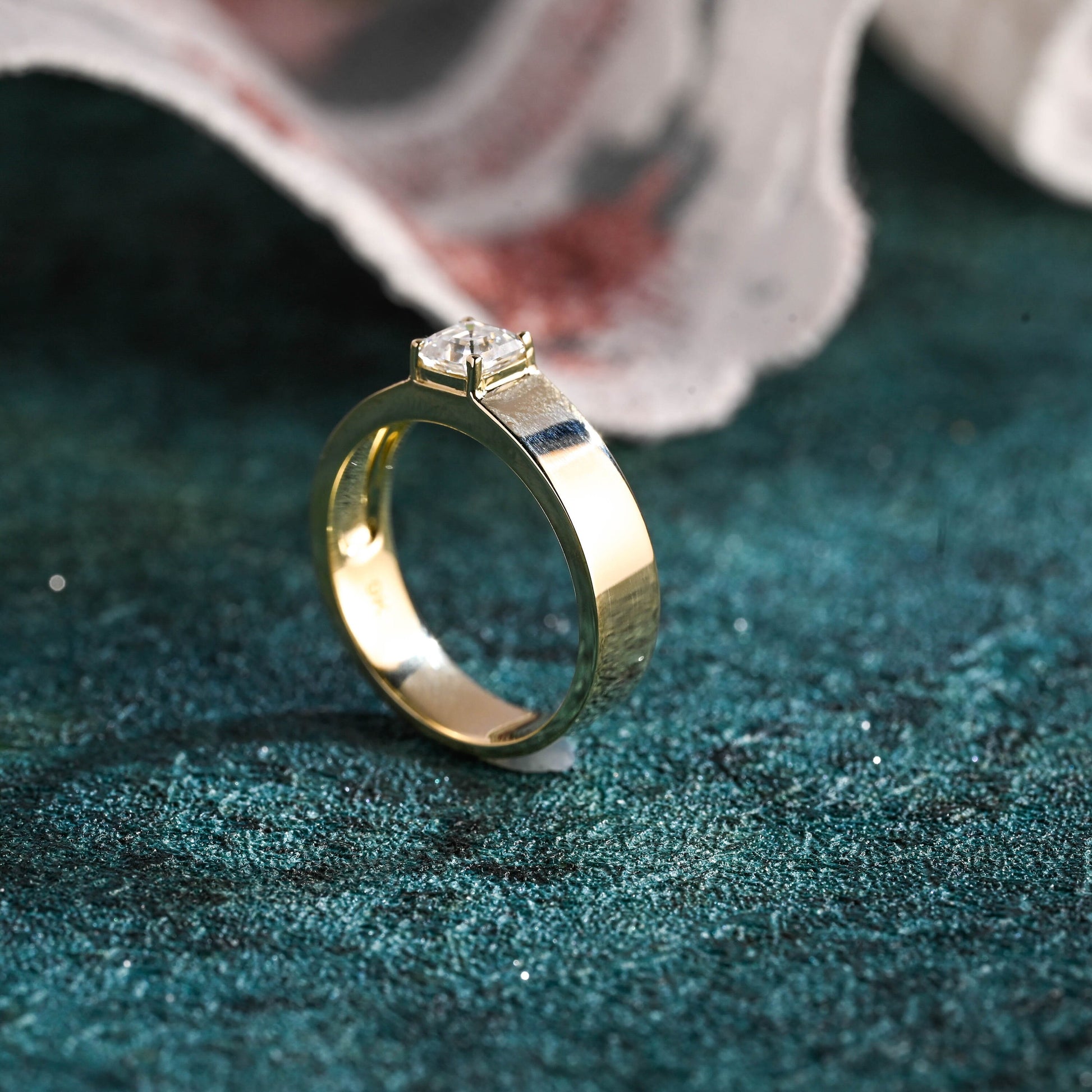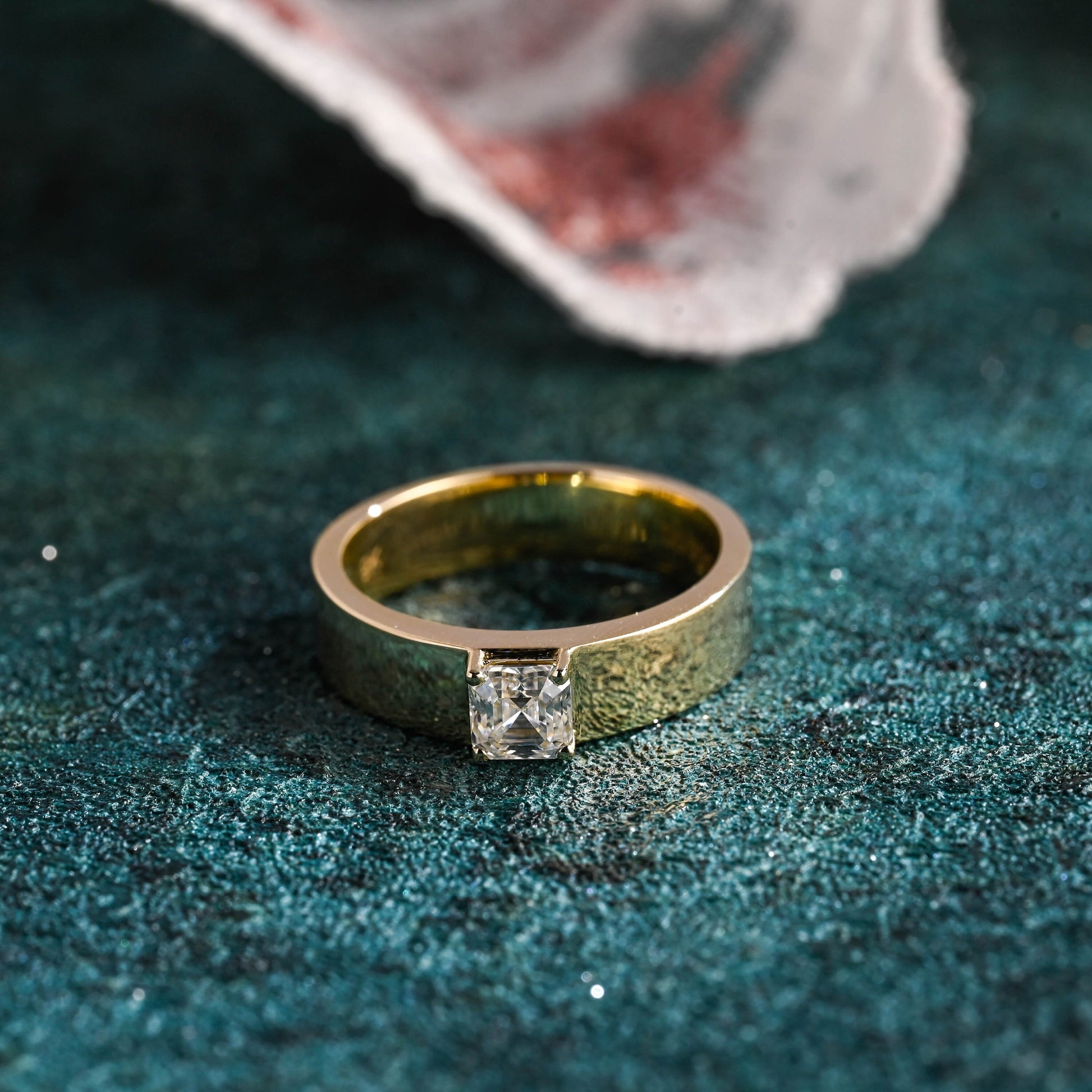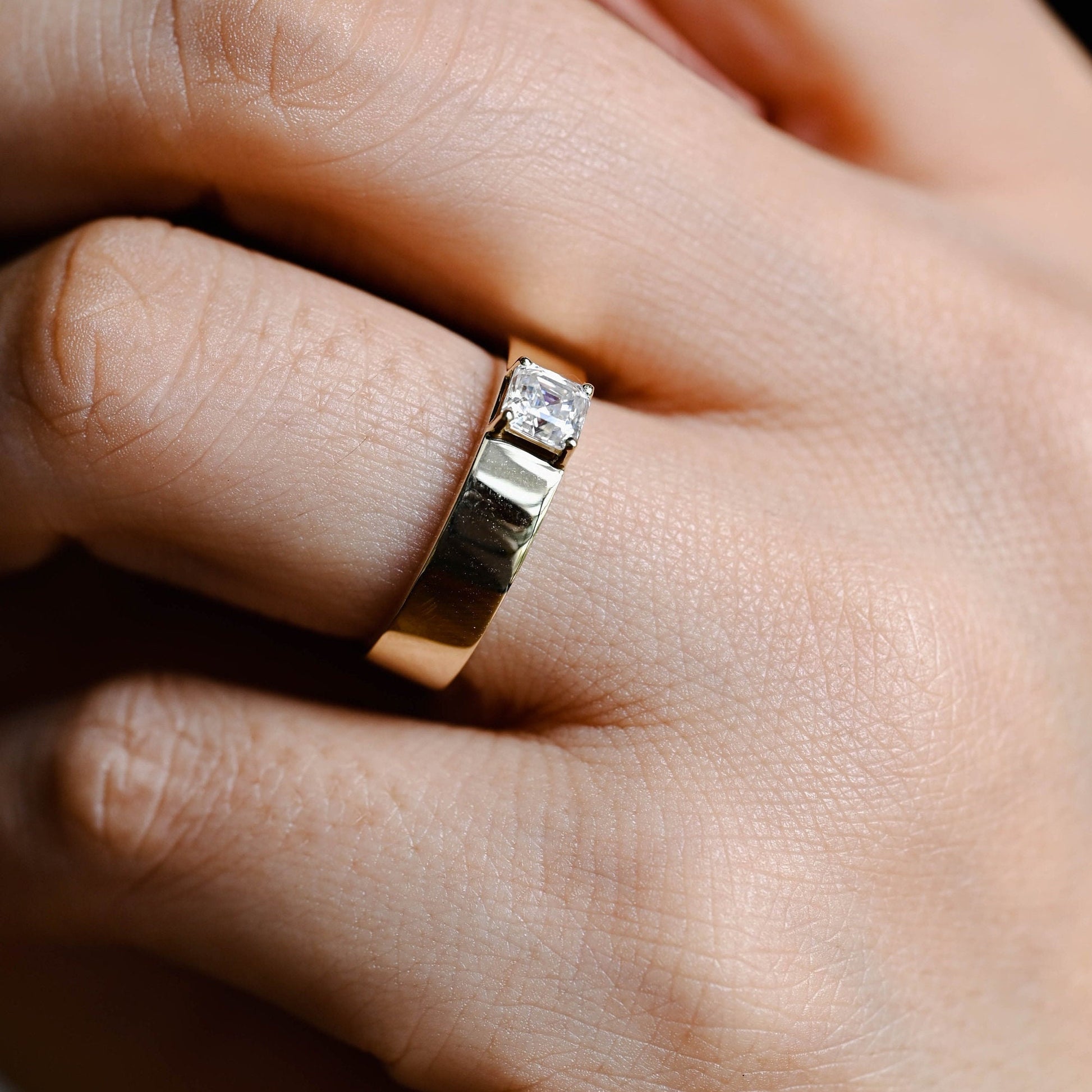 5mm Wide Band Ascher Cut Moissanite Ring, Solid Gold Minimalist Engagement Ring, Men's Polished Wedding Band, Β Anniversary Gift for Man