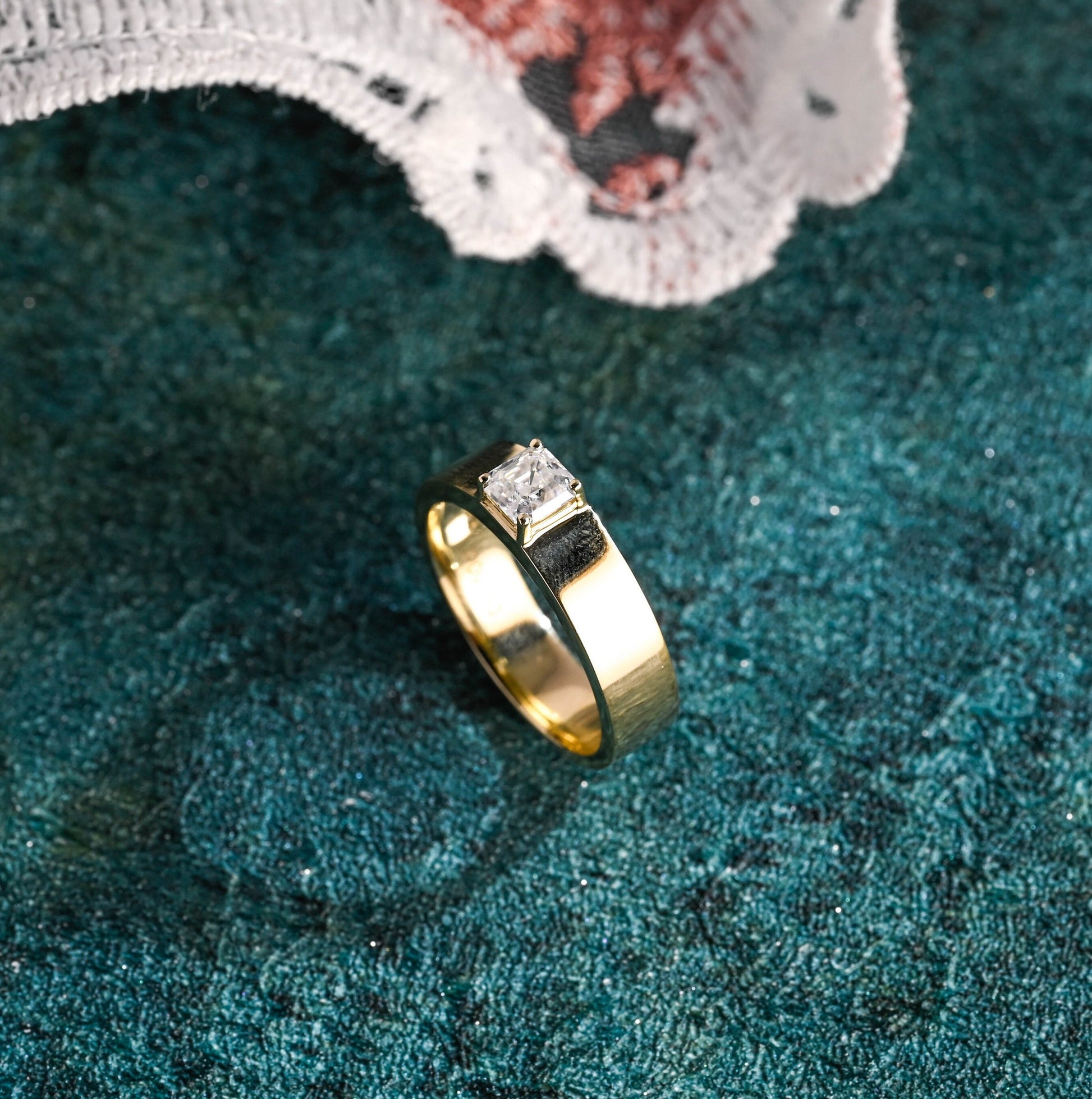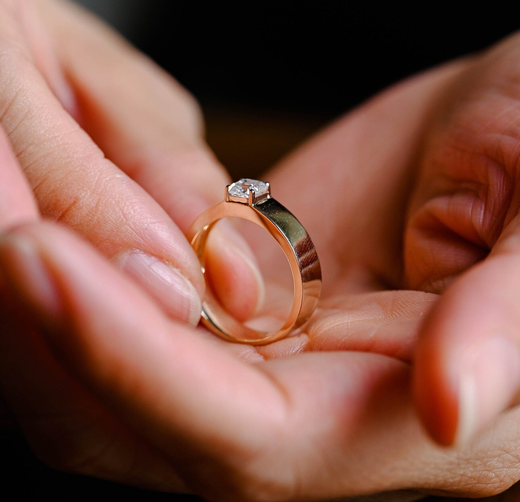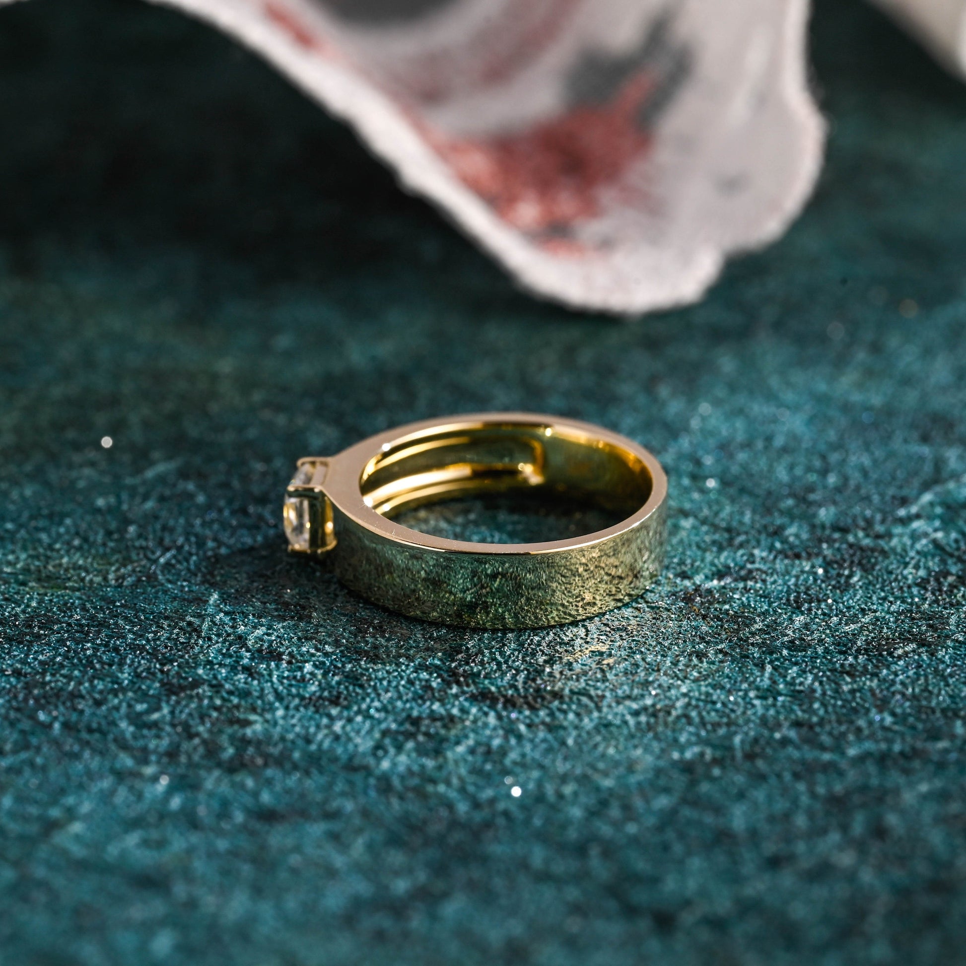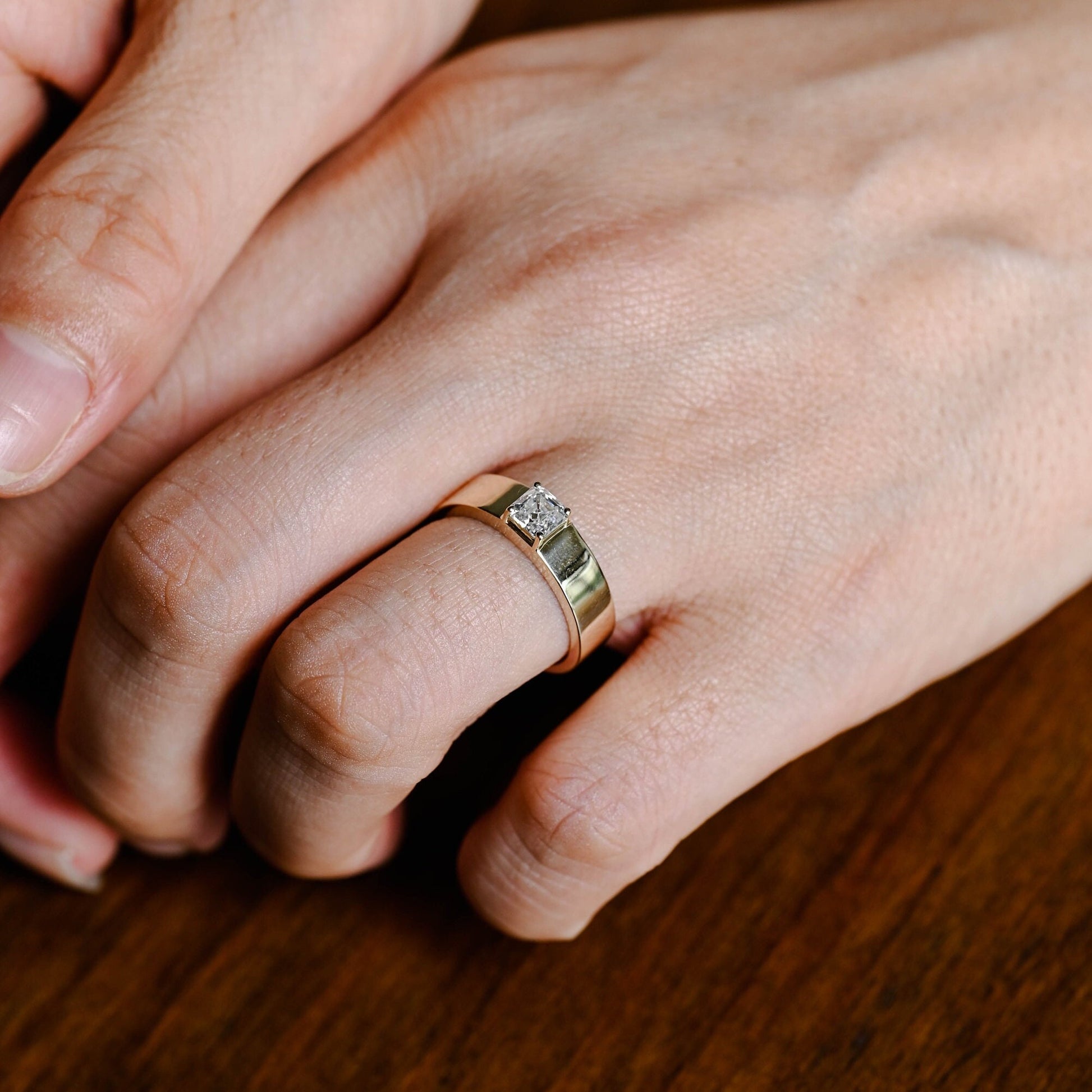5mm Wide Band Ascher Cut Moissanite Ring, Solid Gold Minimalist Engagement Ring, Men's Polished Wedding Band, Β Anniversary Gift for Man