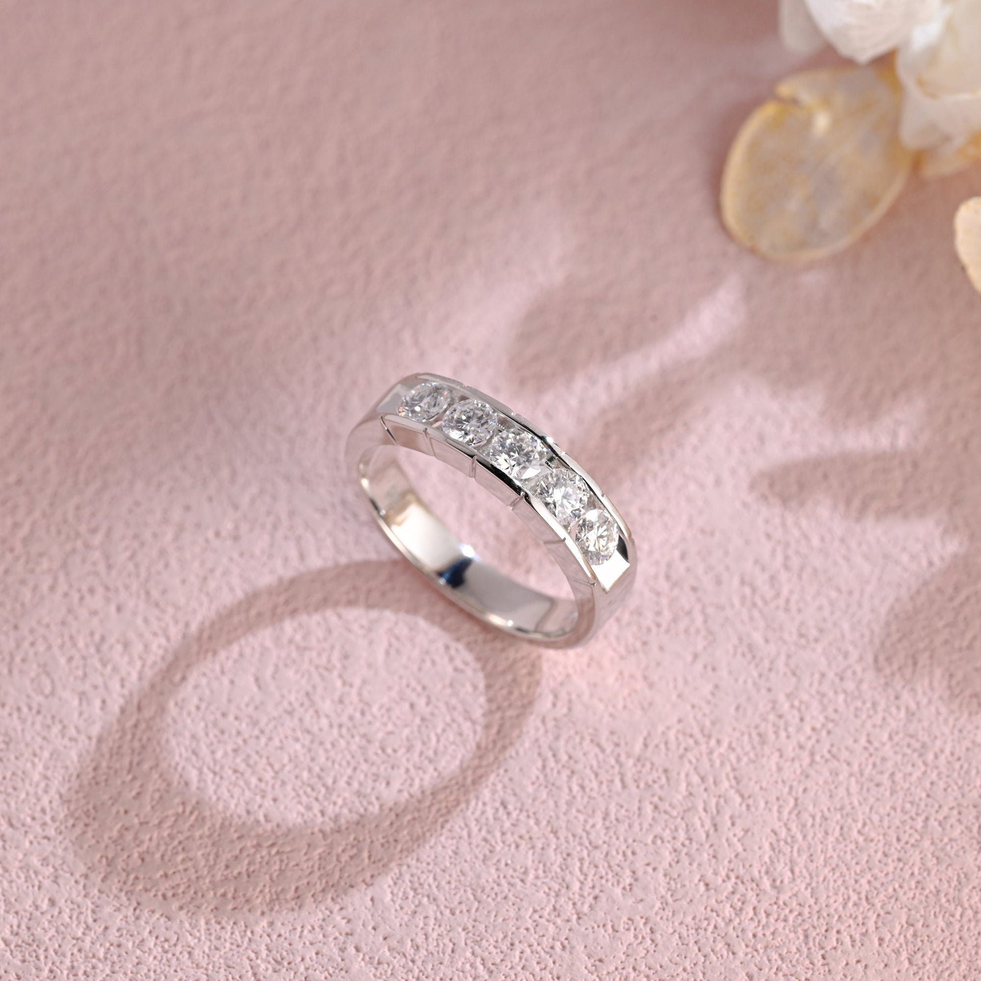 5mm Width Round Moissanite Men's Wedding Ring