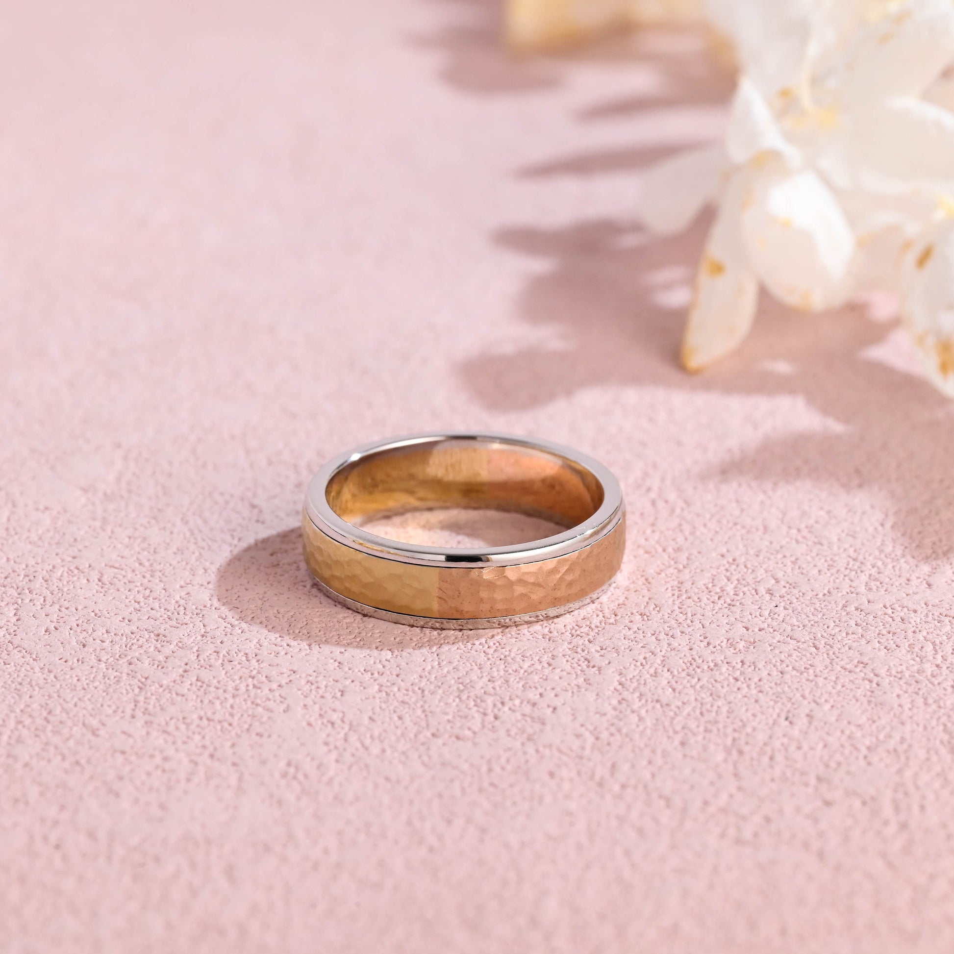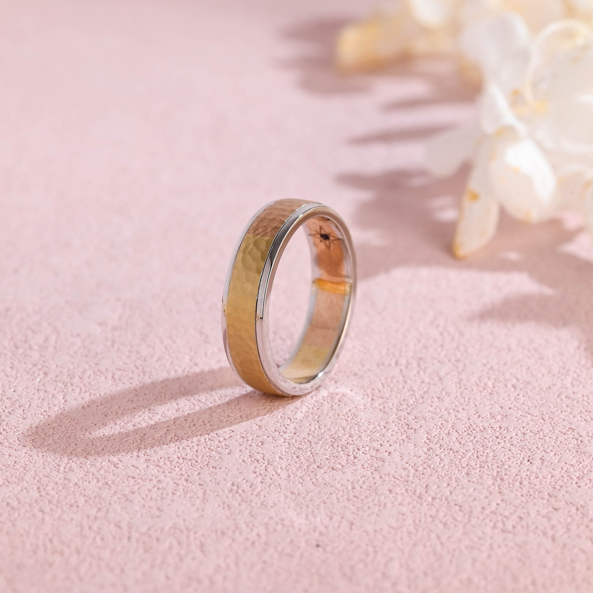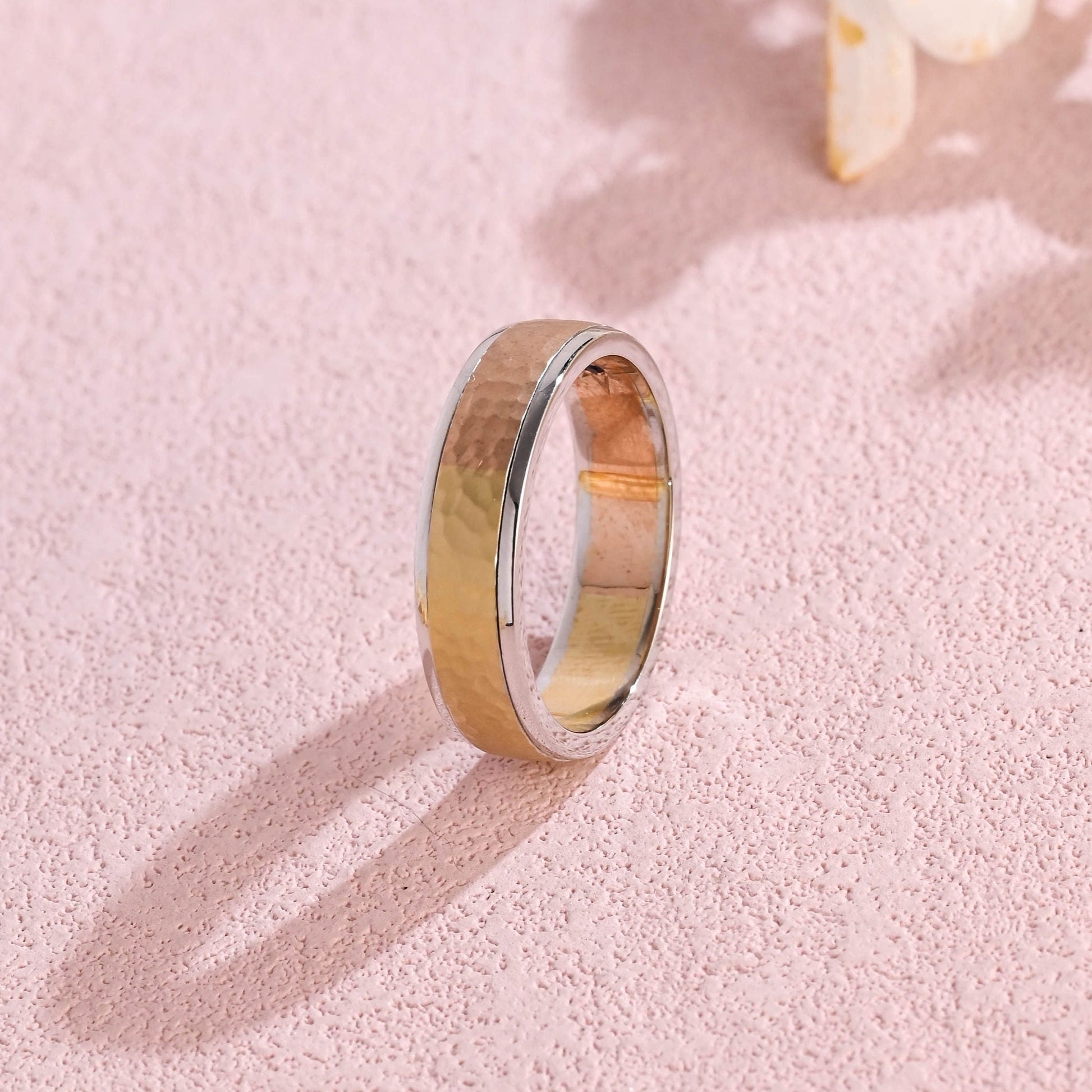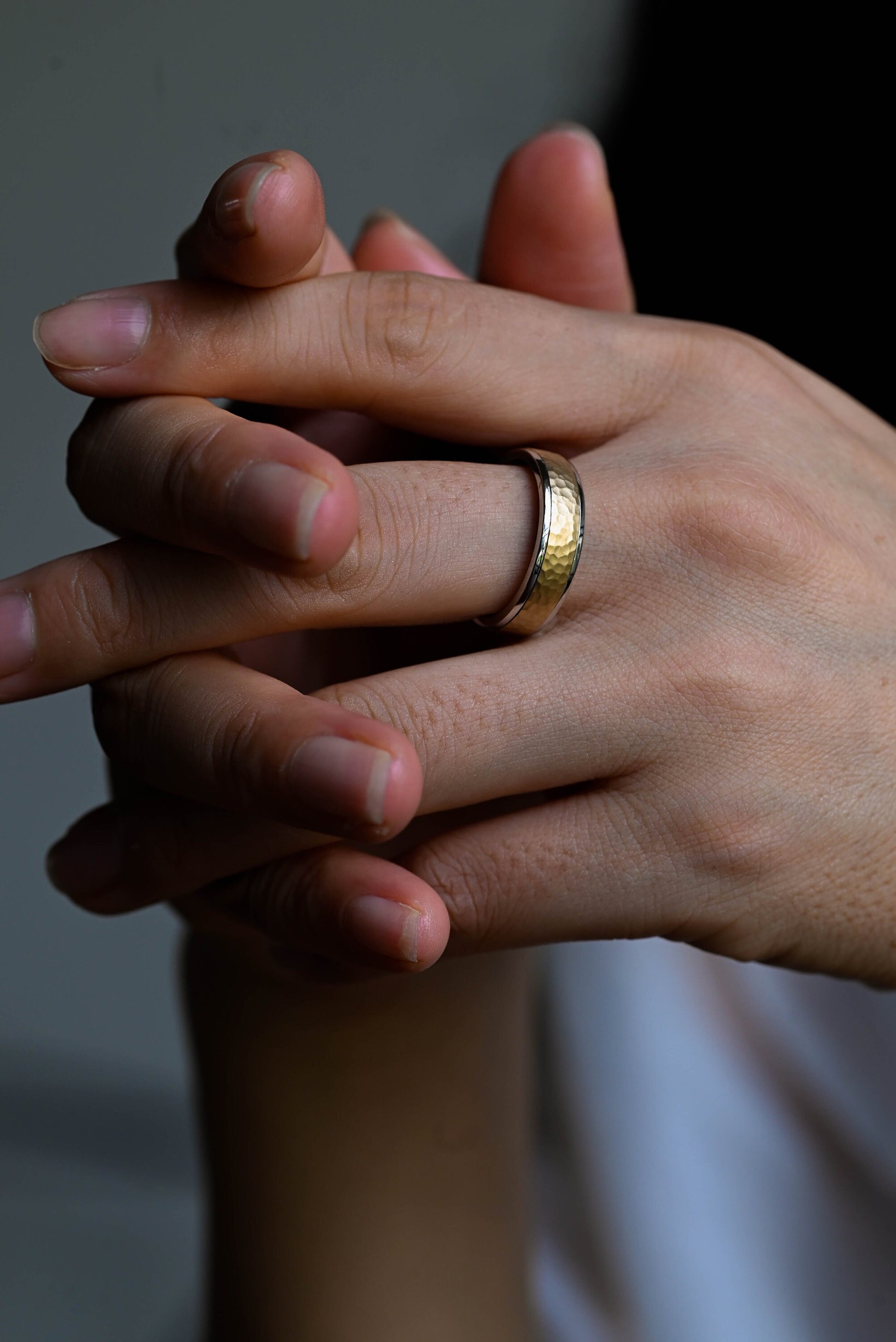 6mm Hammered Ring Men,9K 14K 18K Solid Gold Hammered Wedding Band, Plain Simple Wedding Band Ring Hammered Ring Thick Band Toned, Gift for Men