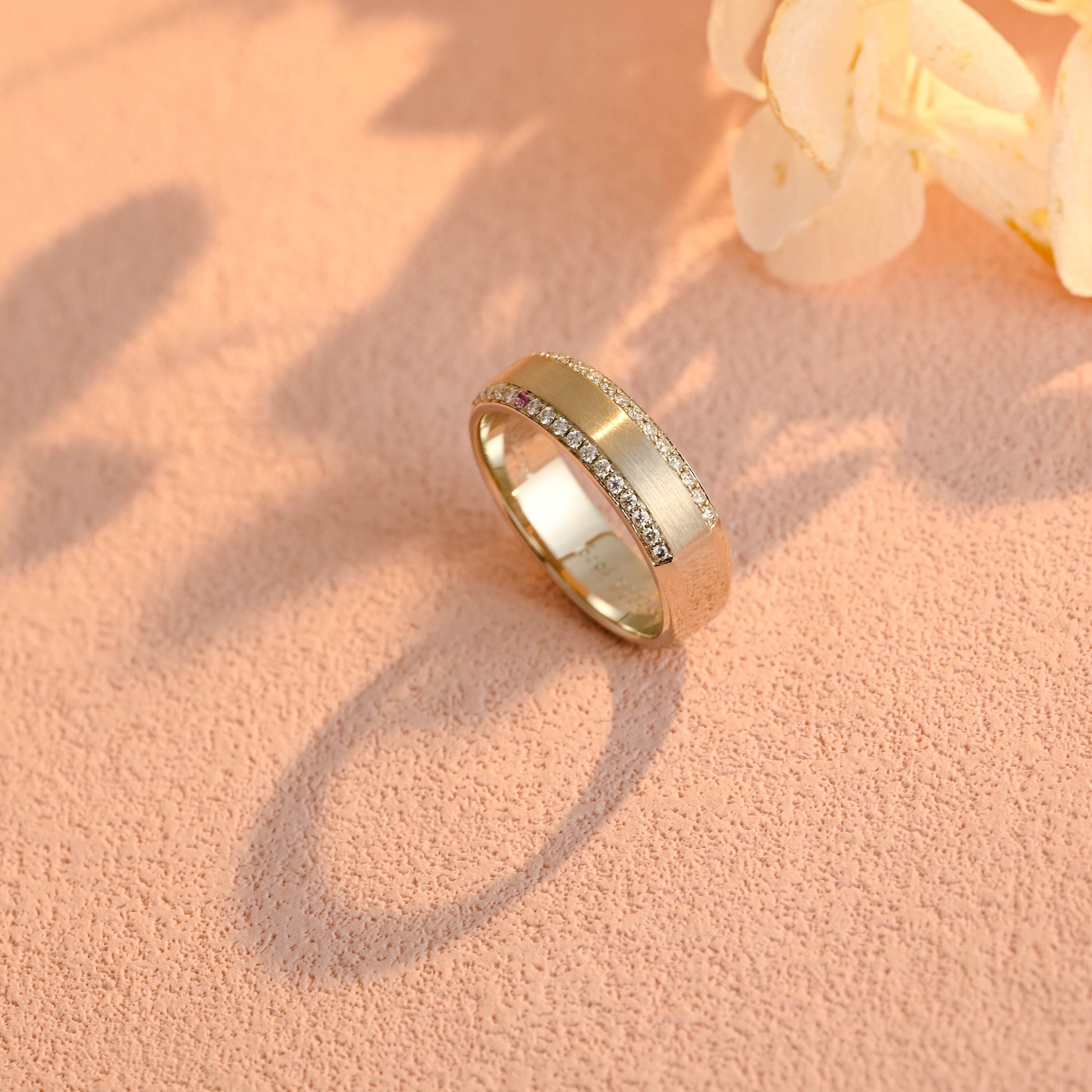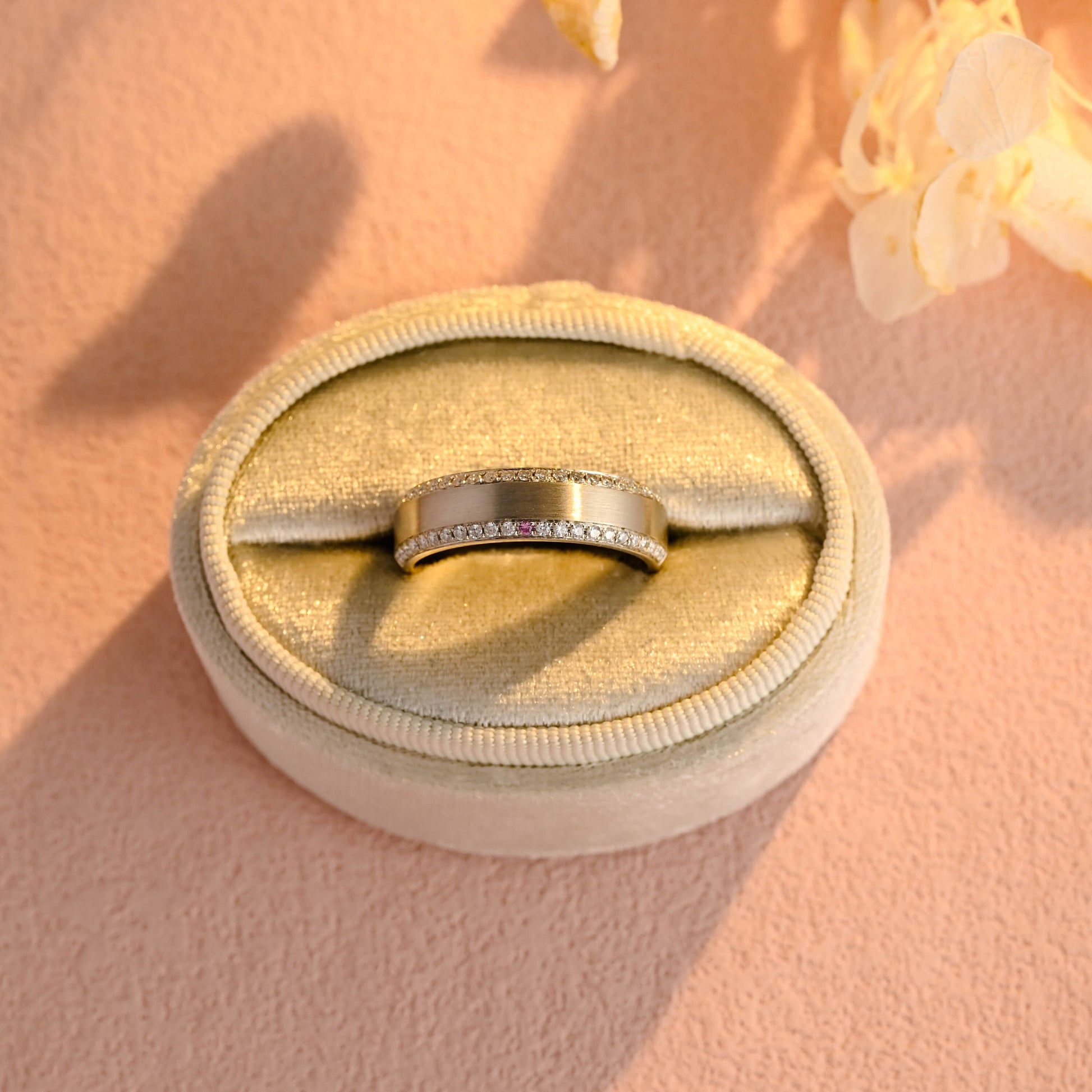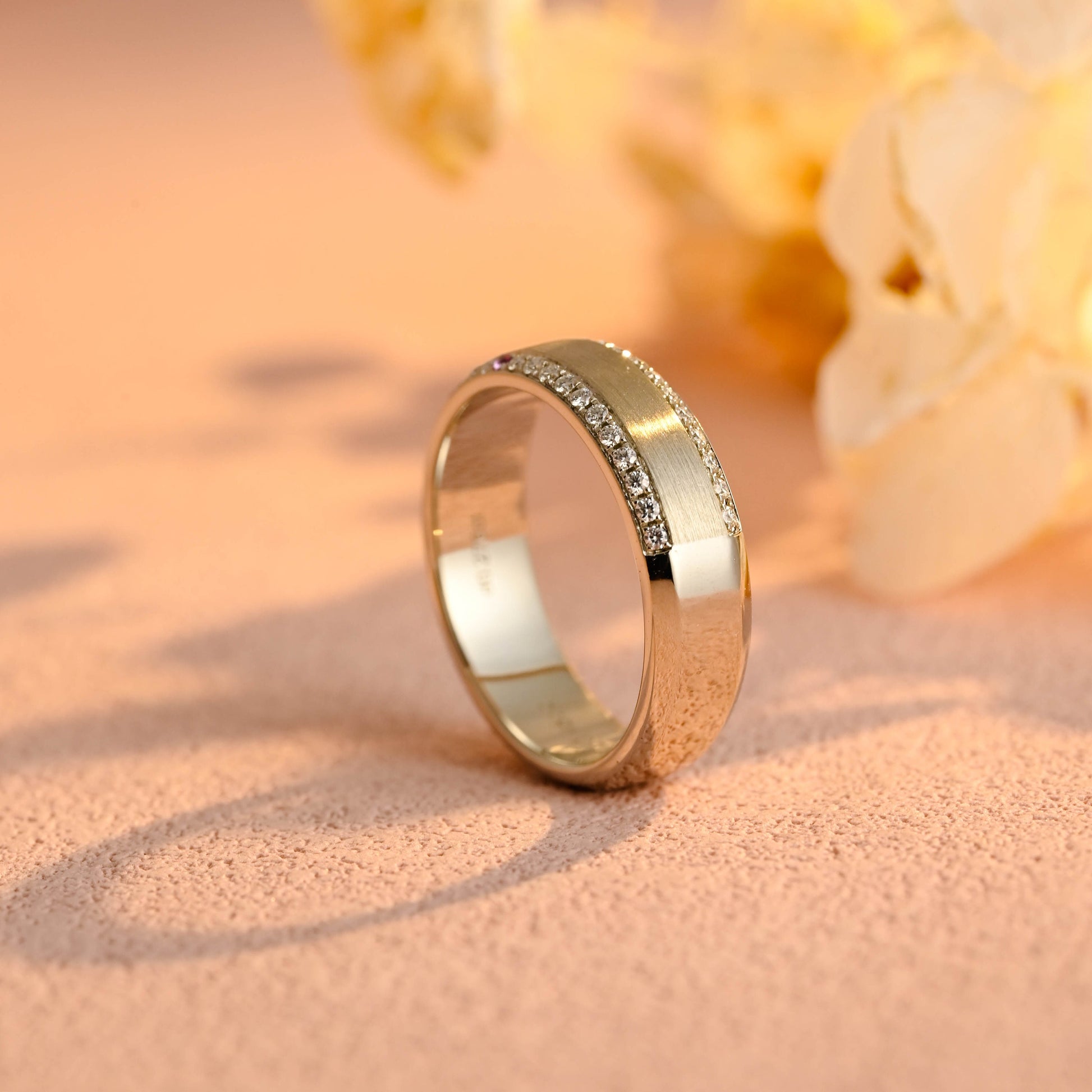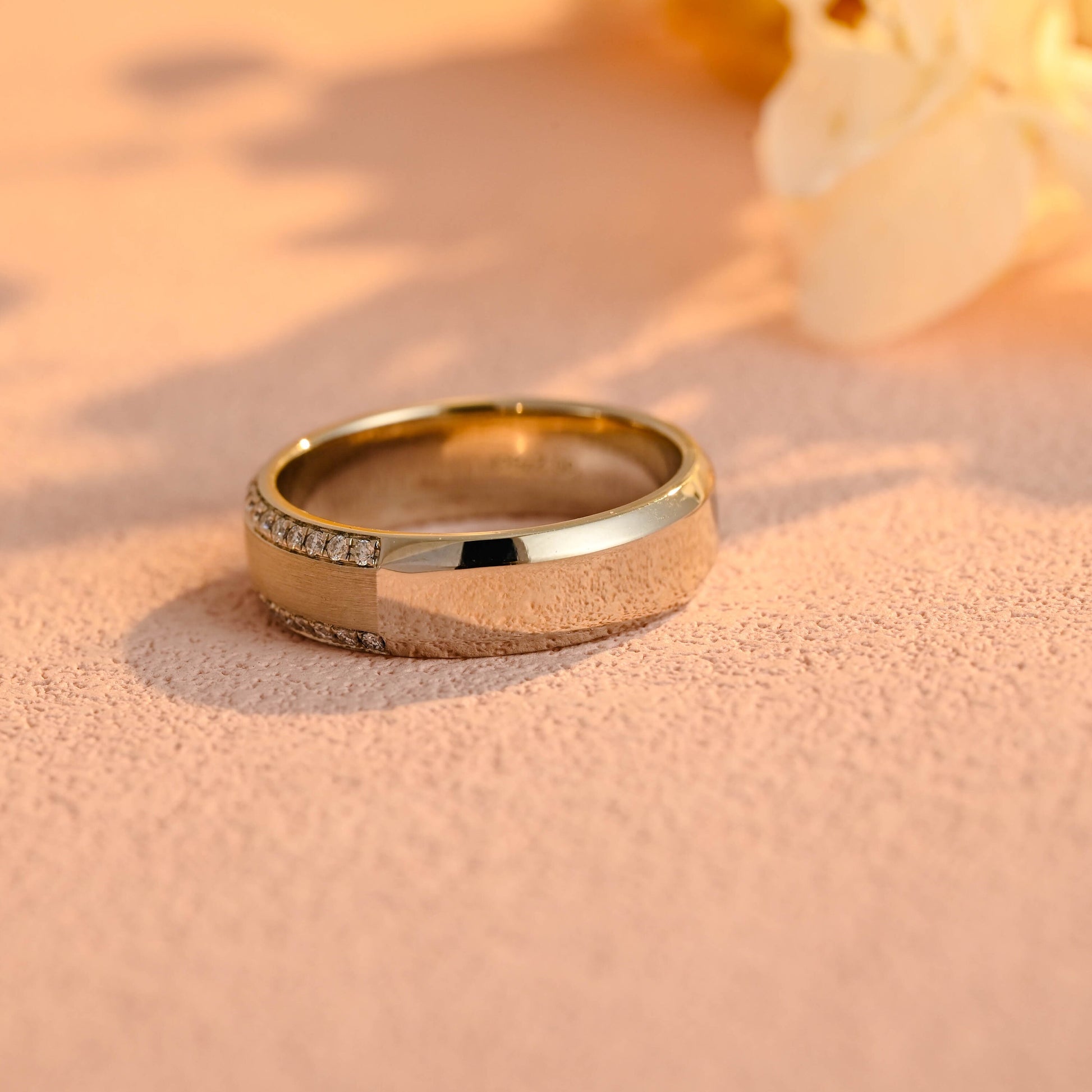 6mm Width Round Moissanite Gold Half Polish Half Brush Wedding Band for Men