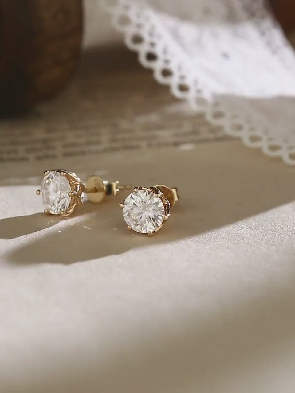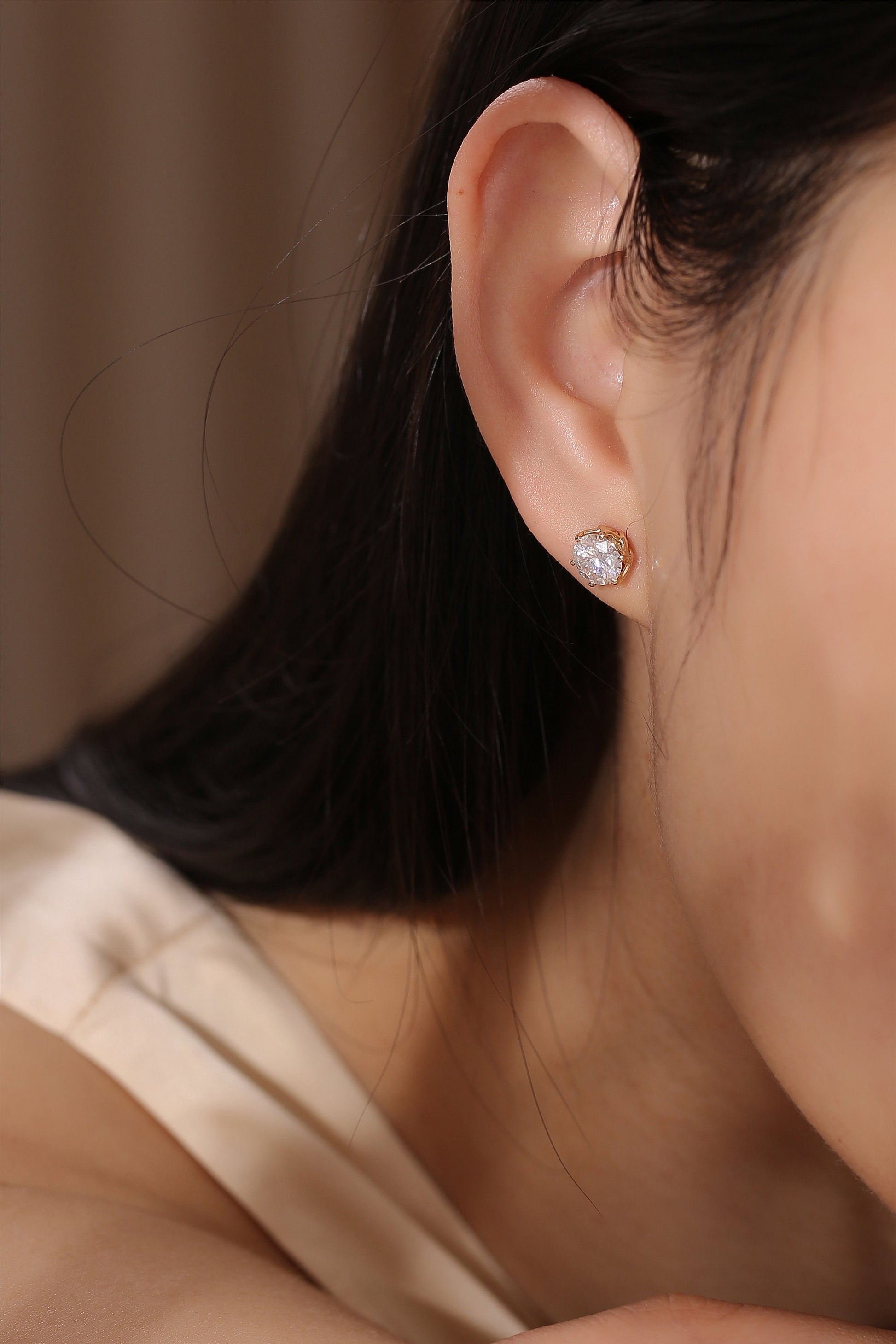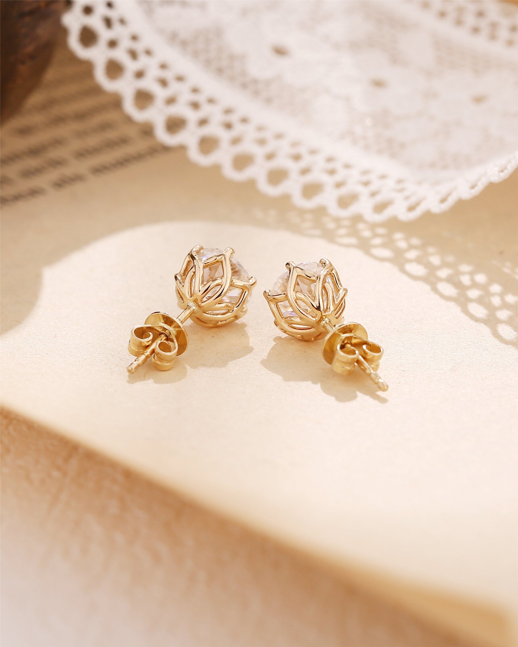 9K/14K/18K Round Cut Moissanite Earrings Stud/Gemstone Studs/Classic 6 Prongs Earrings Stud