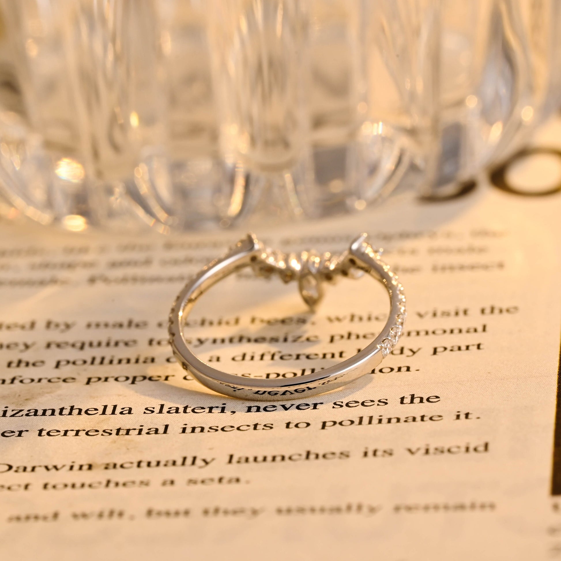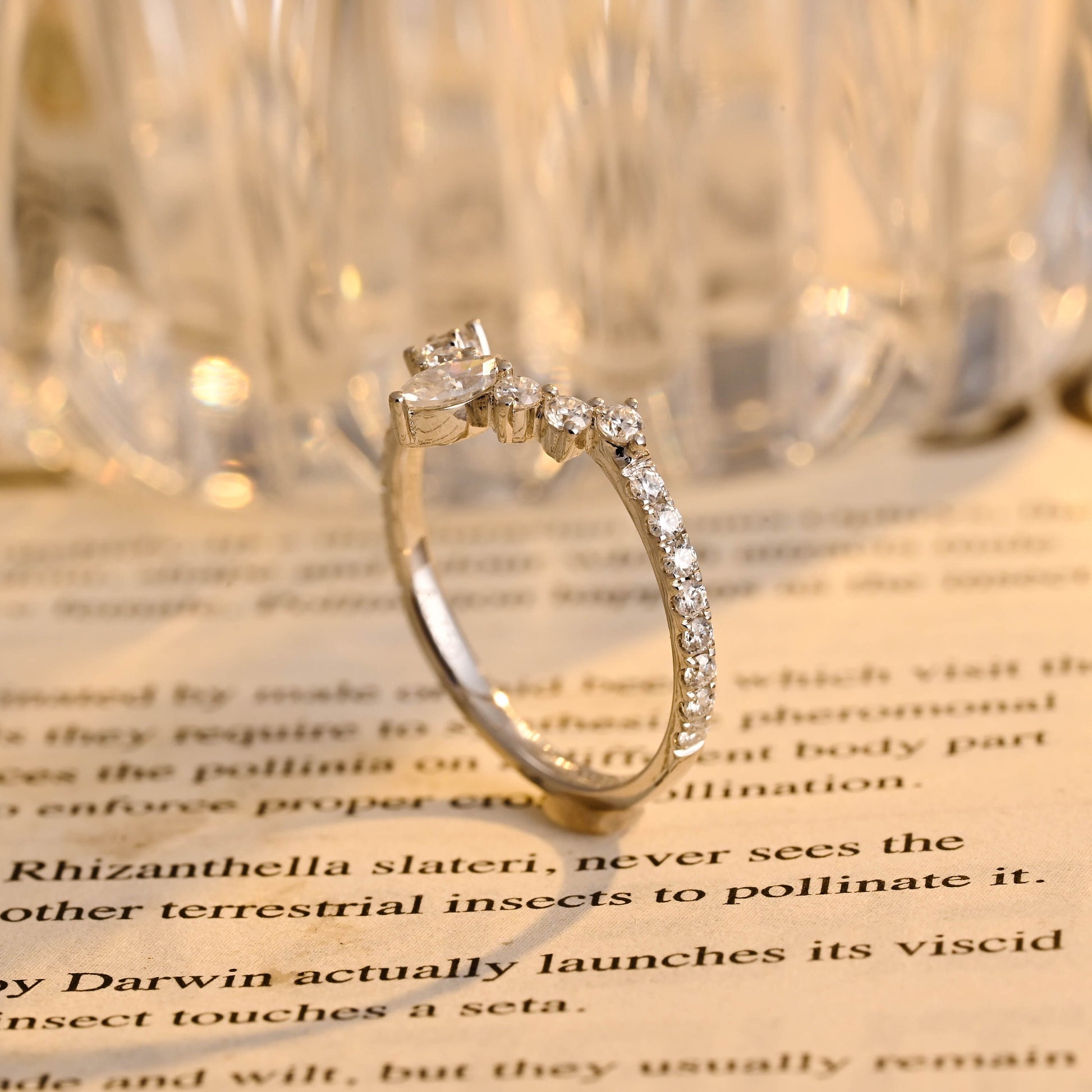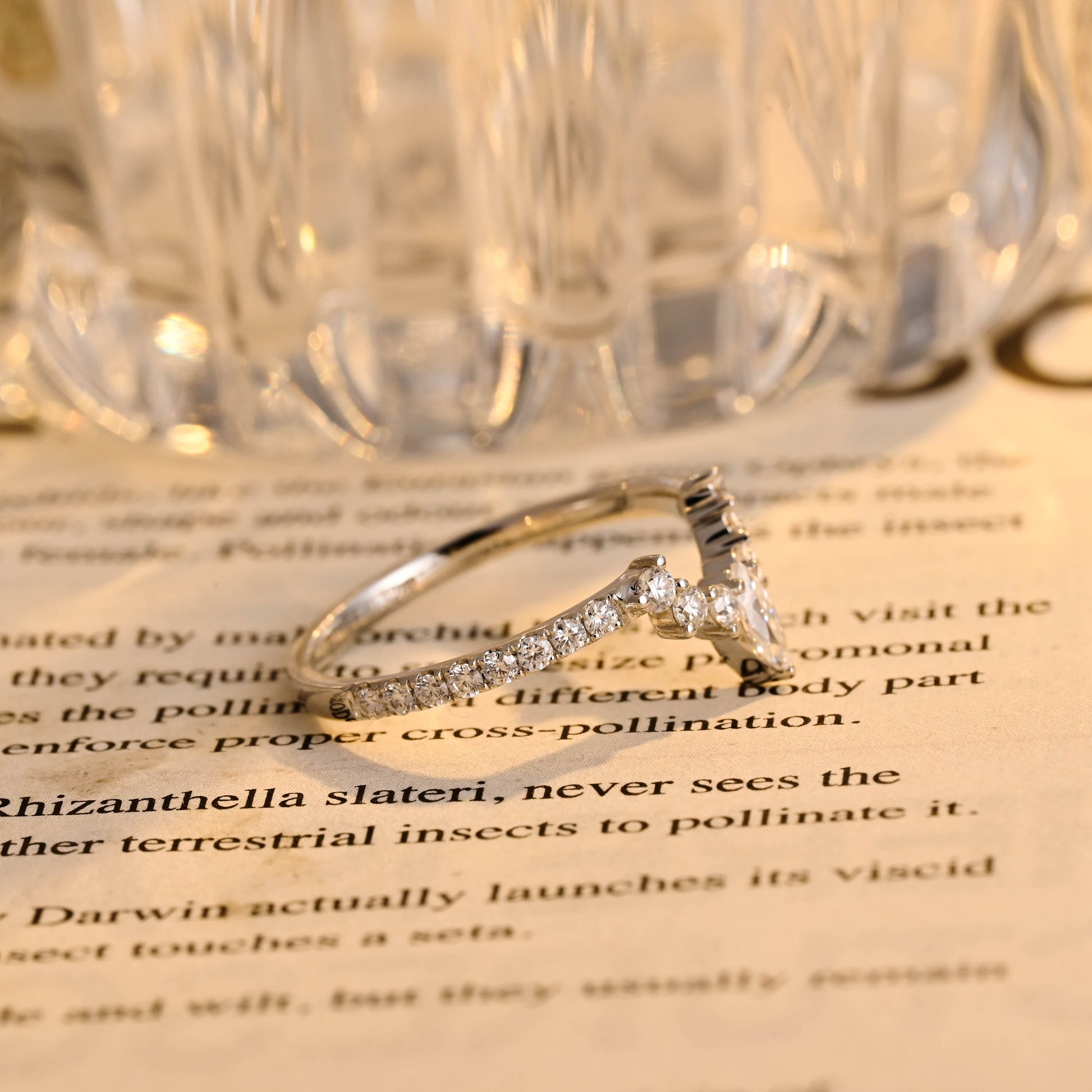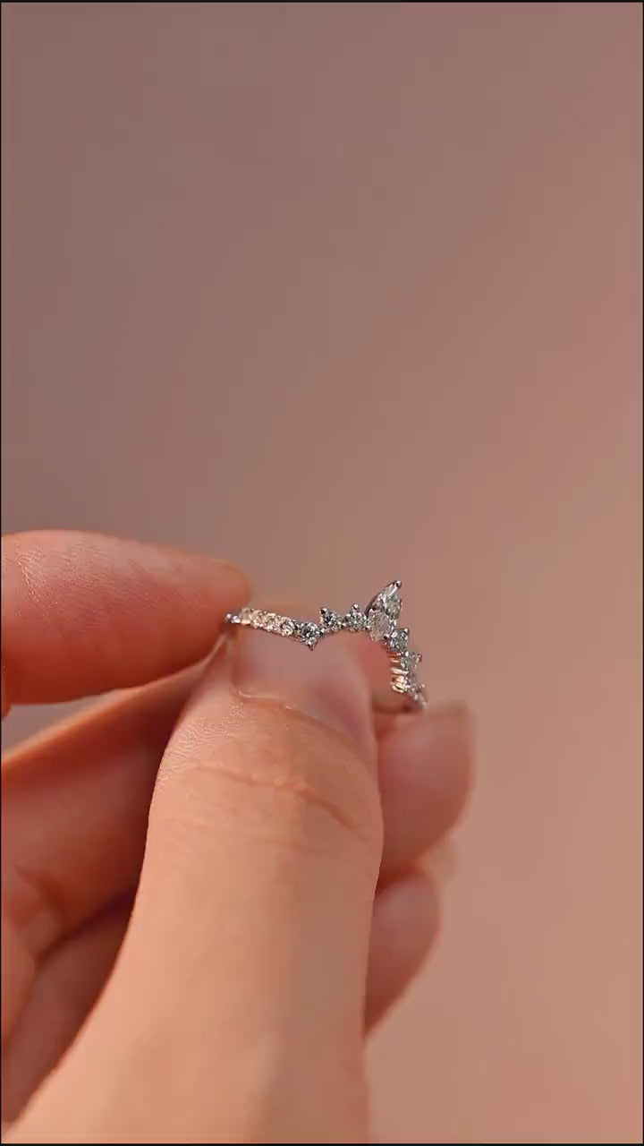9K/14K/18K Solid Gold, 1.8mm Half Eternity Marquise/Round Cut Moissanite Engagement Crown/Queen Wedding Band, Curved Bridal Matching Band