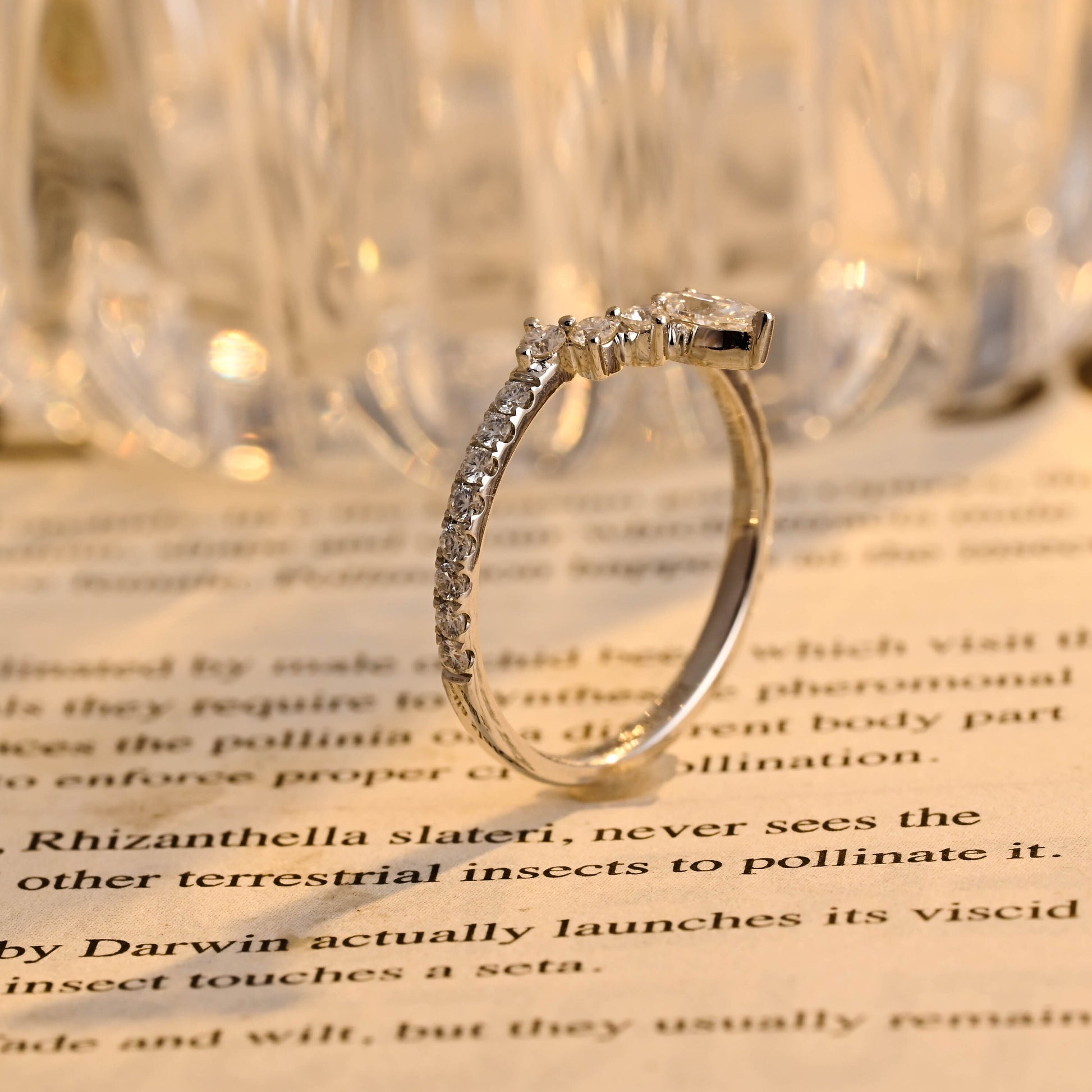 Solid Gold, 1.8mm Half Eternity Marquise, Round Cut Moissanite Engagement Crown