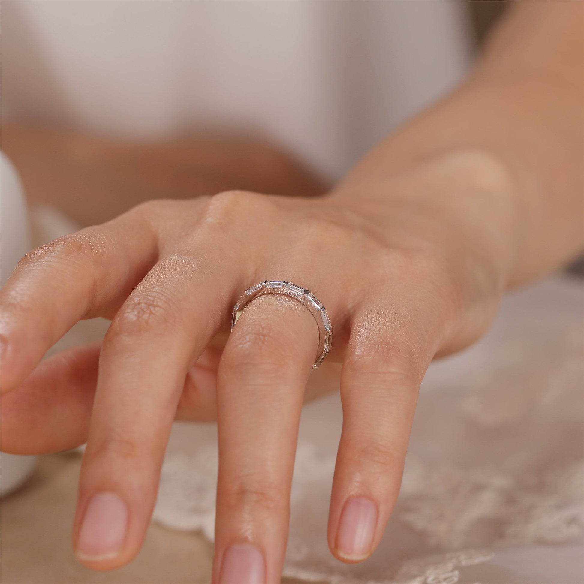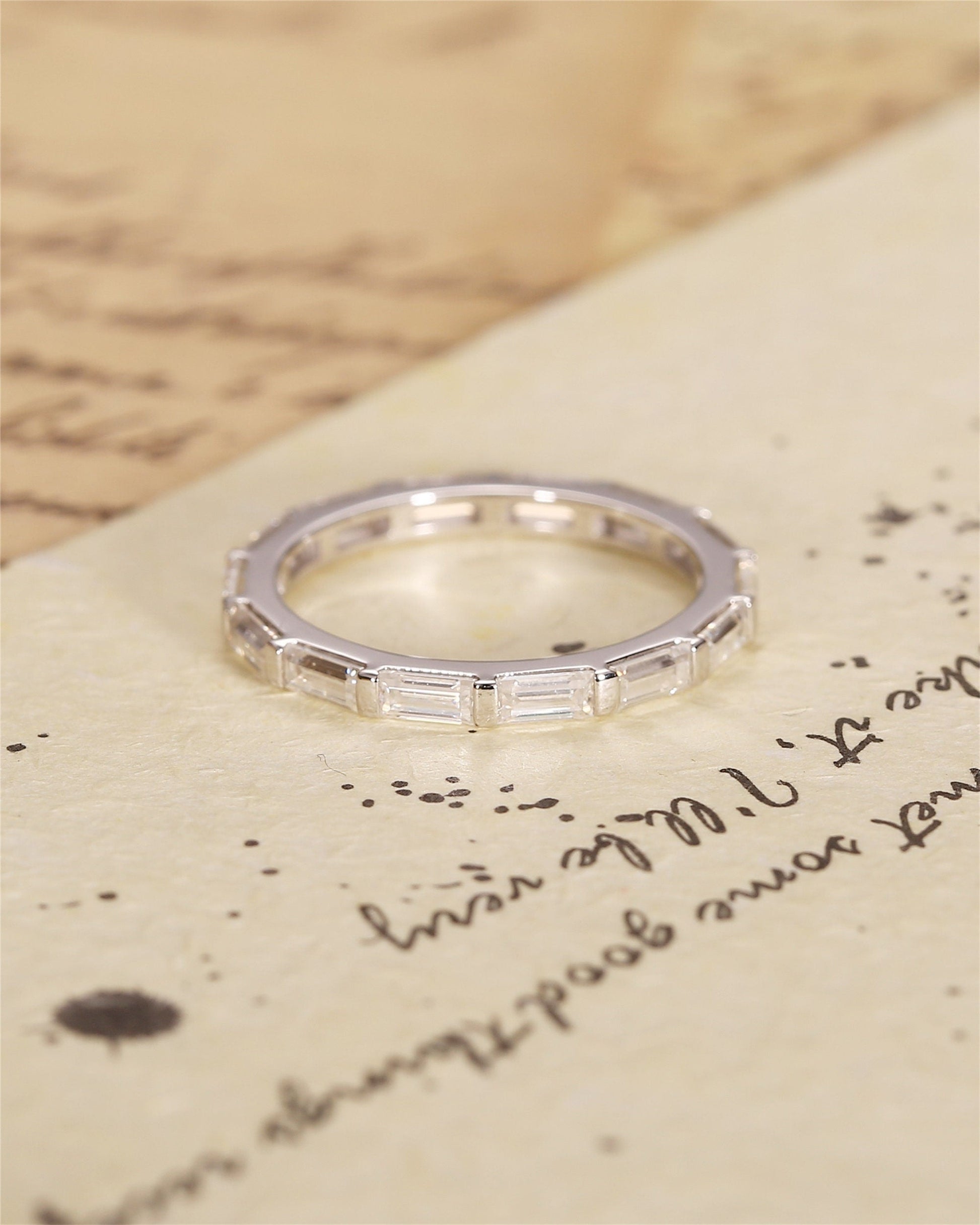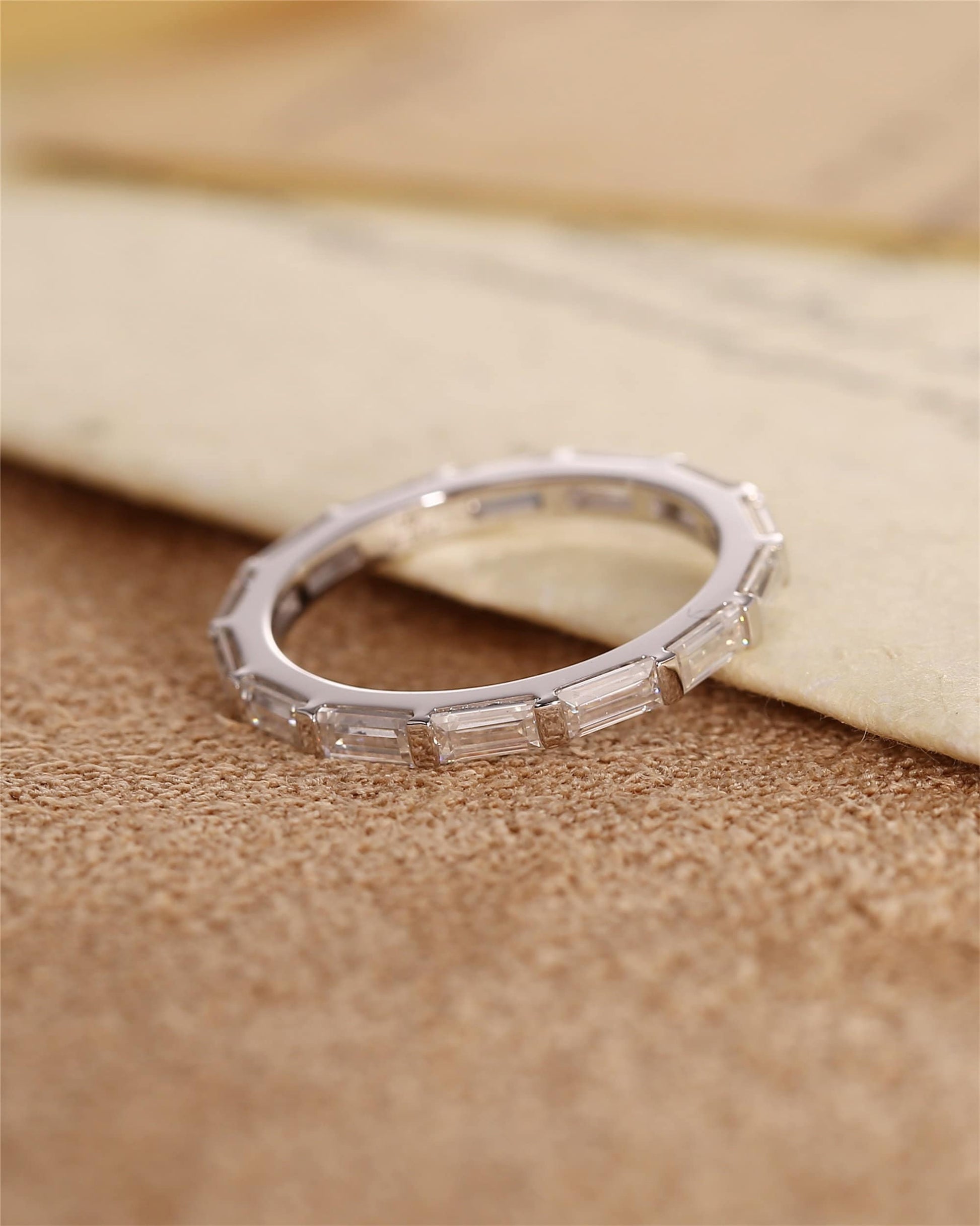 Solid Gold Baguette Full Eternity Moissanite Stacking Band