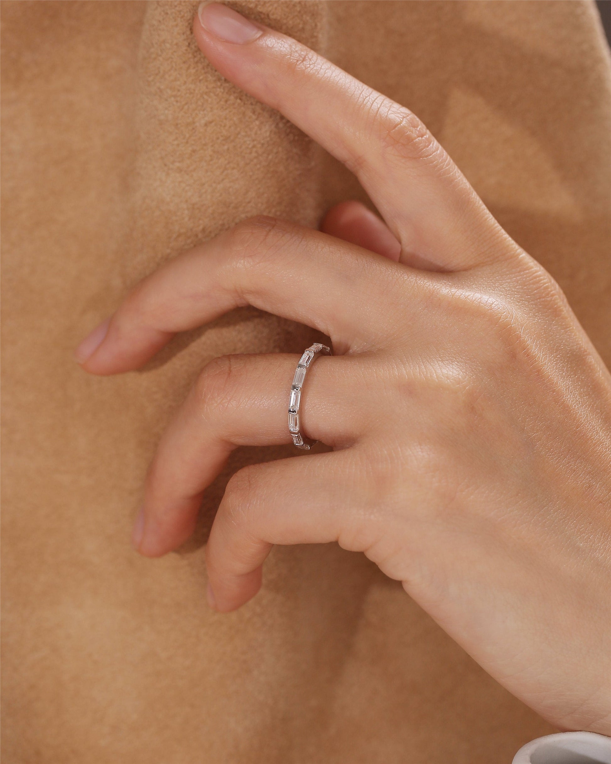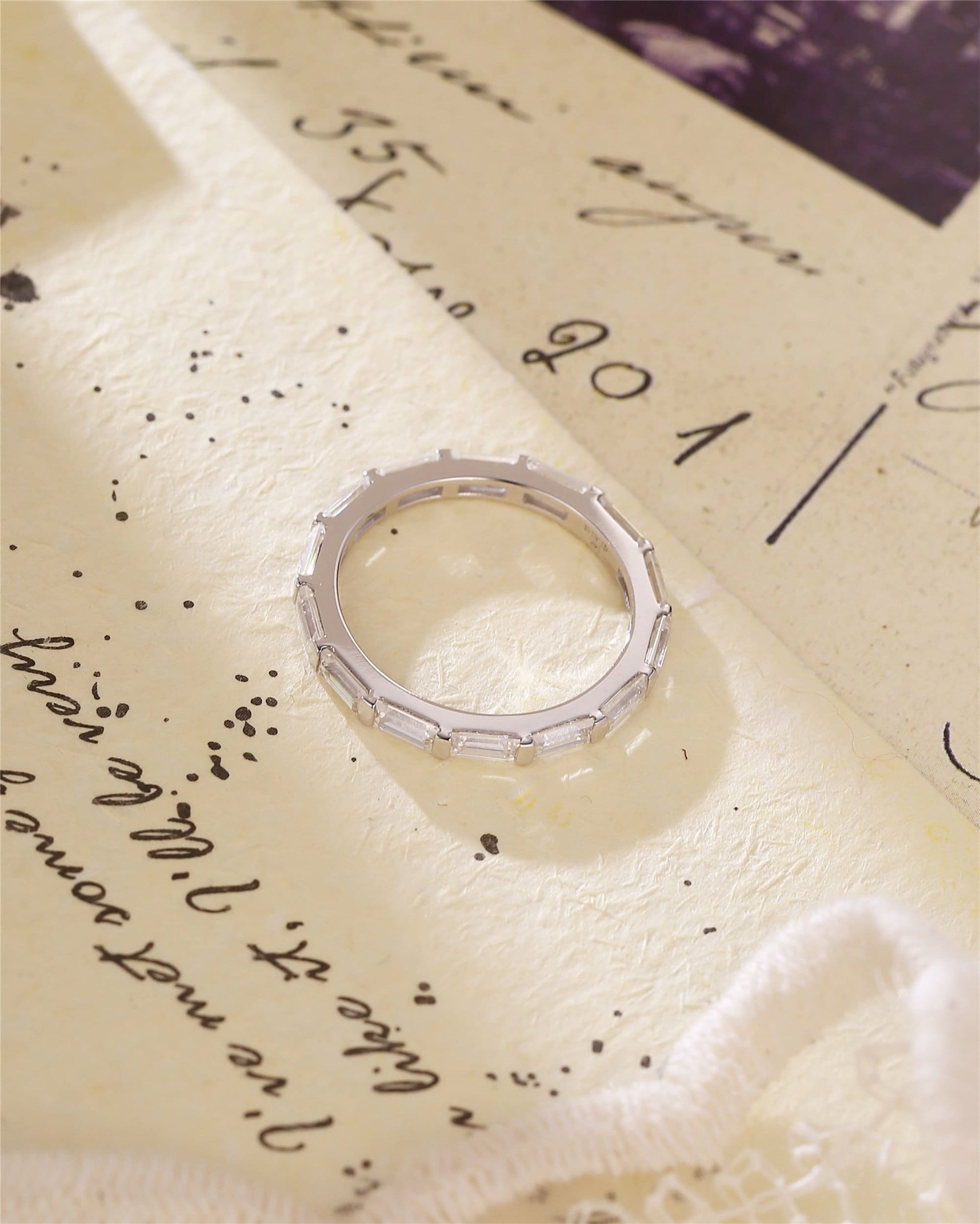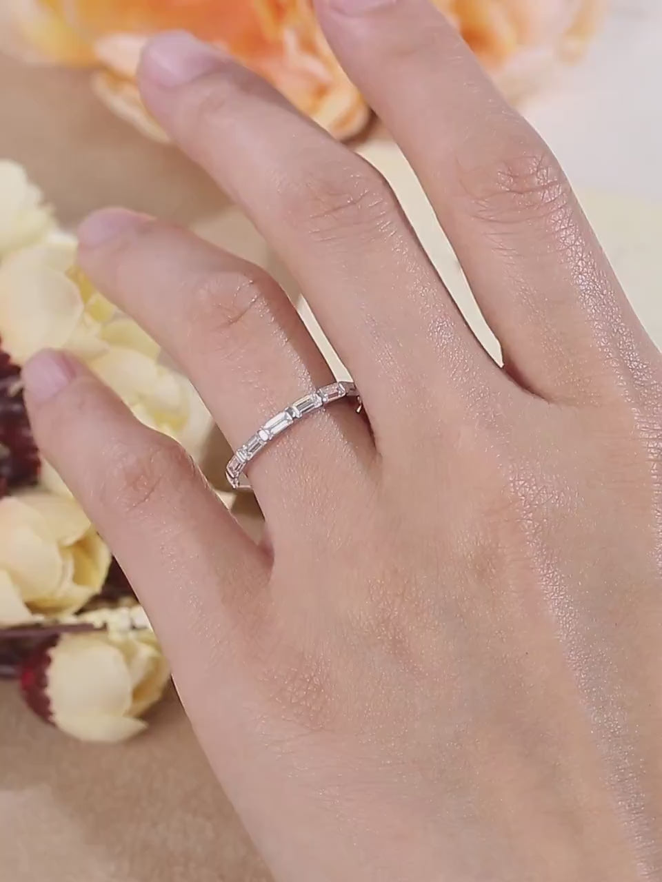 Solid Gold Baguette Full Eternity Moissanite Stacking Band