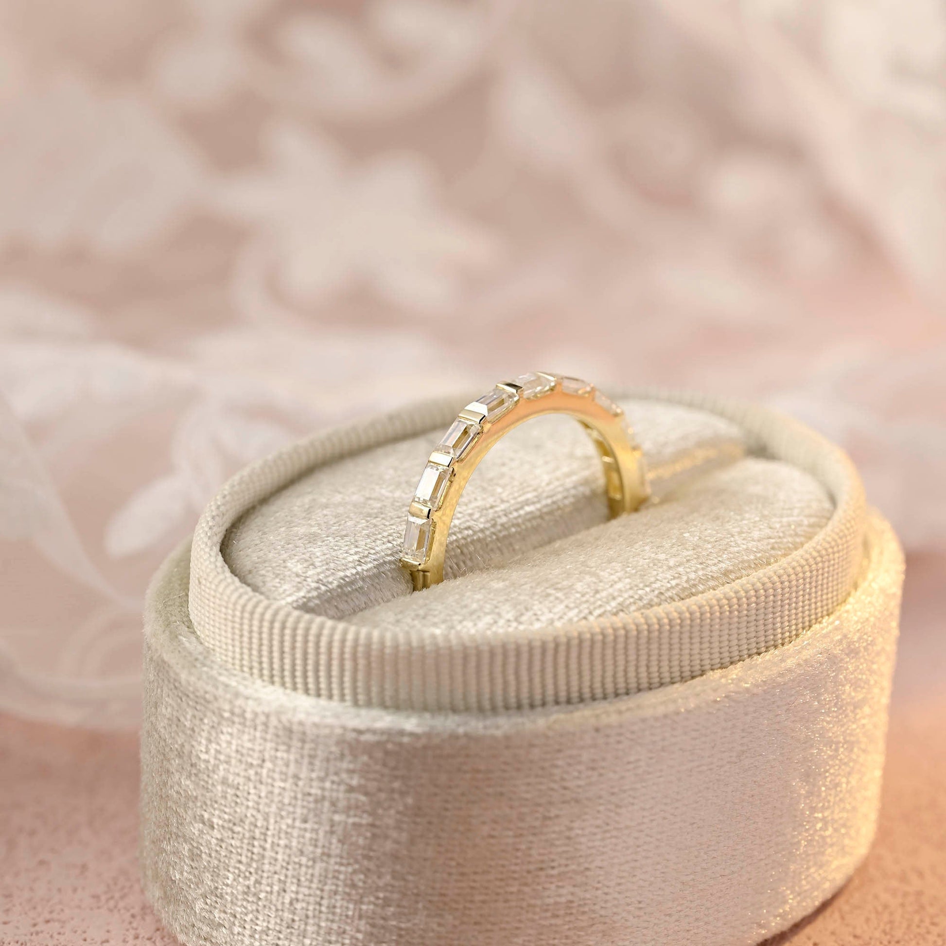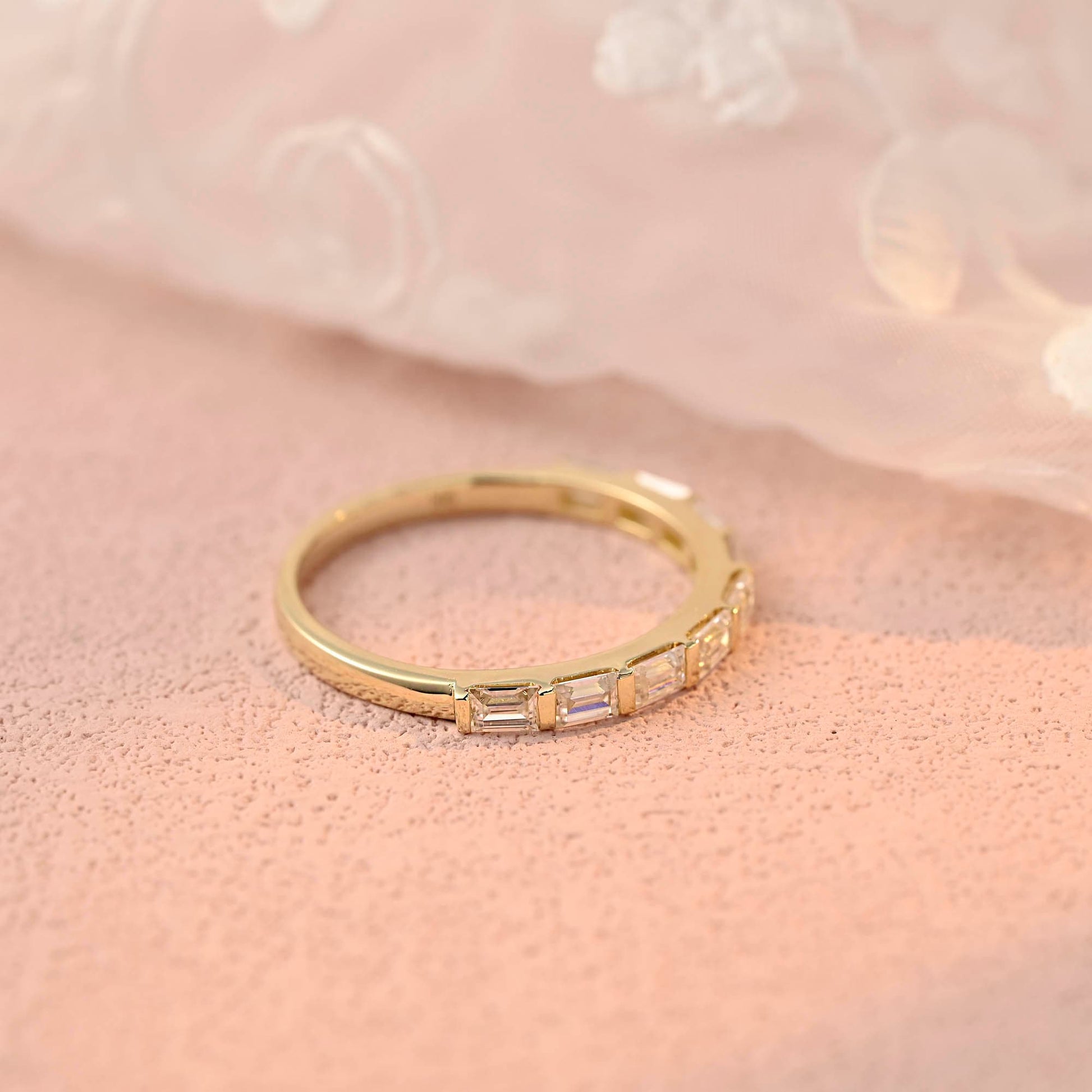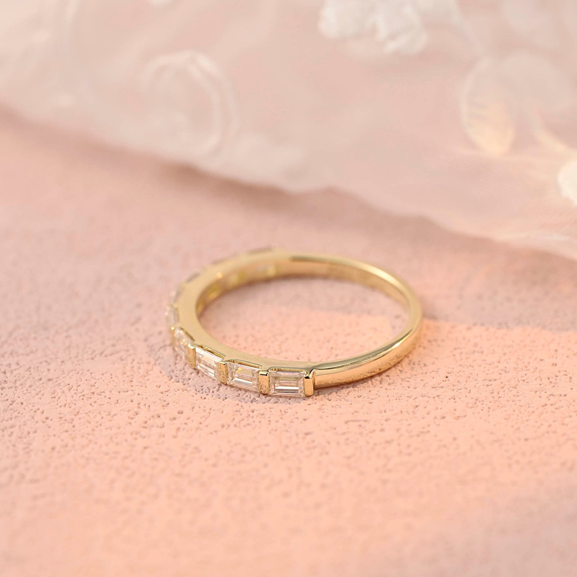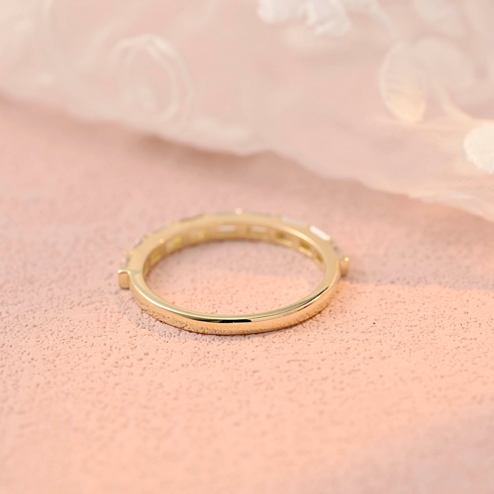 Solid Gold Baguette Moissanite Half Eternity Moissanite Stacking Band
