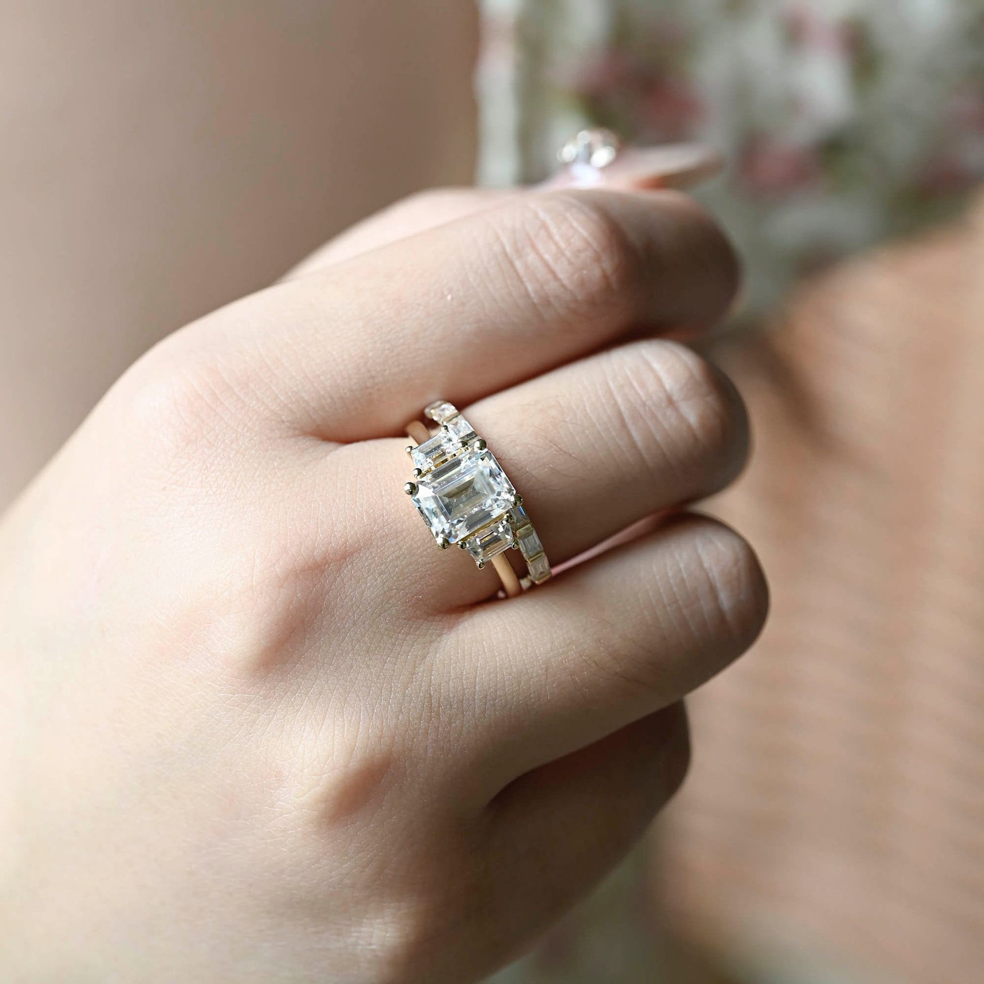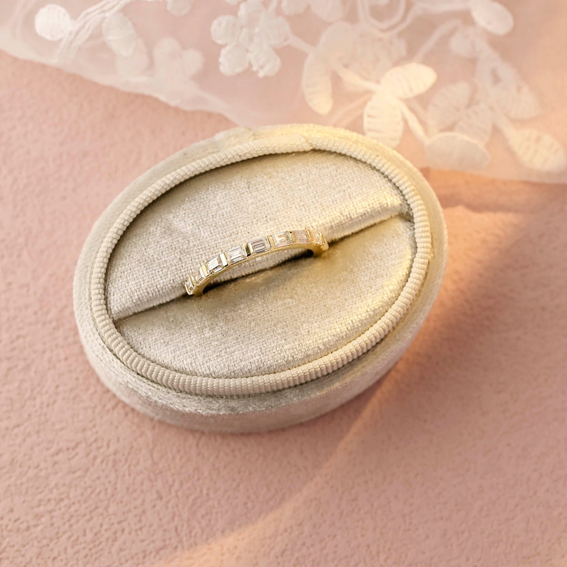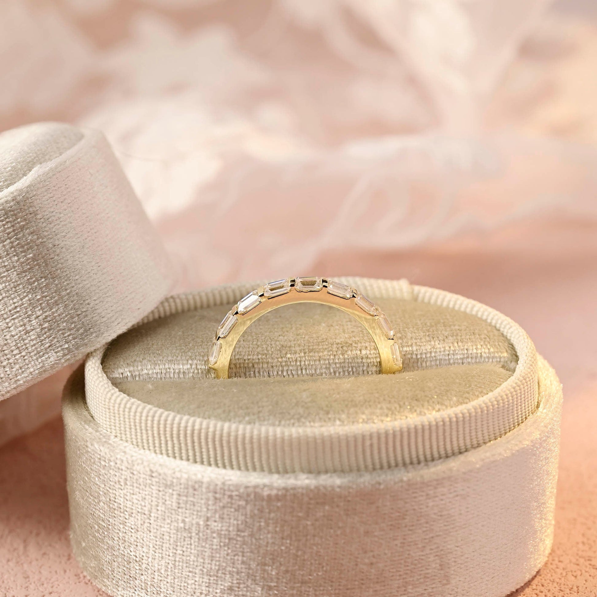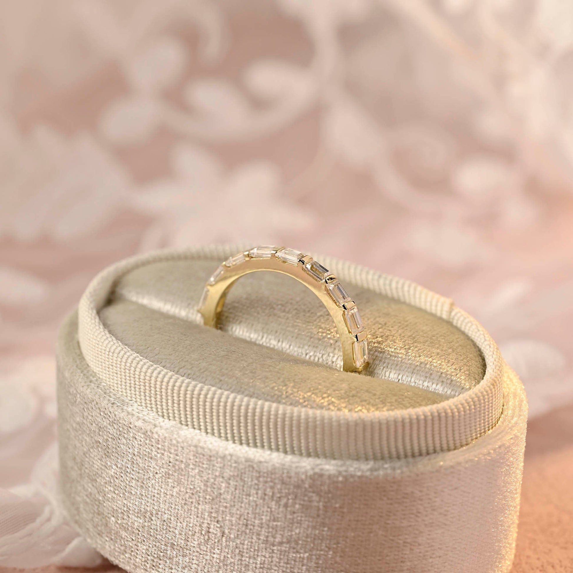 Solid Gold Baguette Moissanite Half Eternity Moissanite Stacking Band