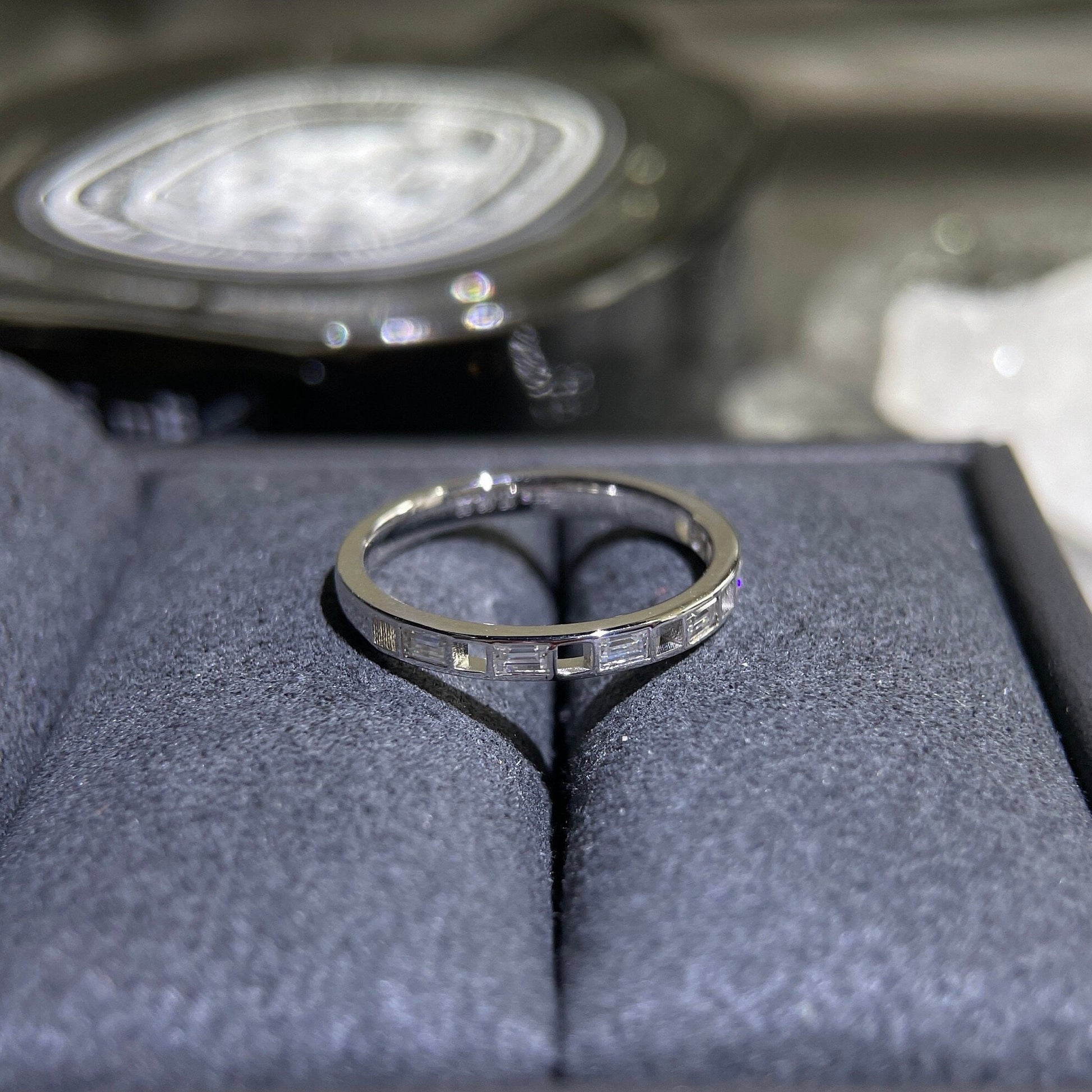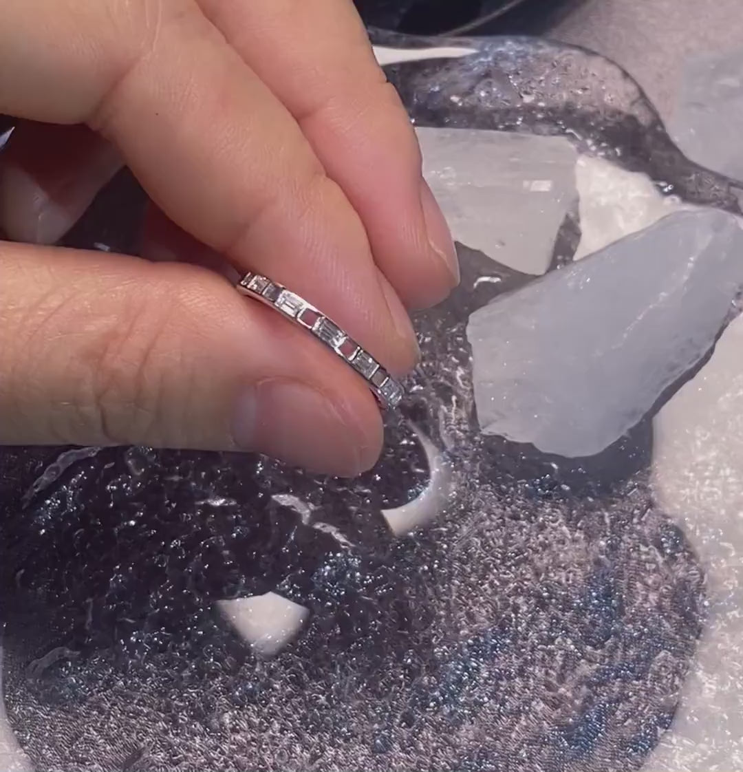 9K/14K/18K Solid Gold Baguette Moissanite Wedding Band/Half Eternity Wedding Band/Stacking Band/Unique Minimalist Art Deco Bridal Band Gift