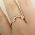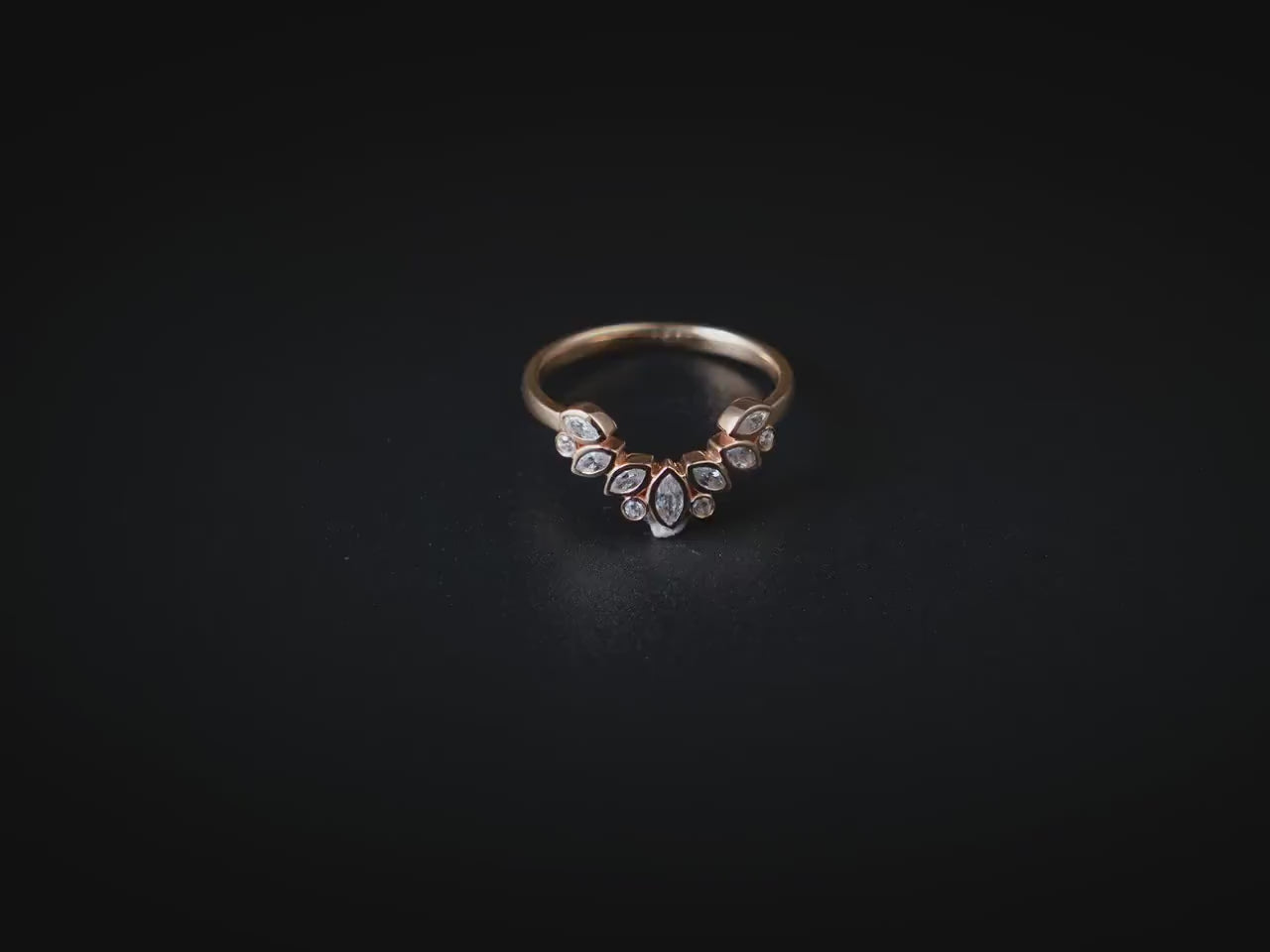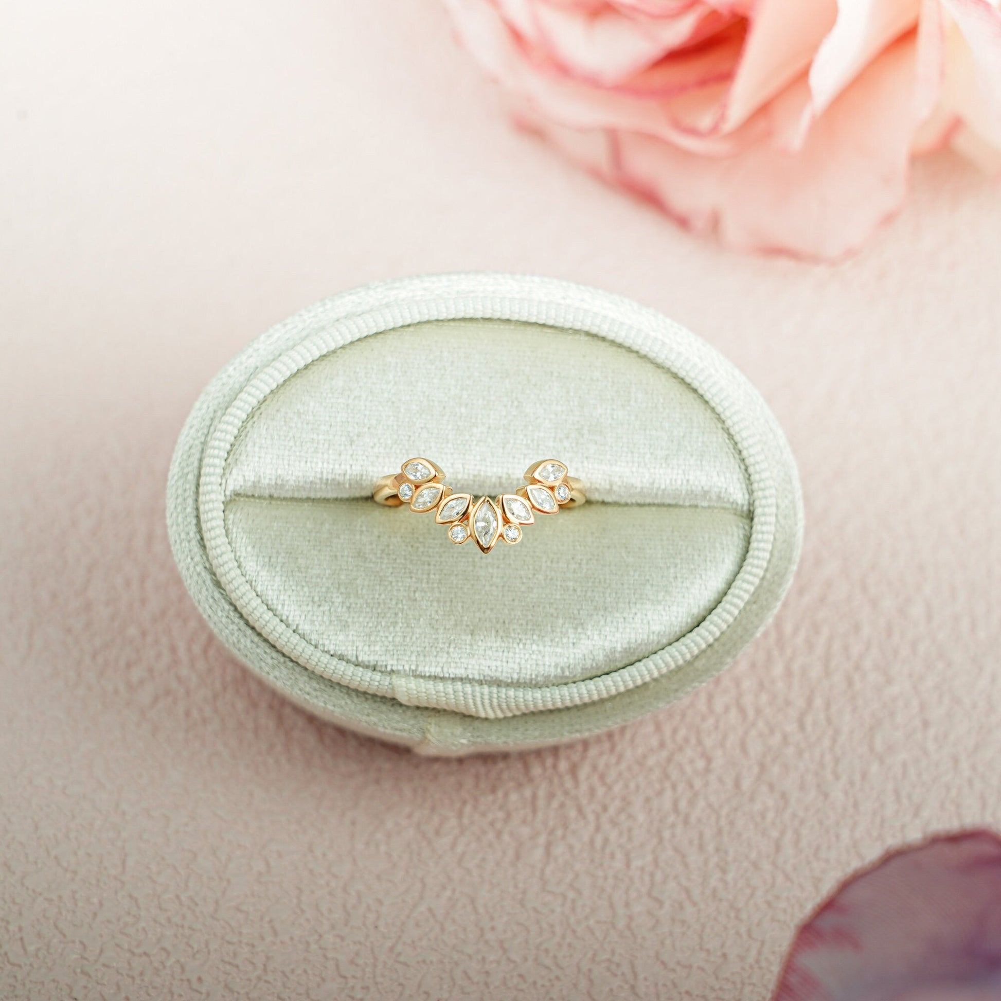 Solid Gold Marquise Round Cut Moissanite Curved Wedding Band