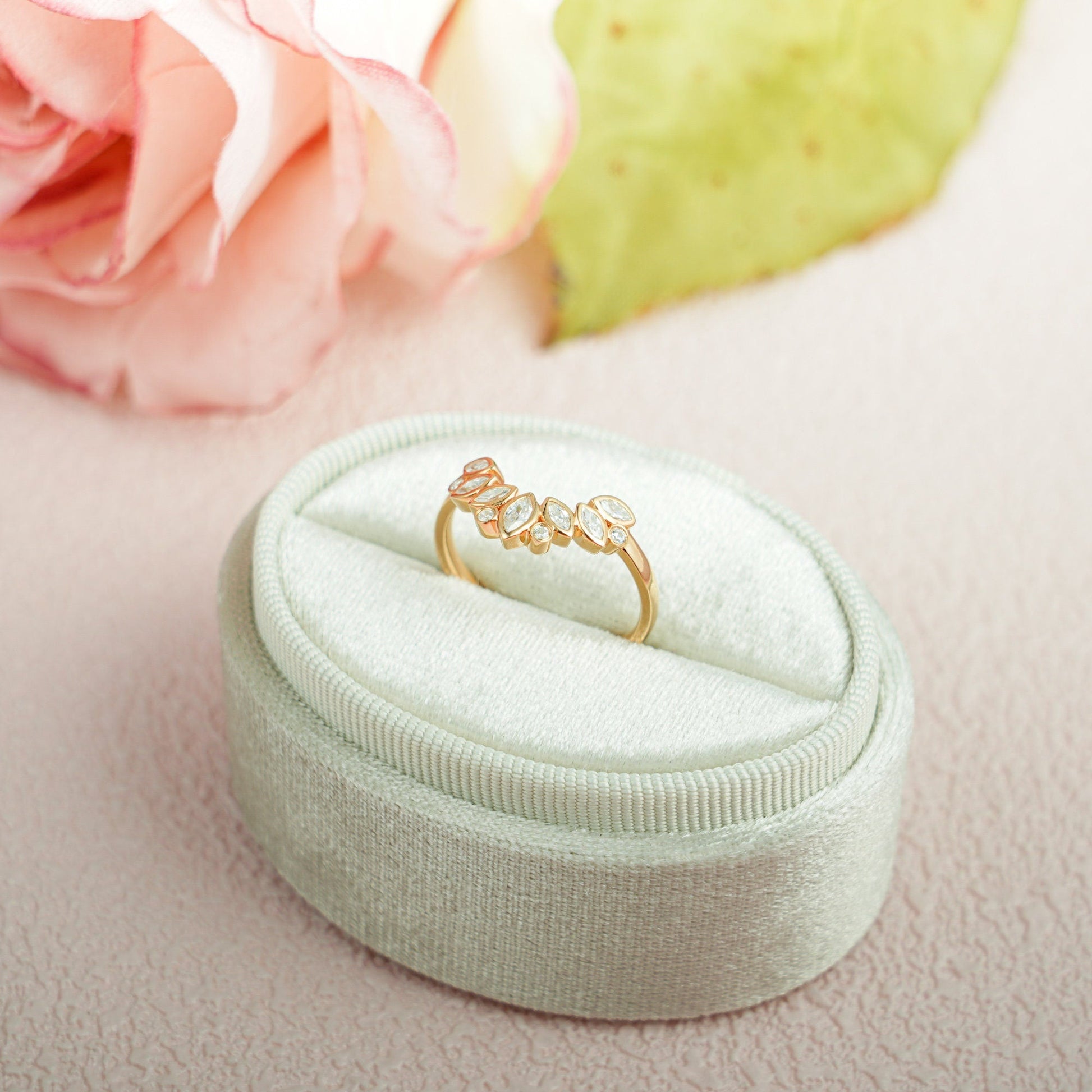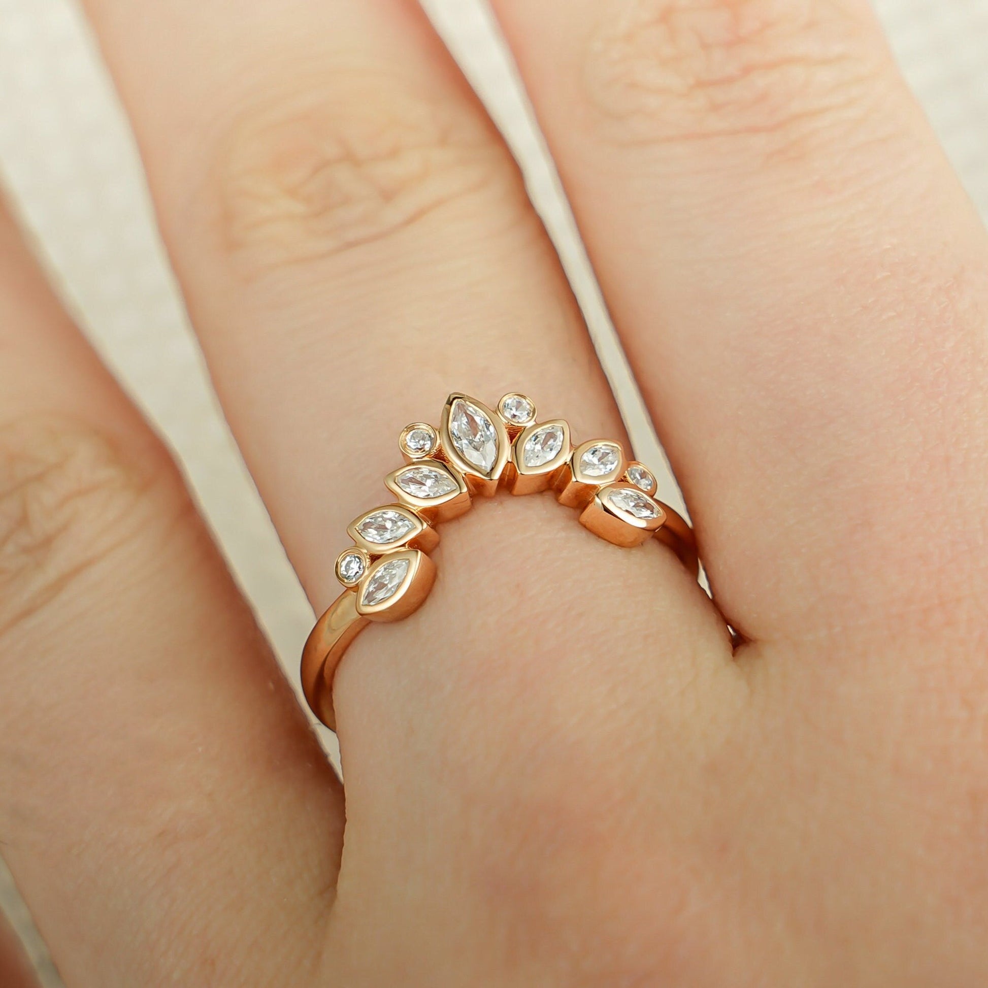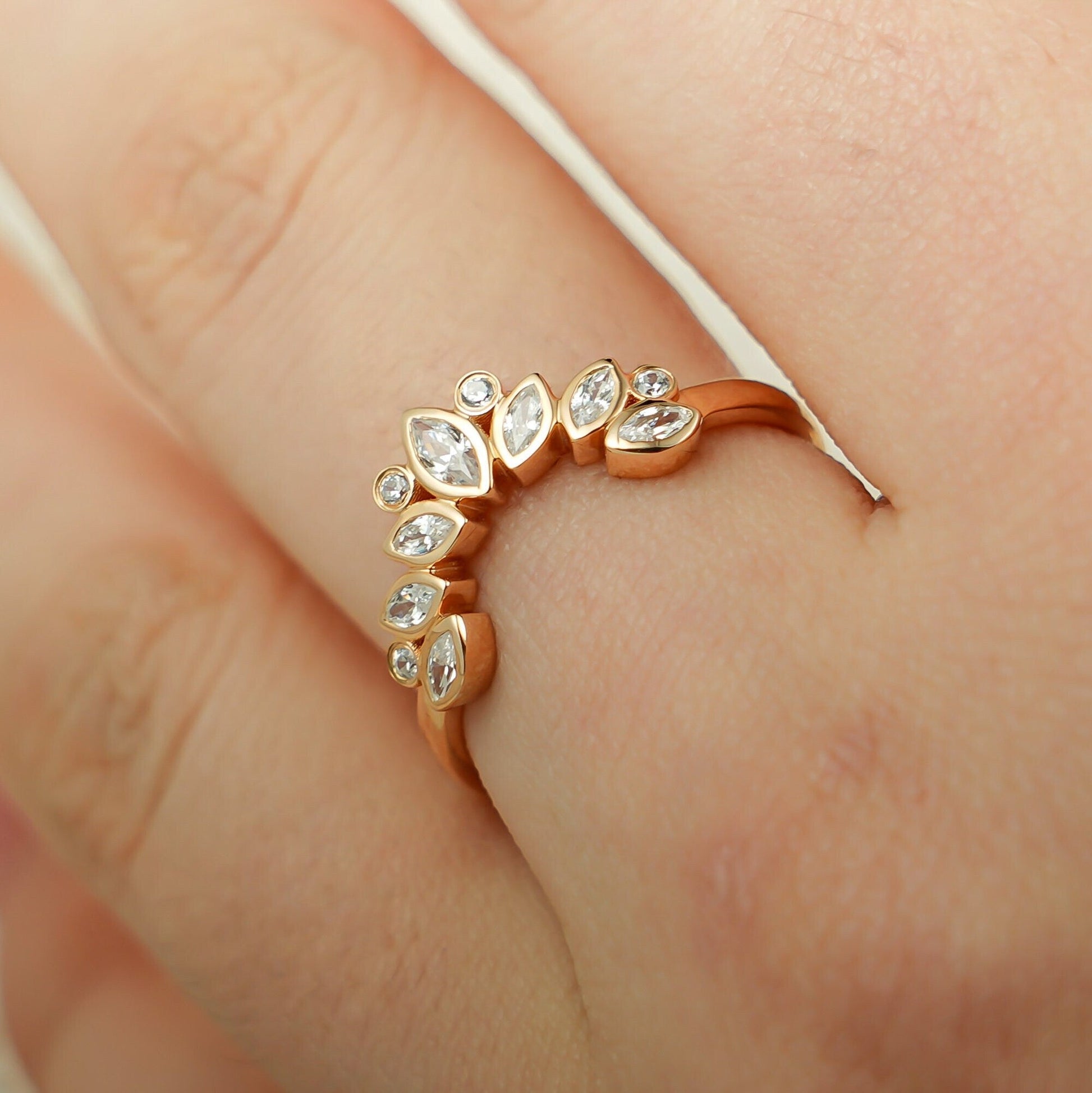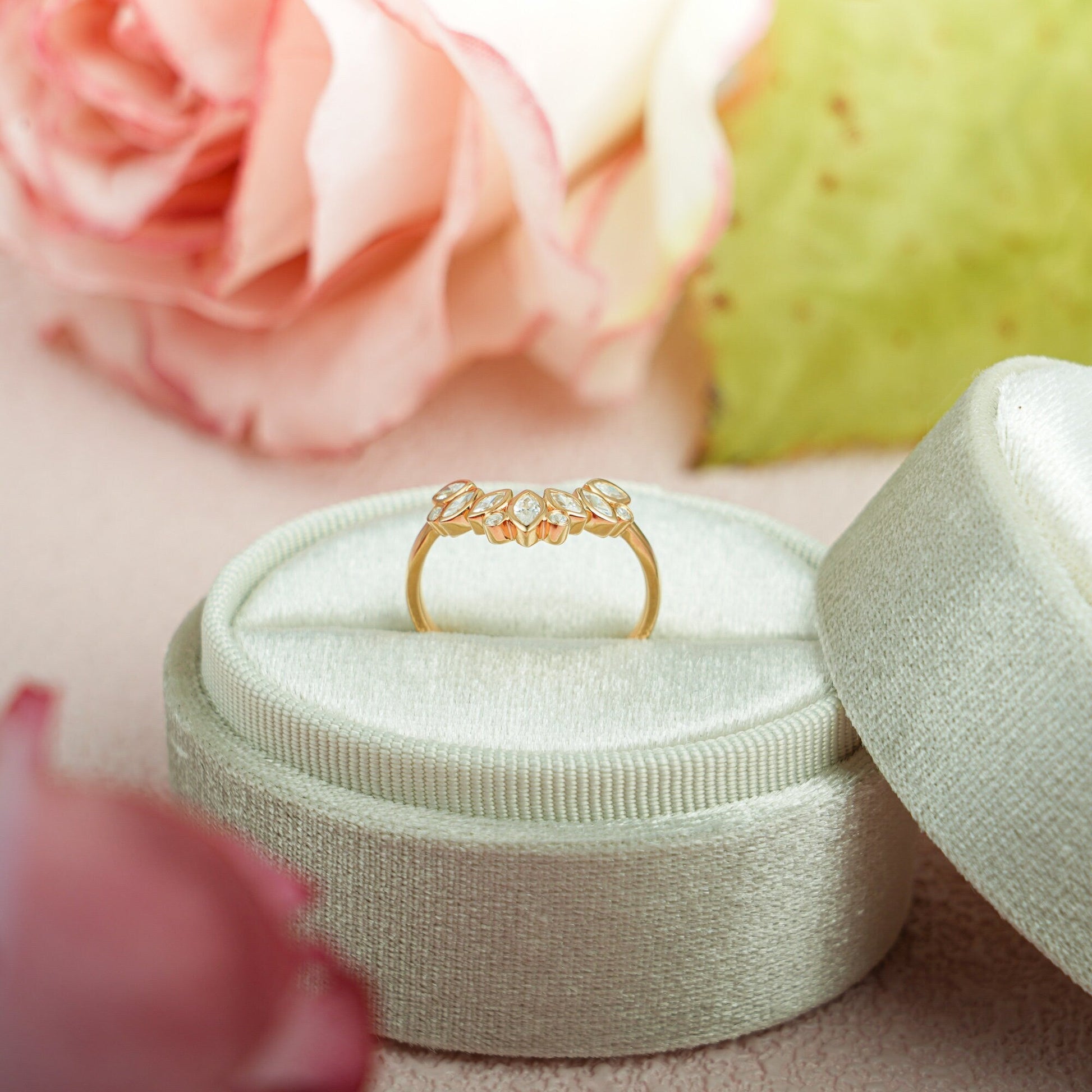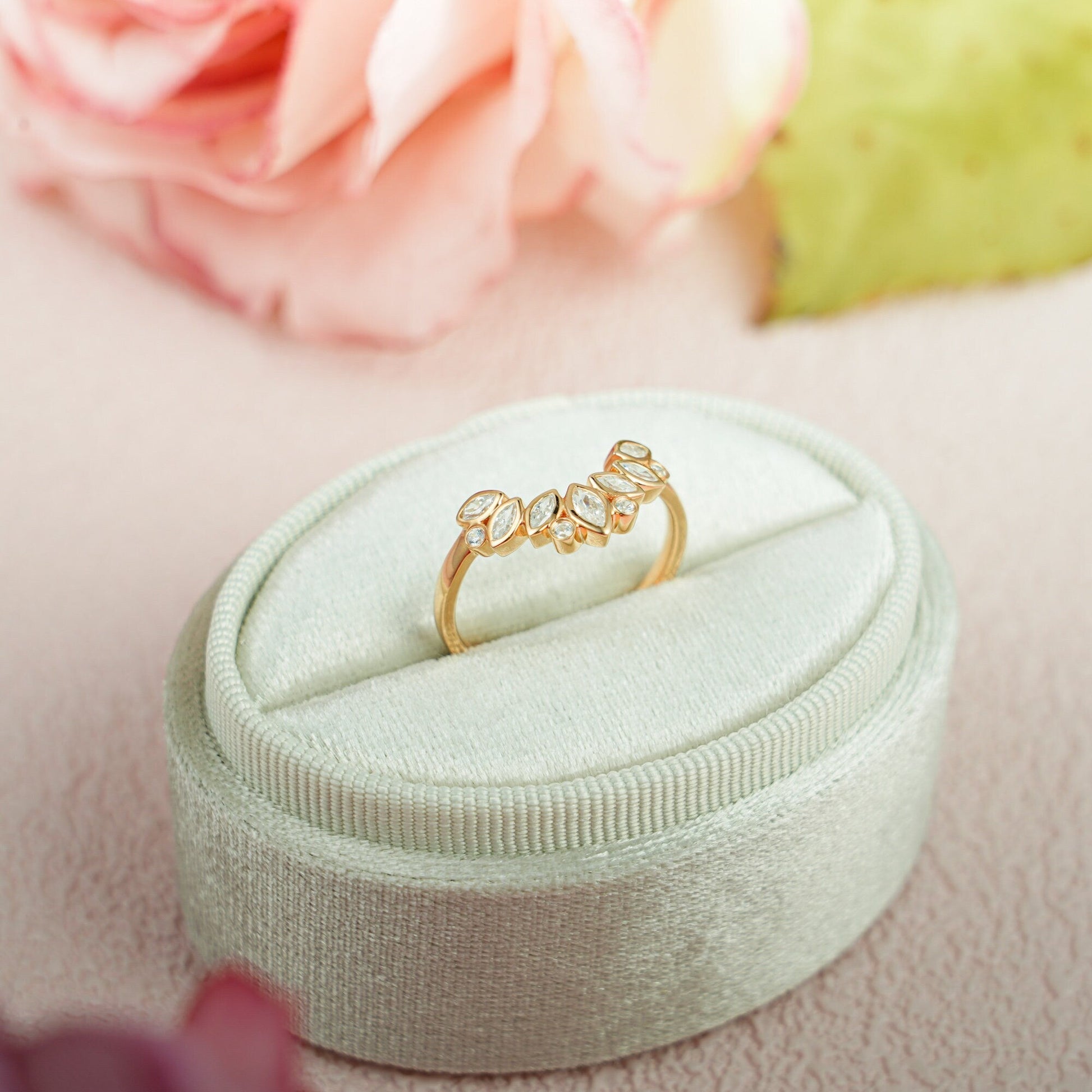 9K/14K/18K Solid Gold Marquise Round Cut Moissanite Curved Wedding Band/Vintage Marquise cut Wedding Ring/Unique Anniversary Gift for Woman