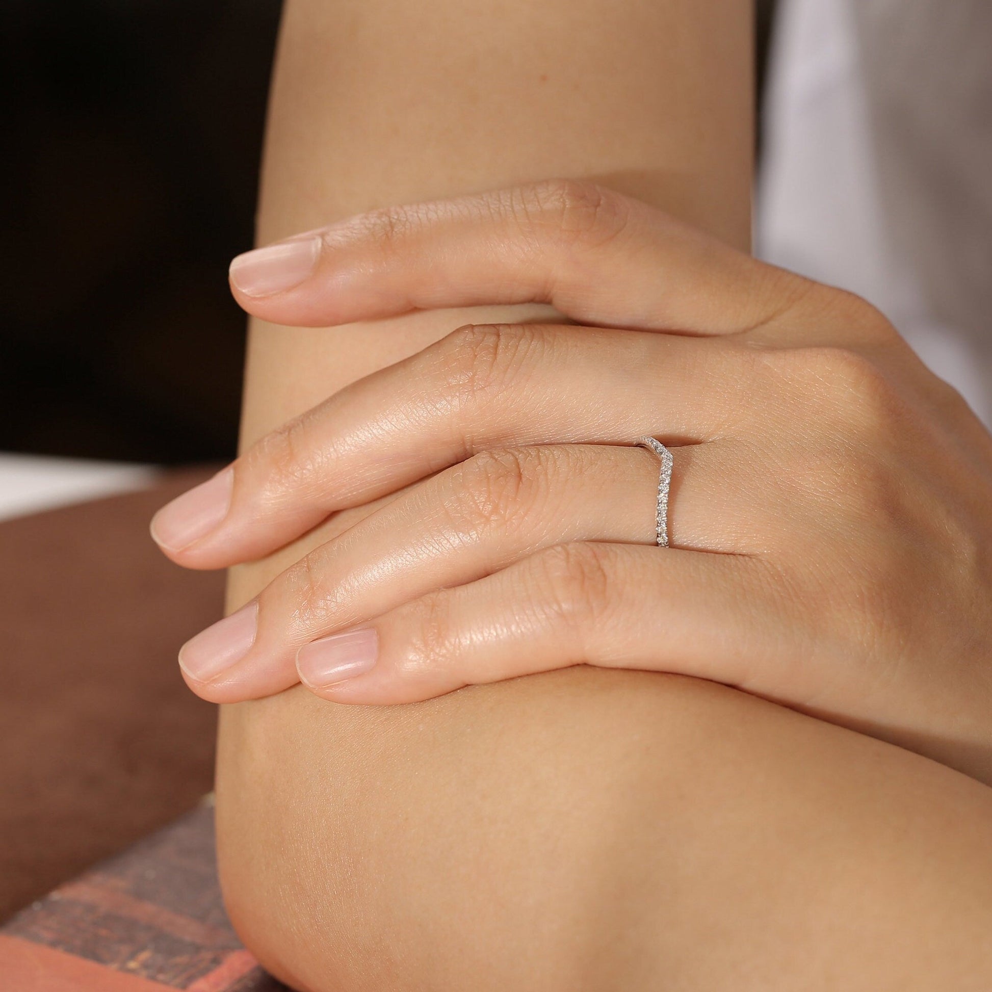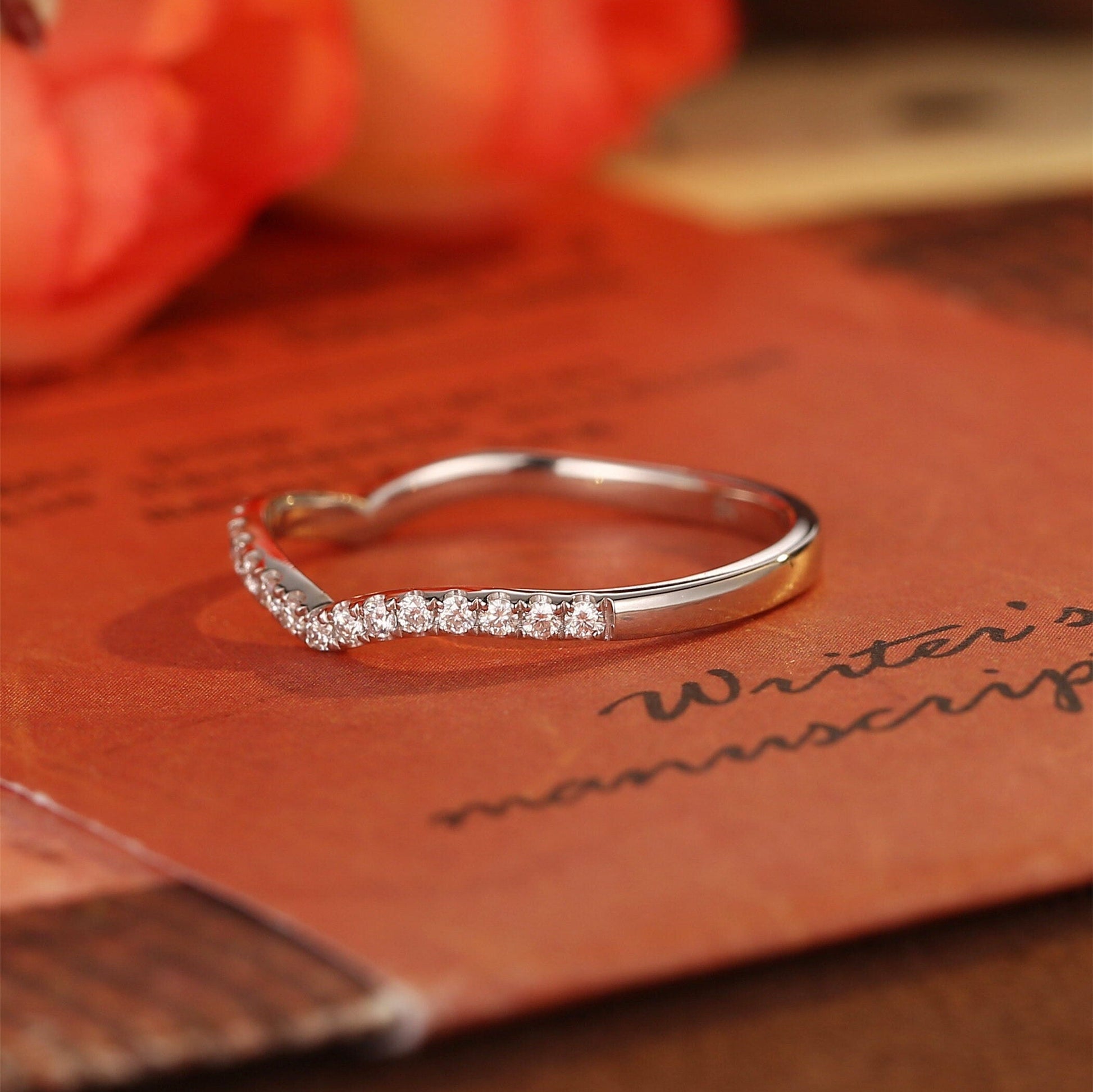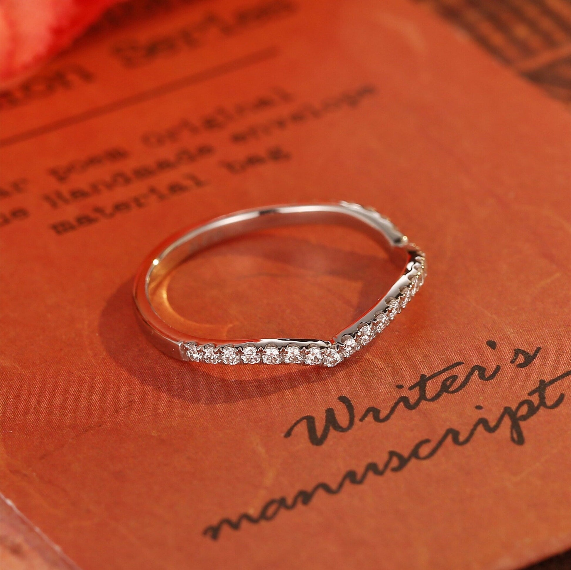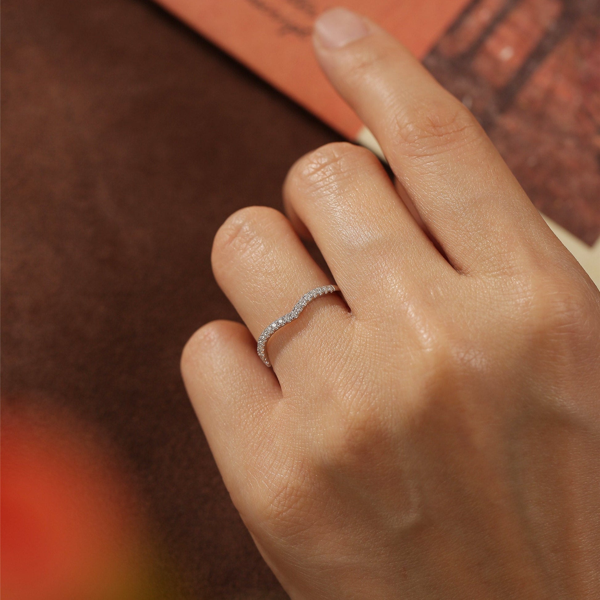 9K/14K/18K Solid Gold Matching Band, Bridal Ring Band, Minimalist Style Wedding Band, Curved Moissanite Wedding Band for Her