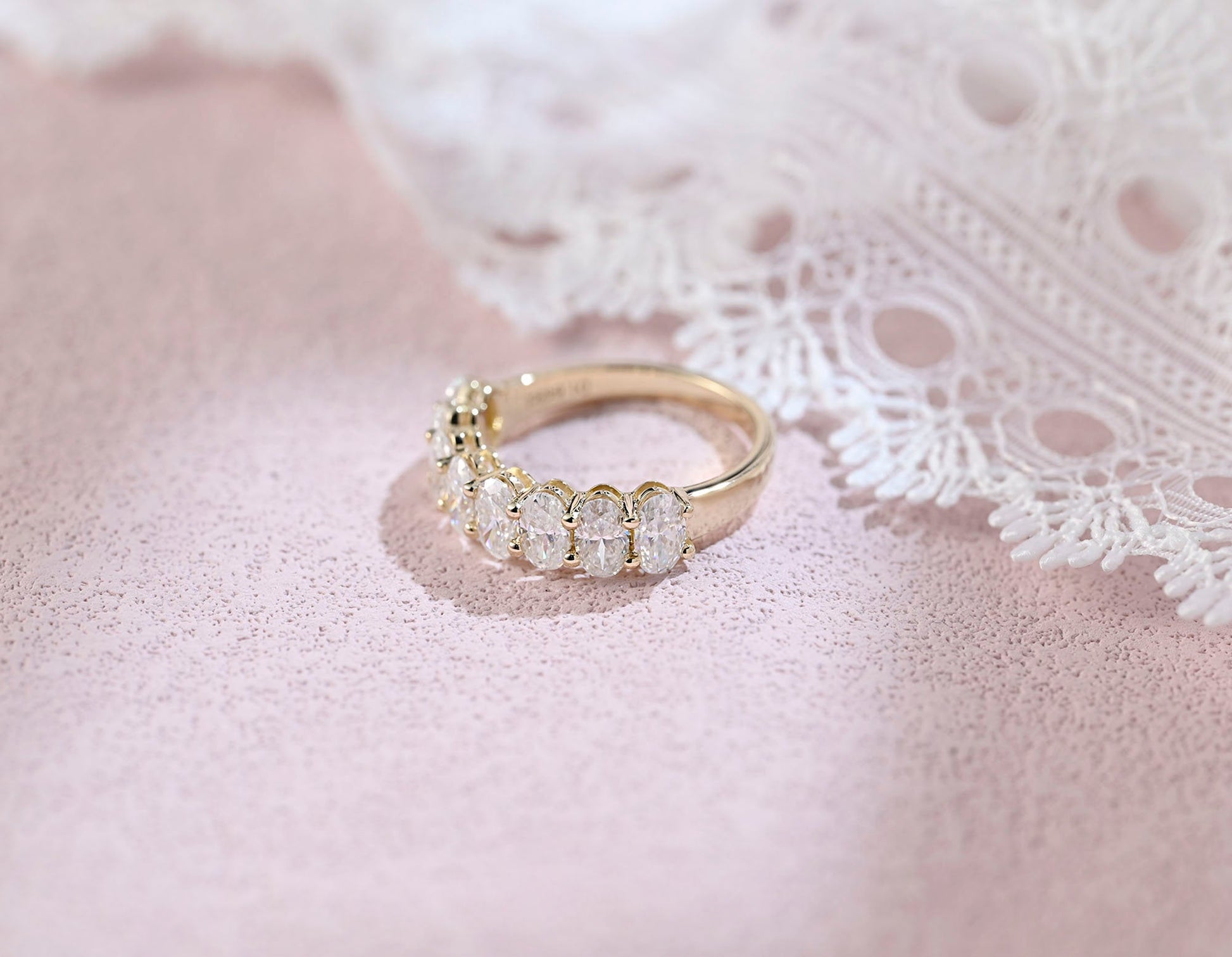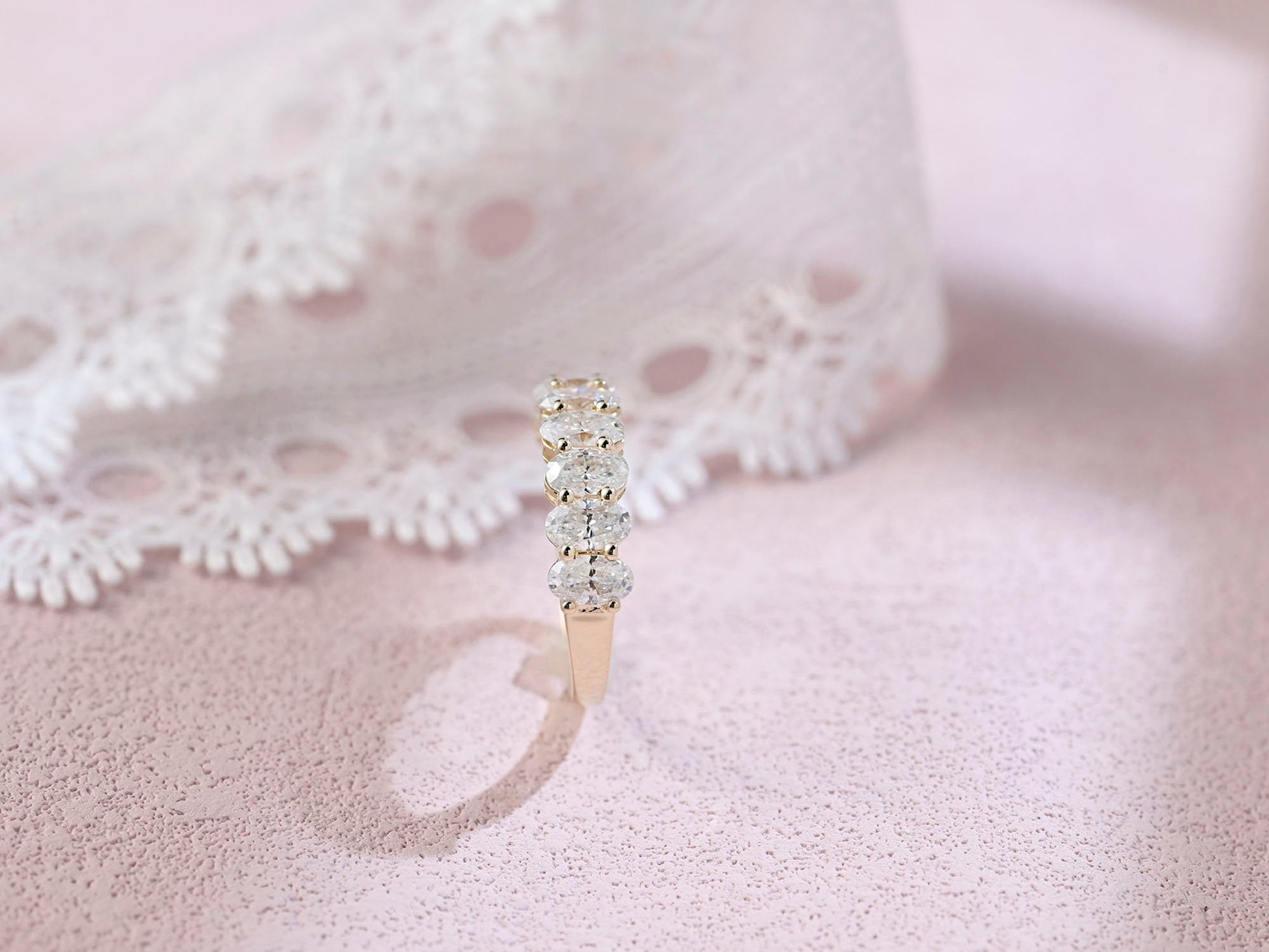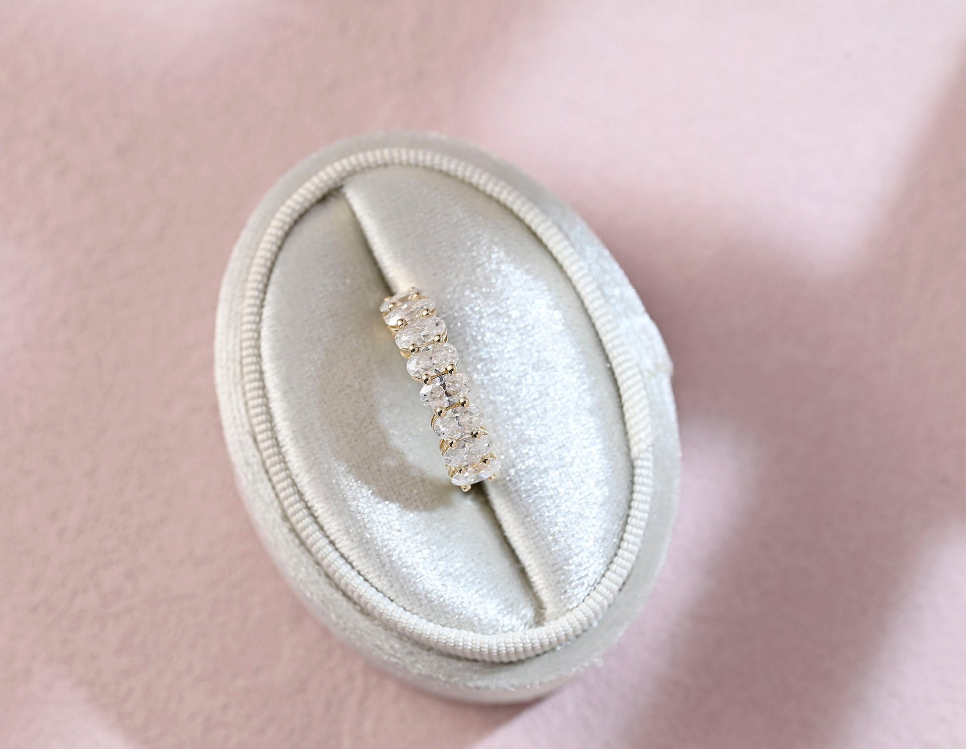 Solid Gold Oval Cut Moissanite Half-Eternity Wedding Ring