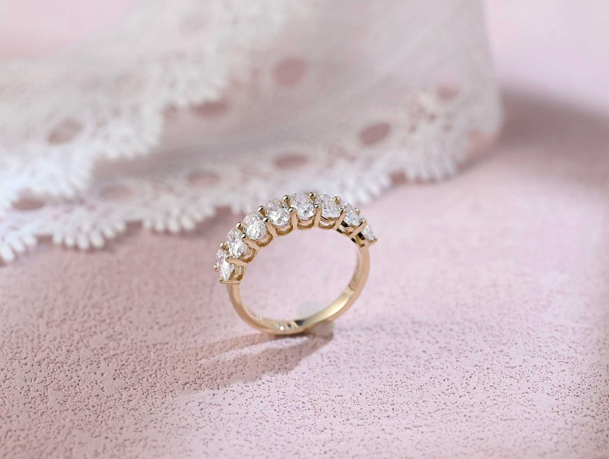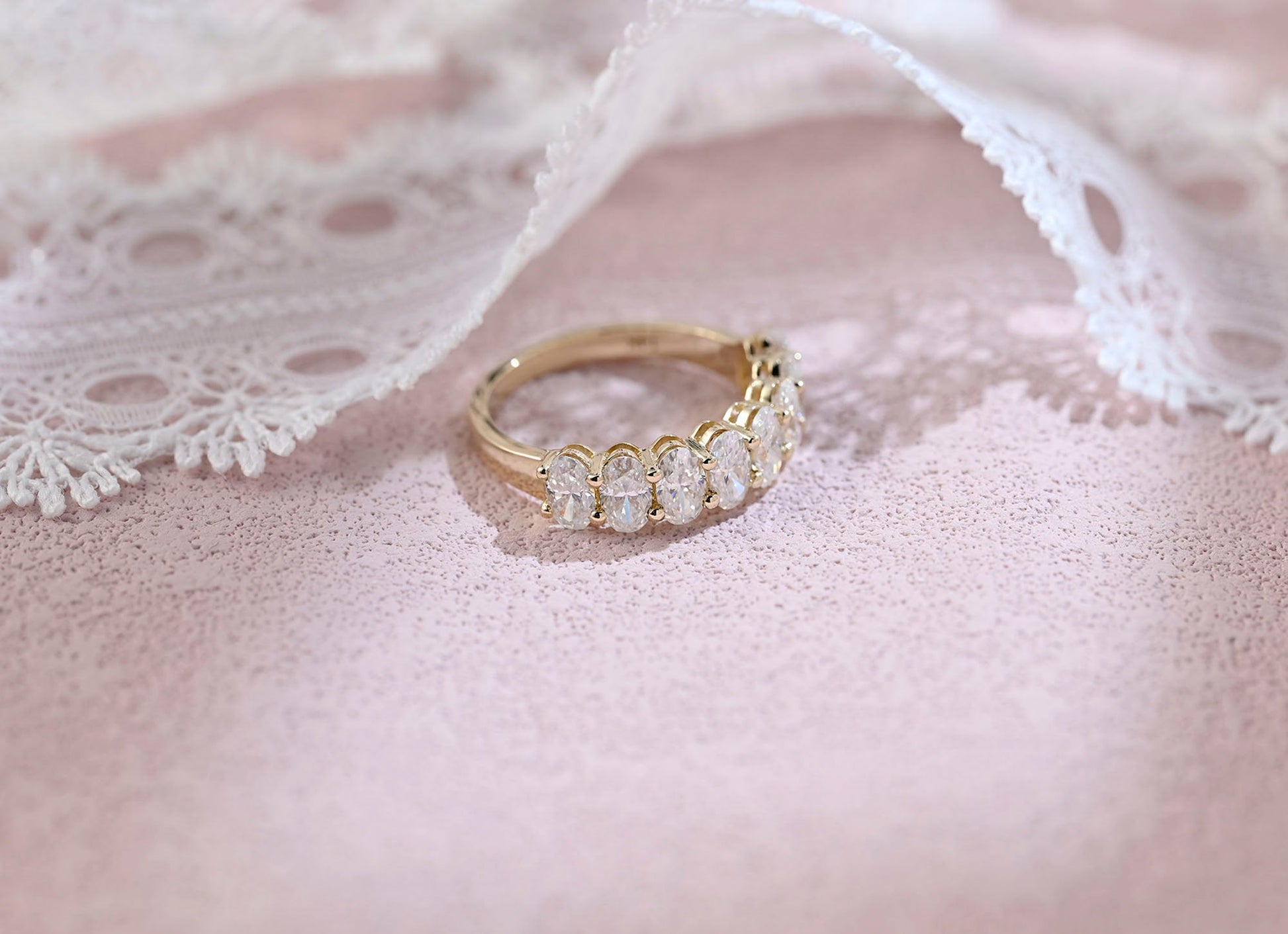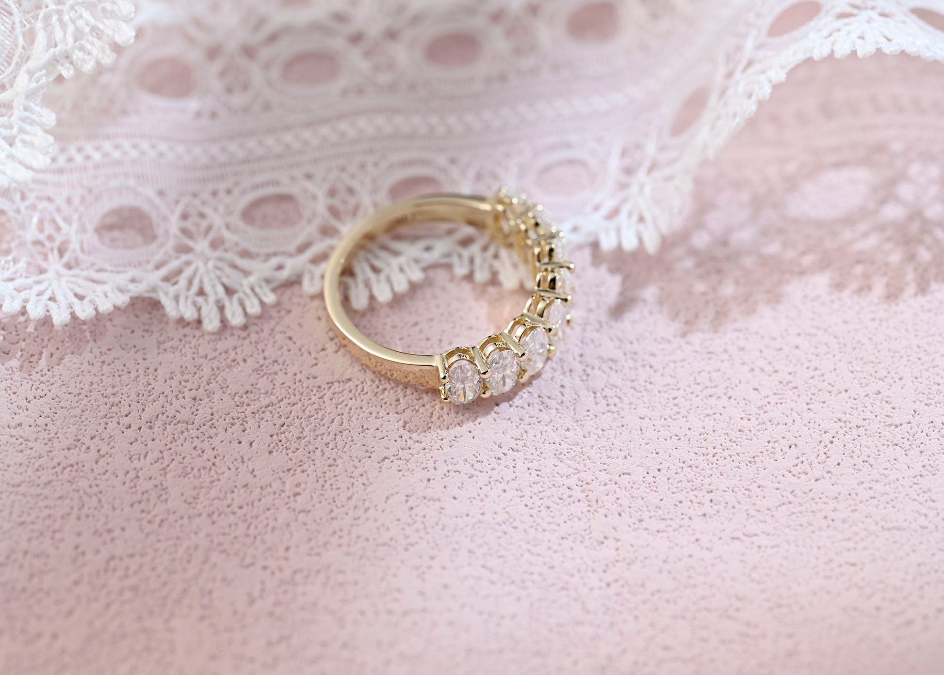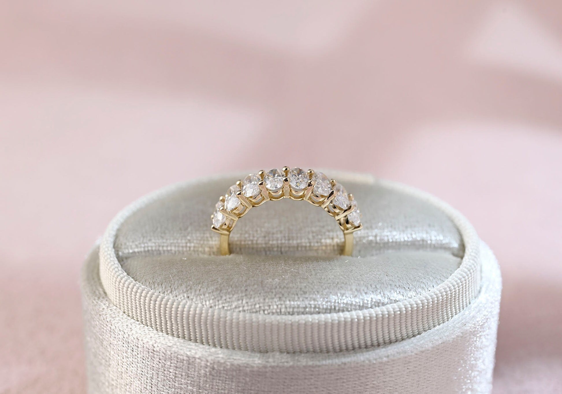 Solid Gold Oval Cut Moissanite Half-Eternity Wedding Ring