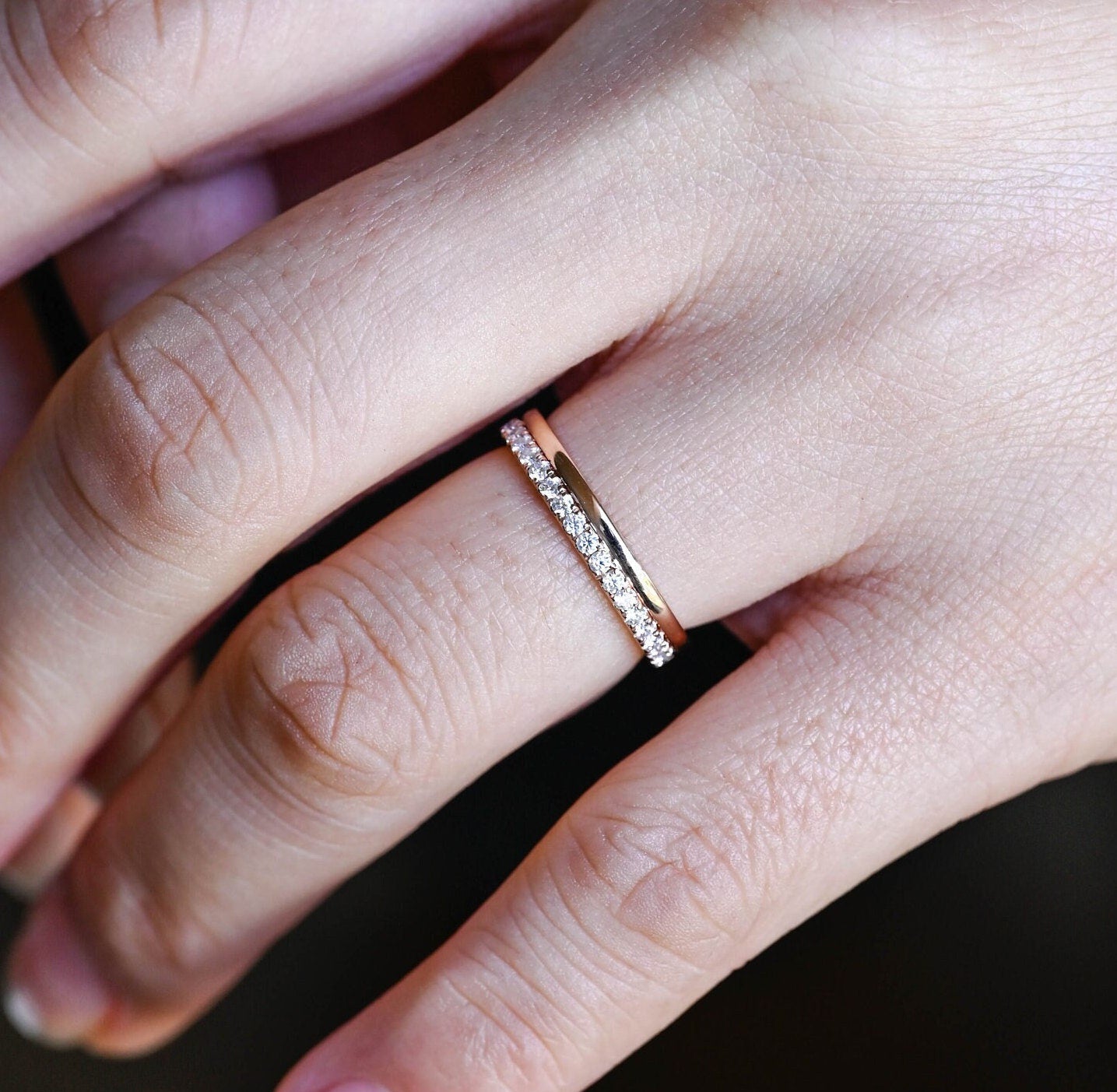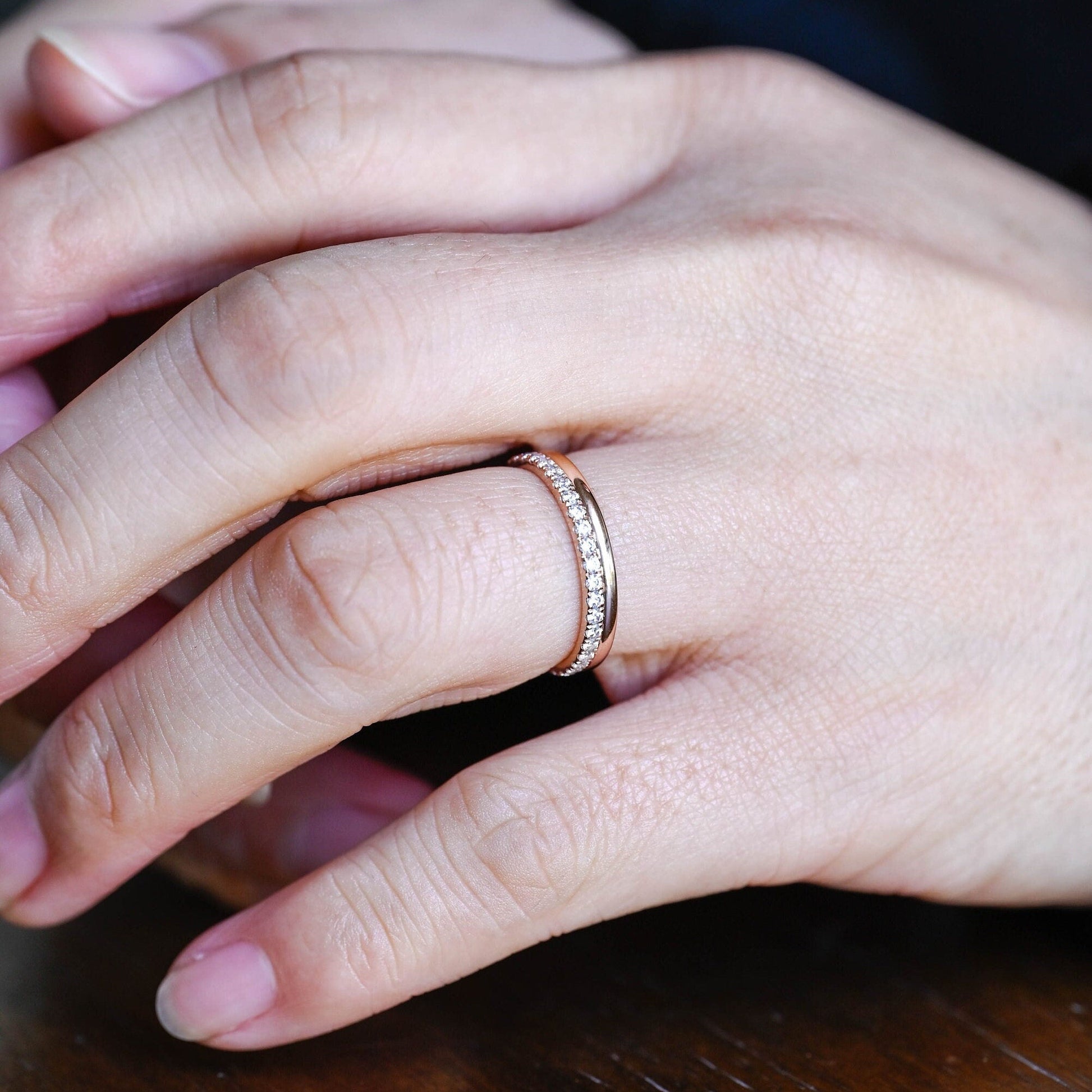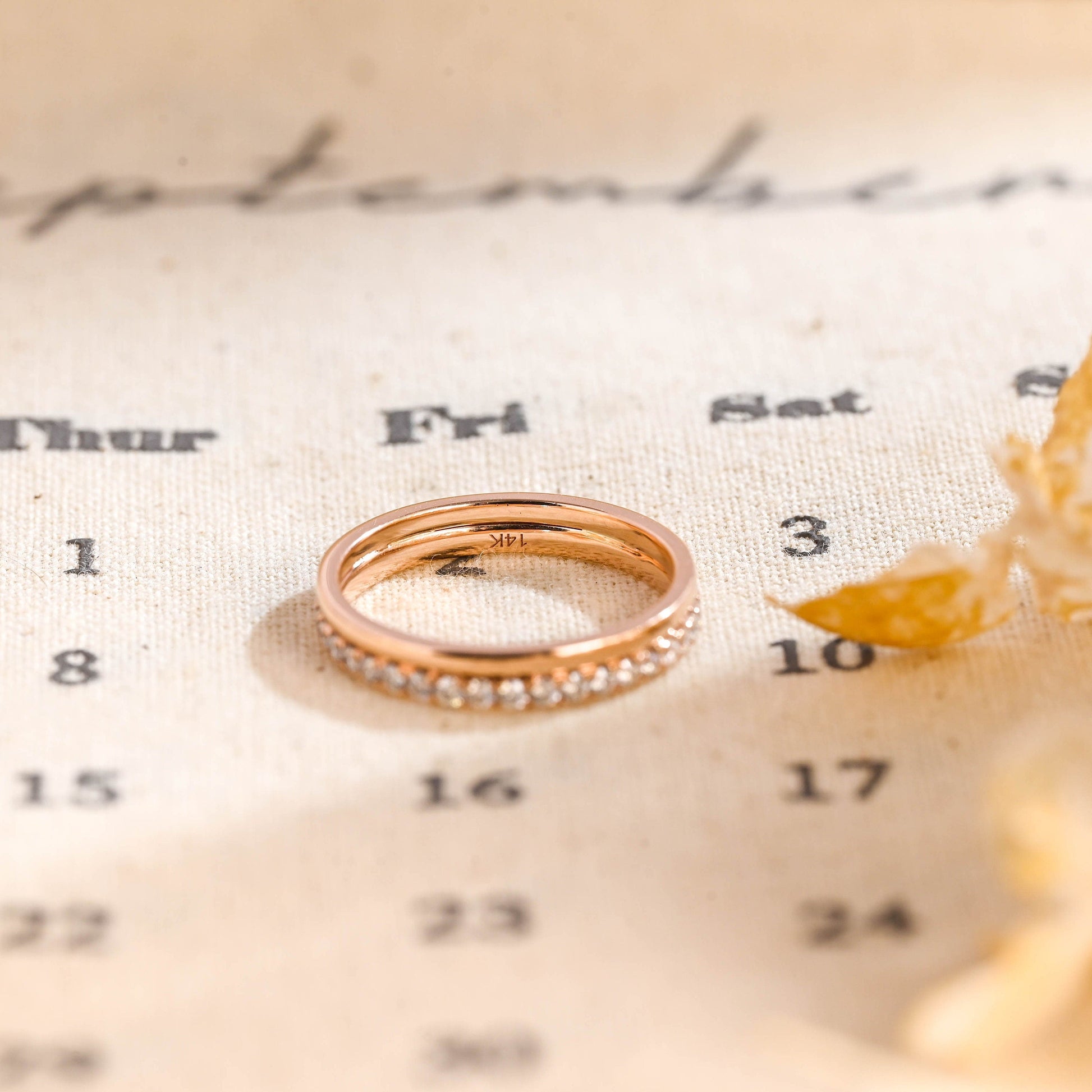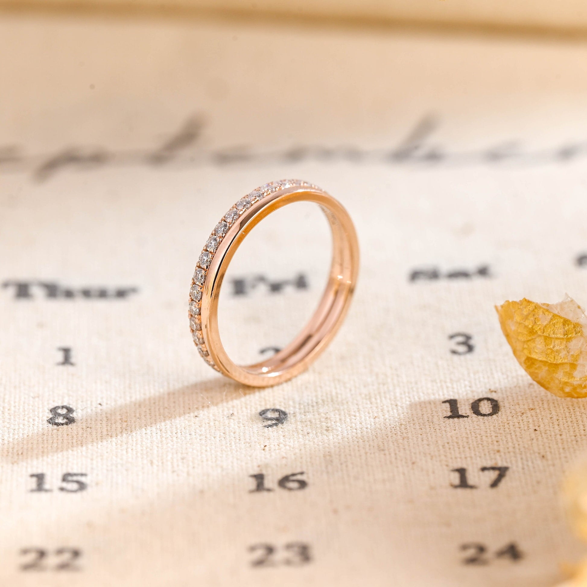9K/14K/18K Solid Gold Round Cut Moissanite Wedding Band, Full-Eternity Channel Setting Moissanite Matching Band Moissanite Engagement Ring